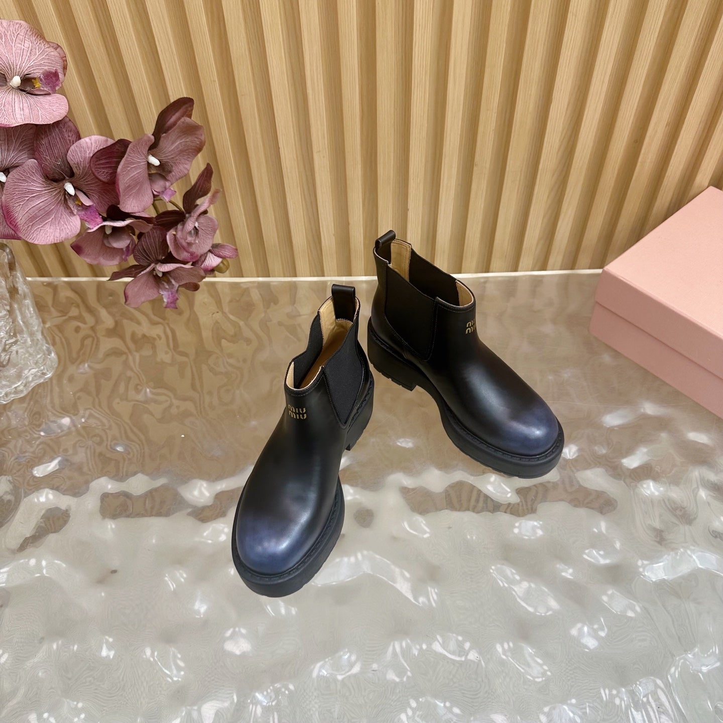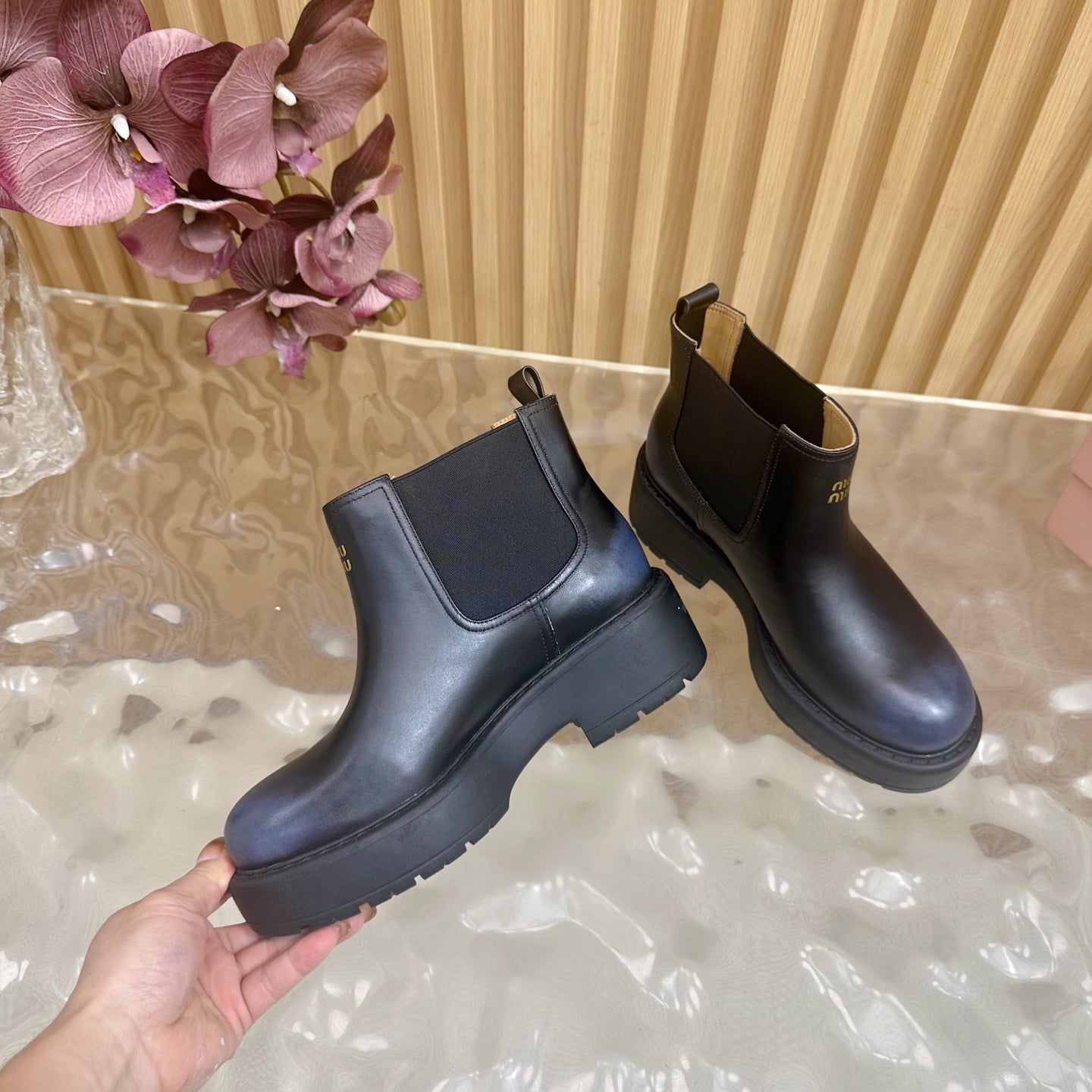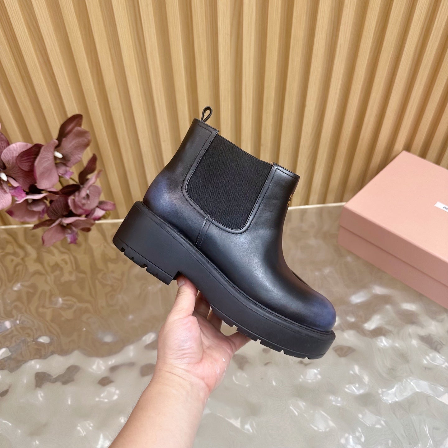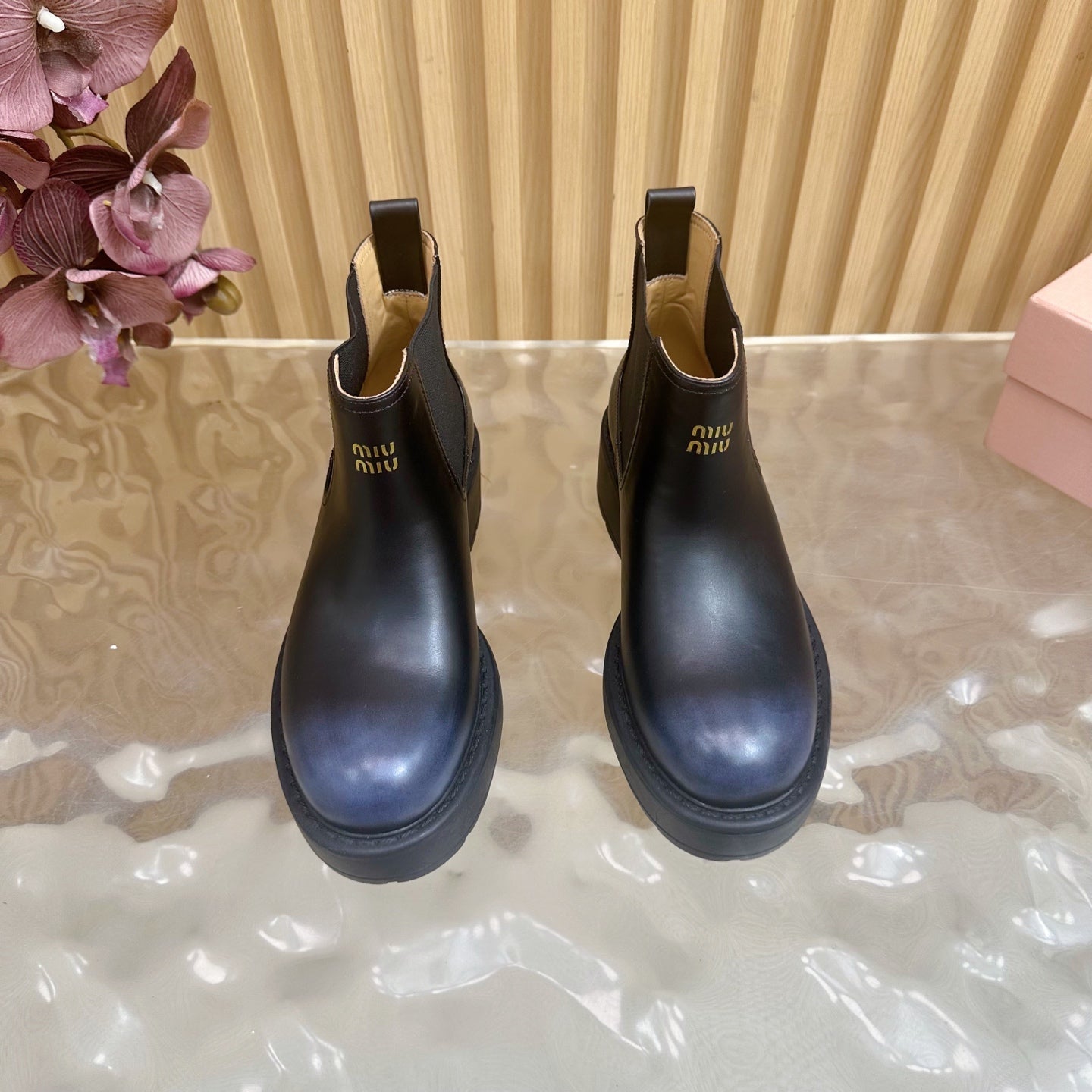 Miu Platform Chelsea Boots Deep Reddish Brown Leather 498176