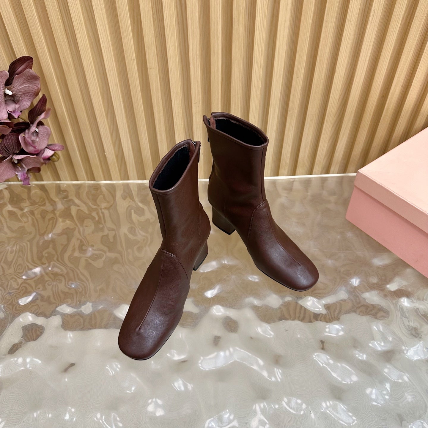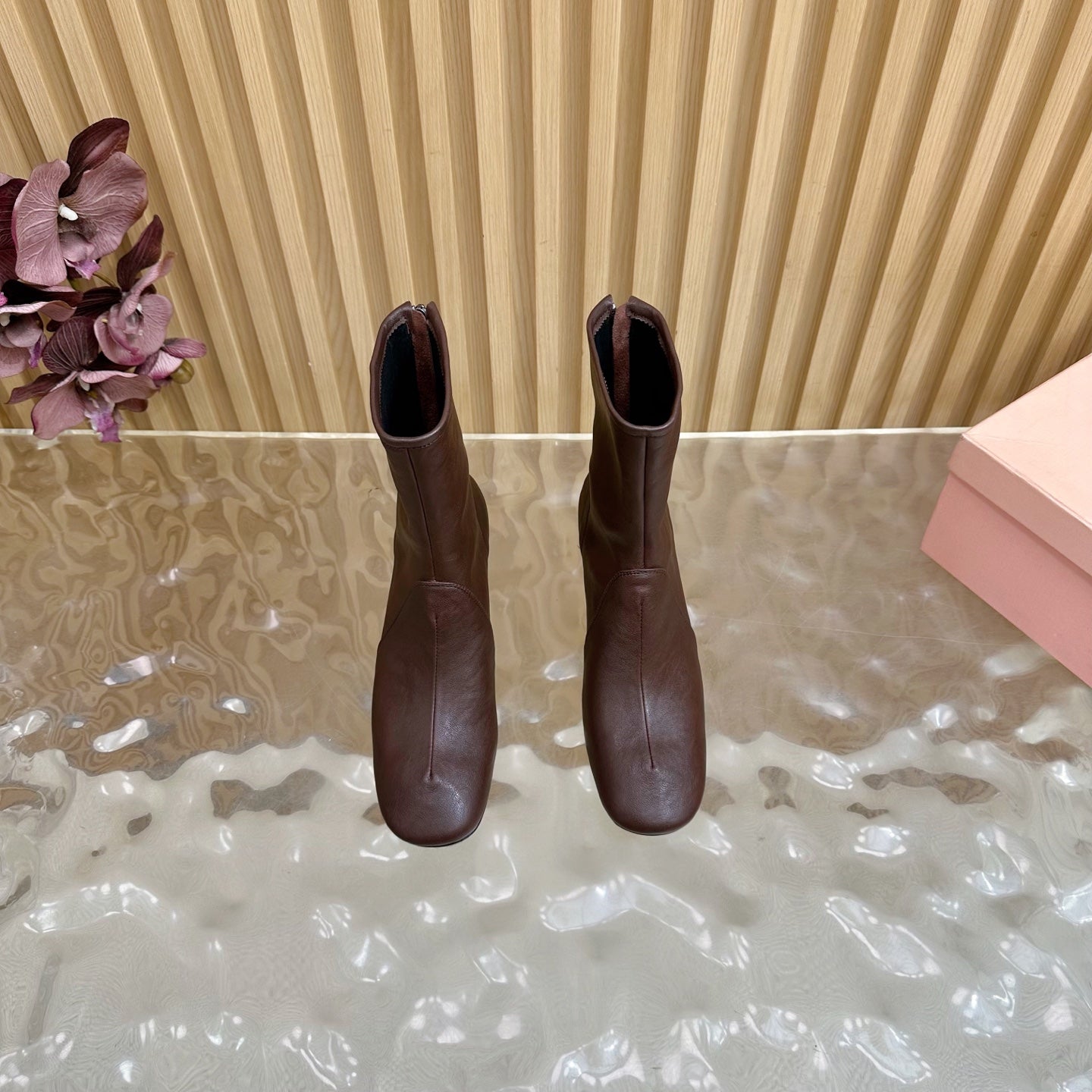 Miu Bootie Deep Reddish Brown Nappa Leather 498178