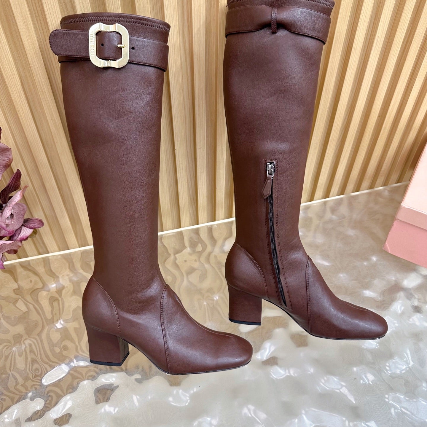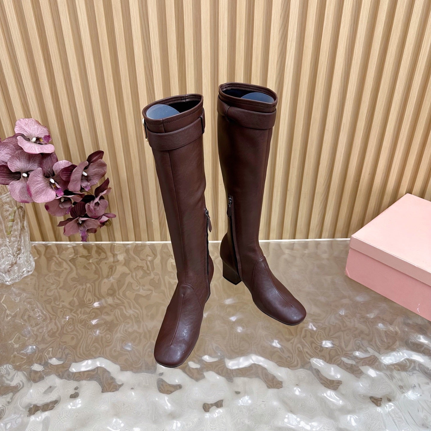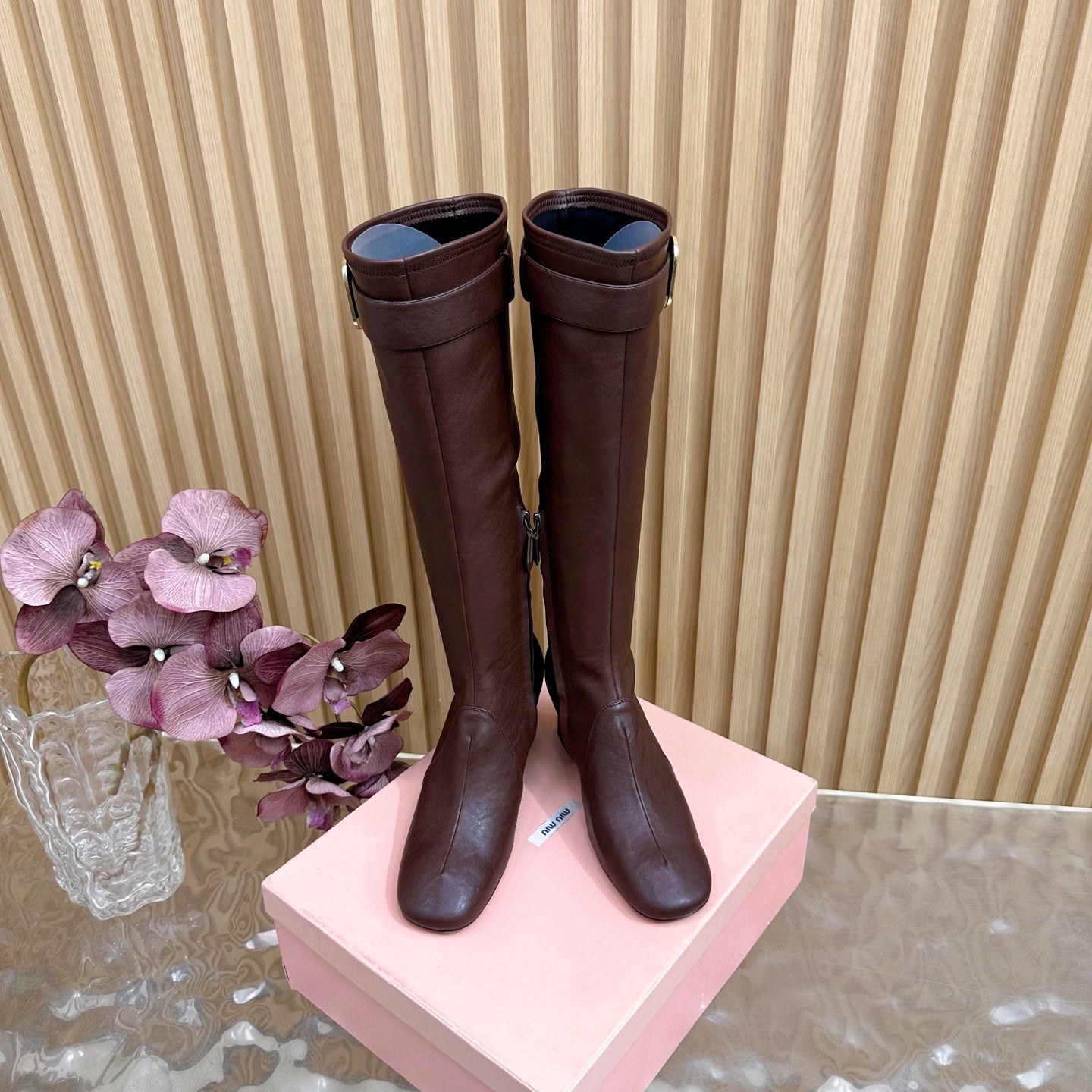 Miu Boots With Buckle Deep Reddish Brown Nappa Leather 498181