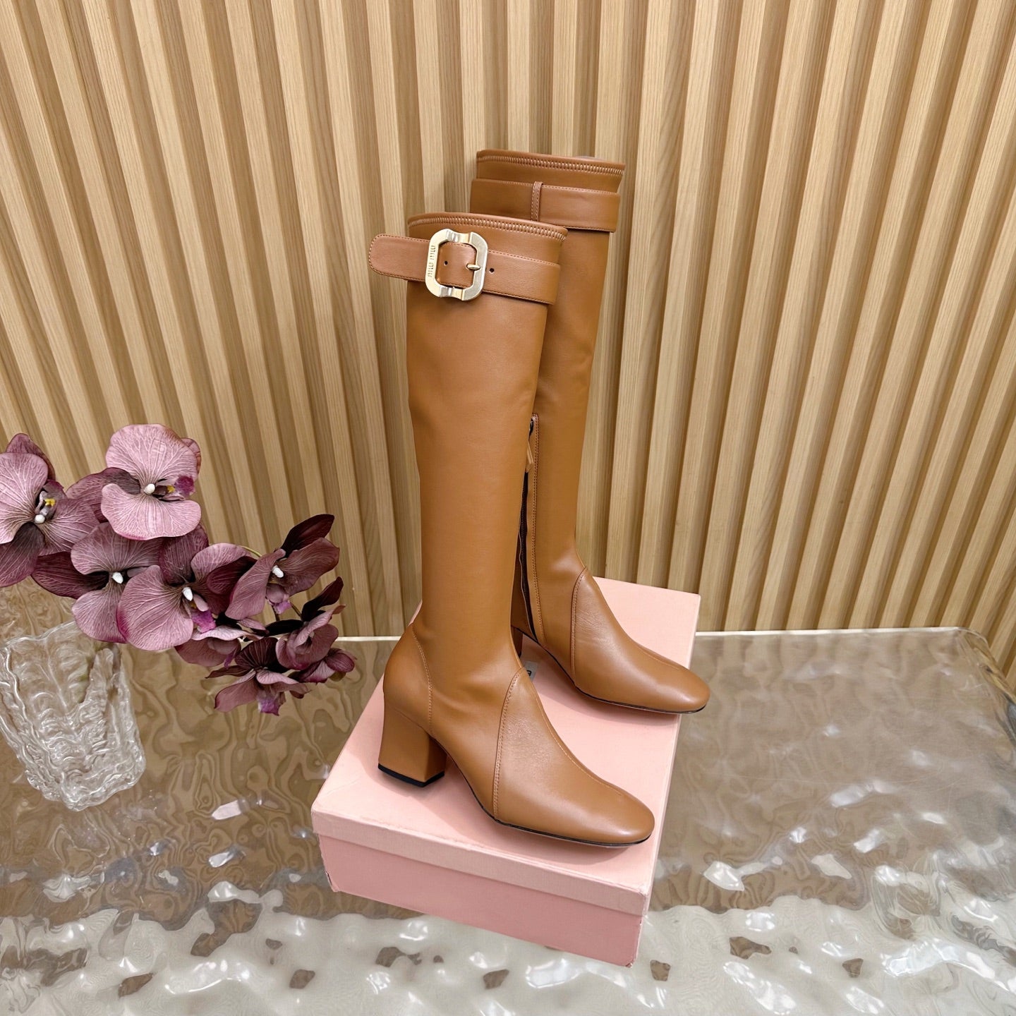 Miu Boots With Buckle Camel Nappa Leather 498182