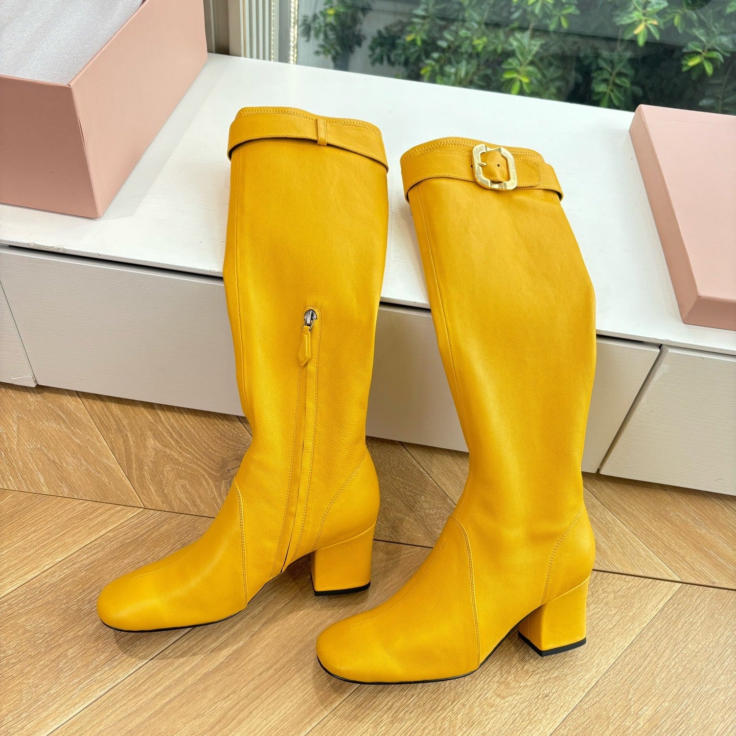 Miu Boots With Buckle Yellow Nappa Leather 506634