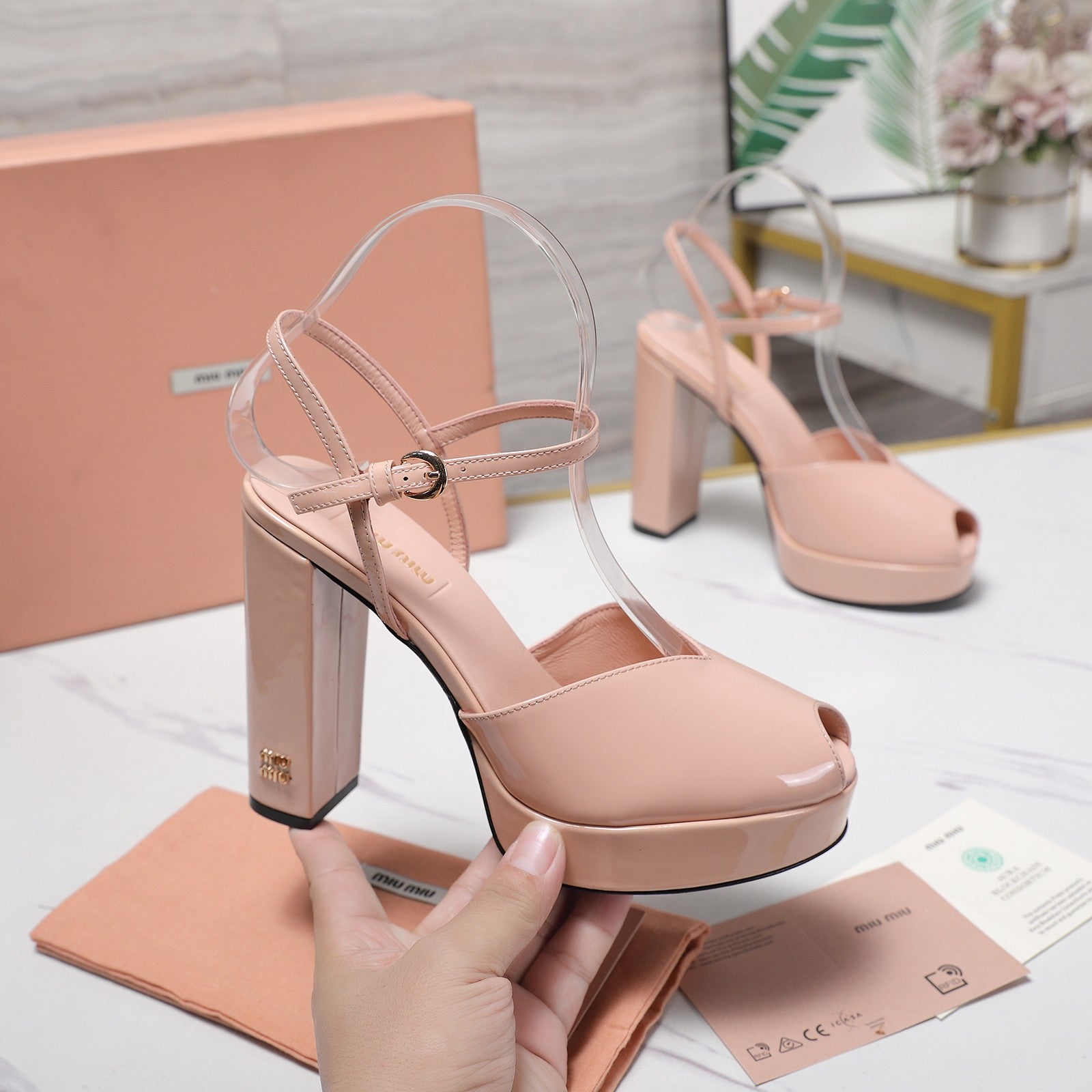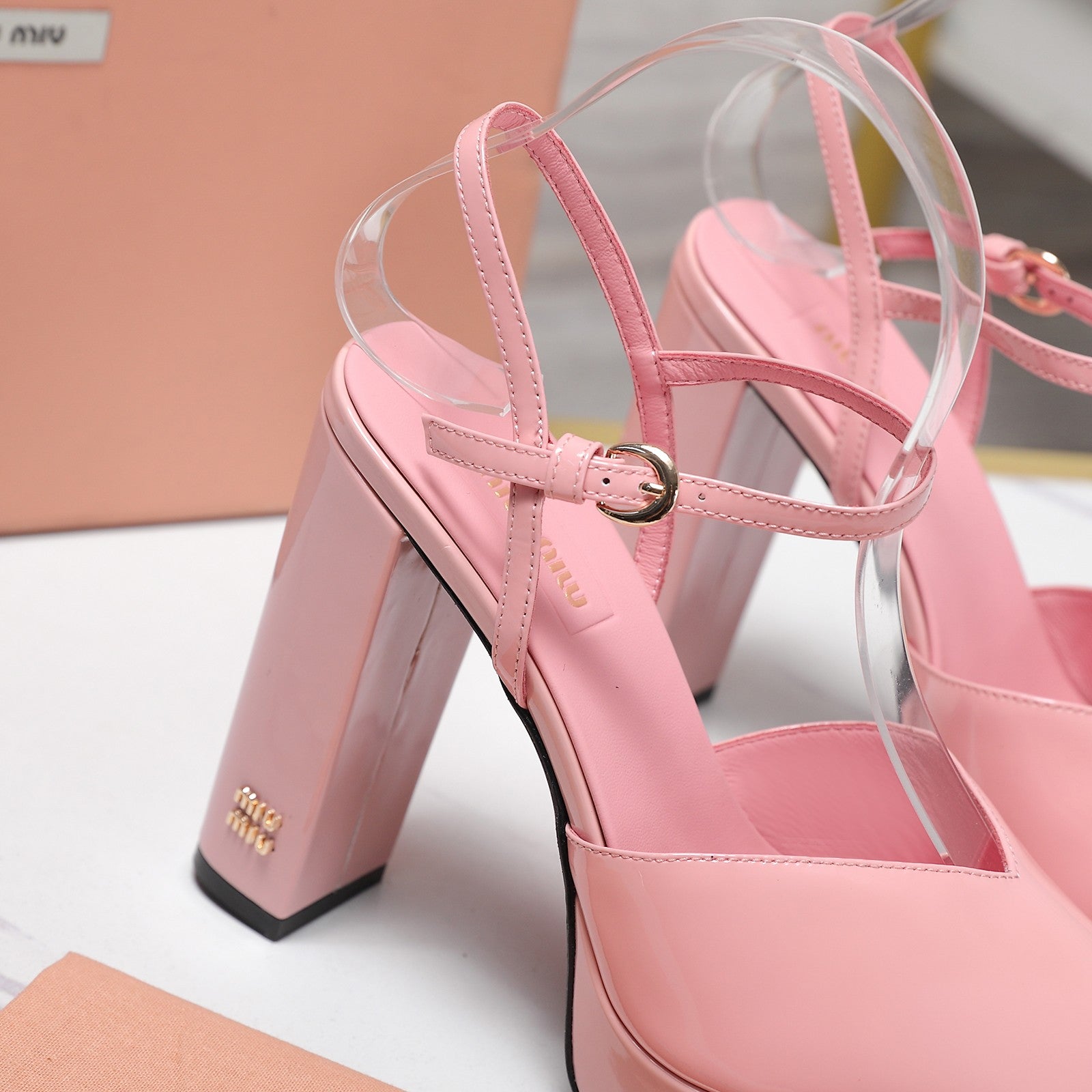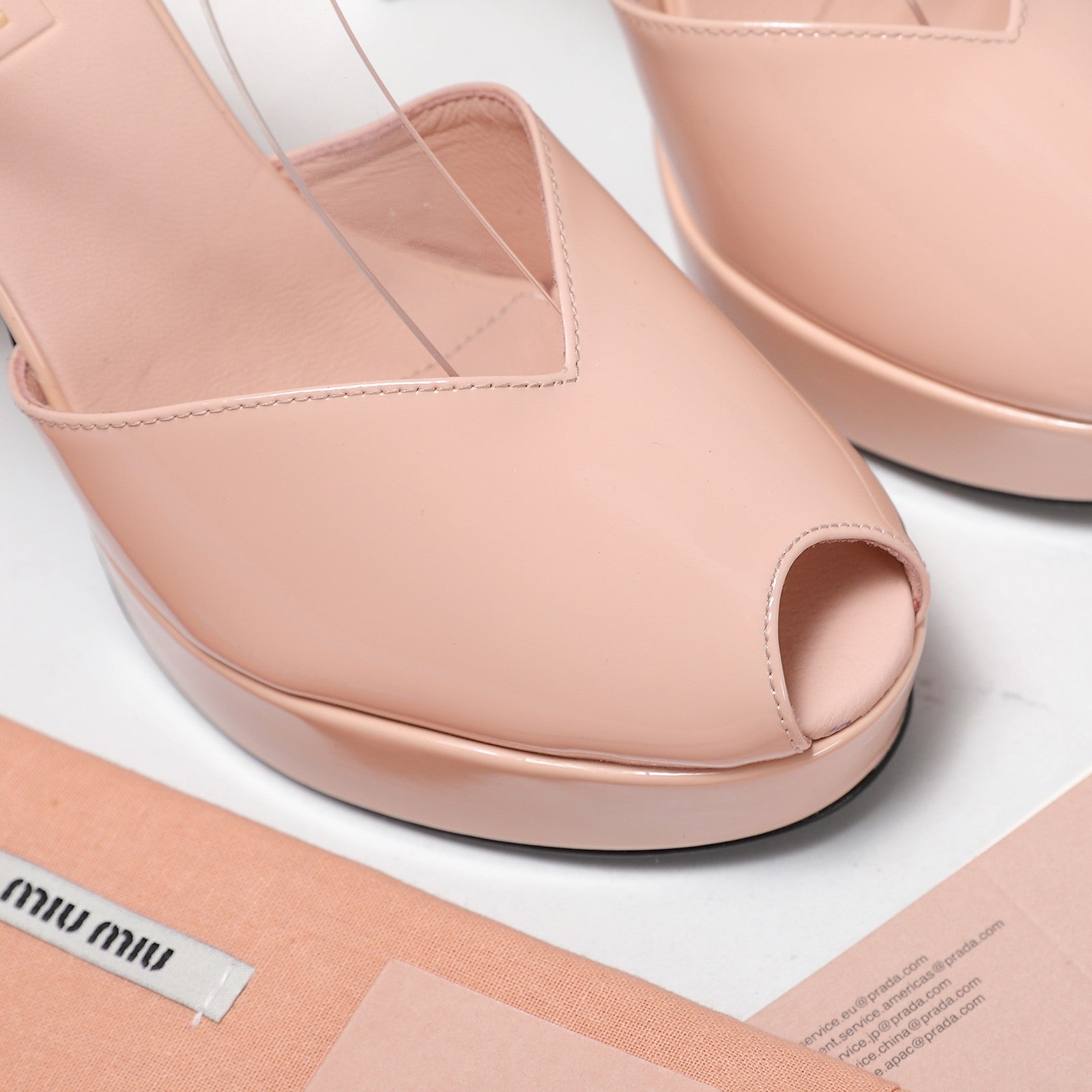 Miu Block-Heel Platform Sandals 125mm Pink Patent Leather 504175
