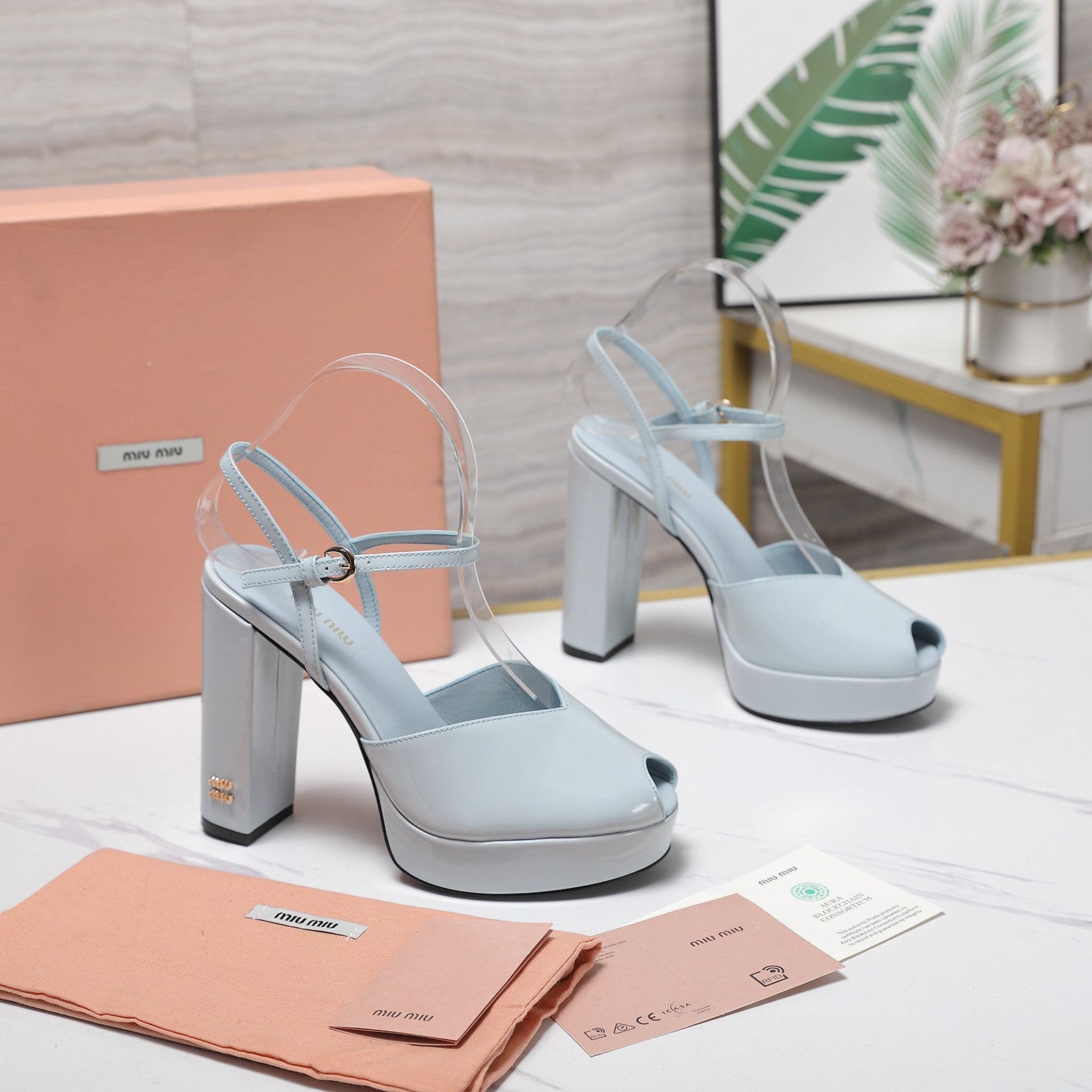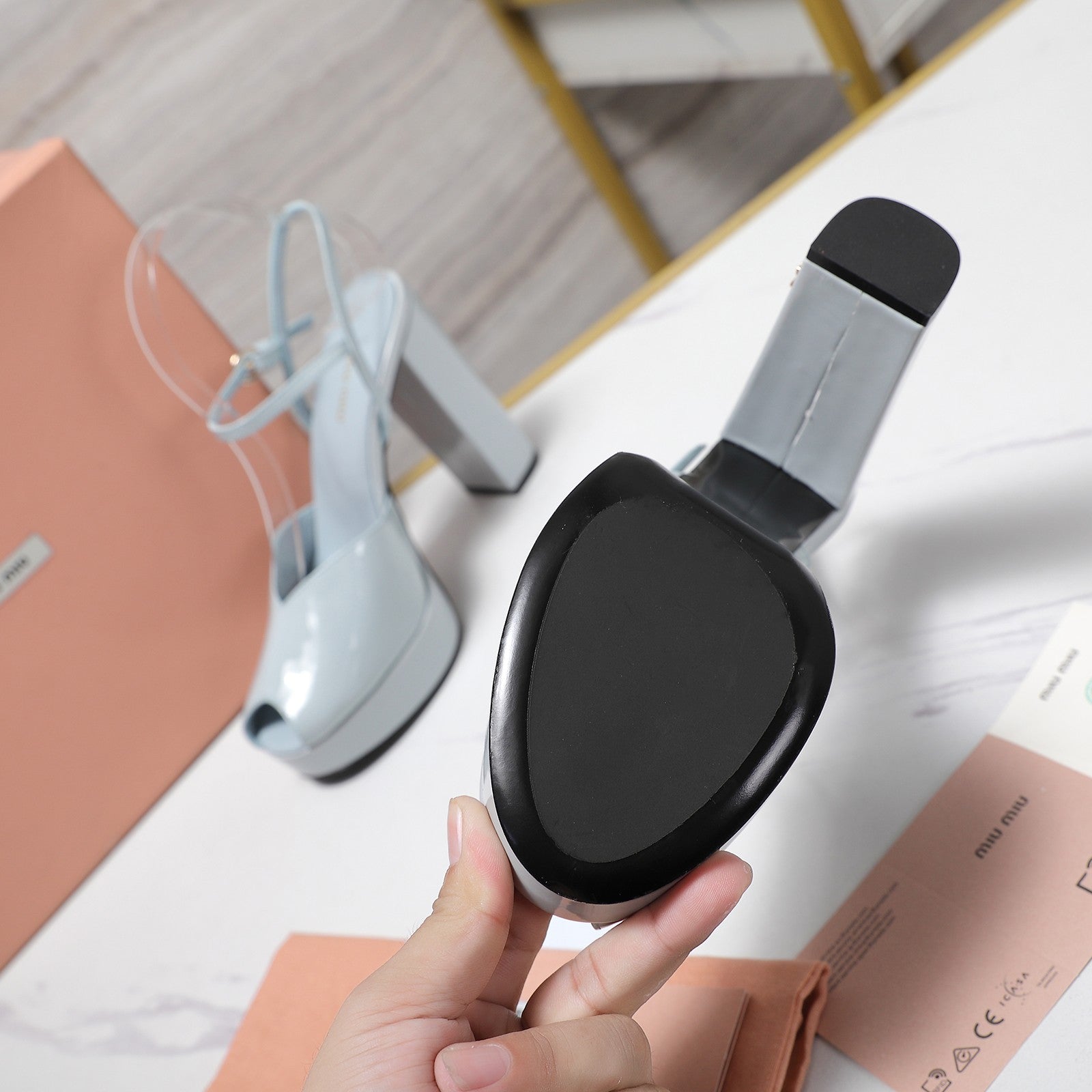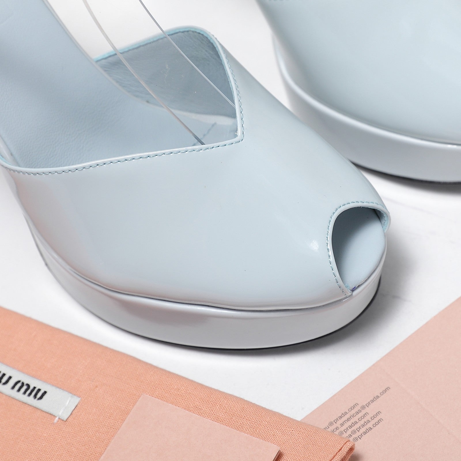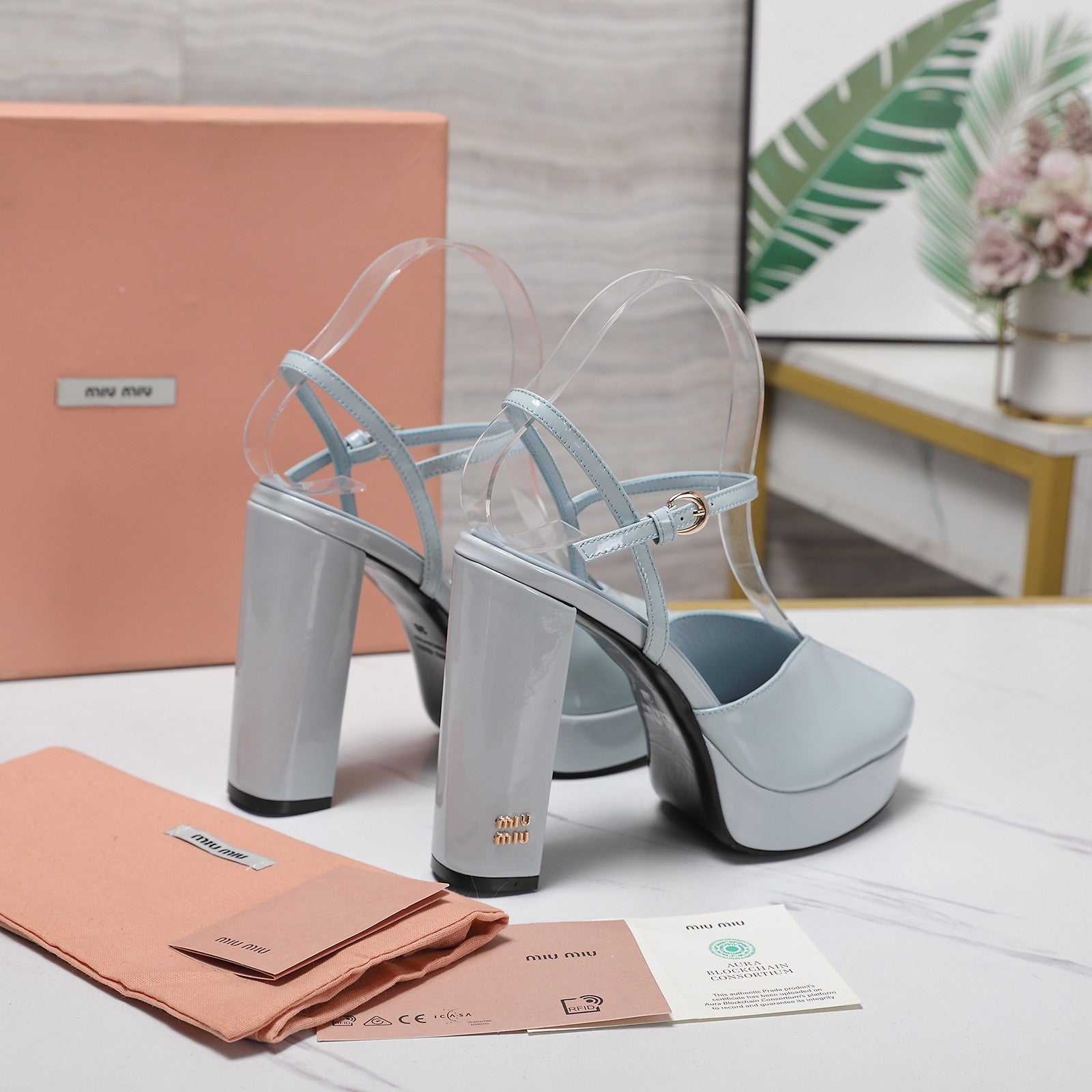 Miu Block-Heel Platform Sandals 125mm Light Steel Blue Patent Leather 504176