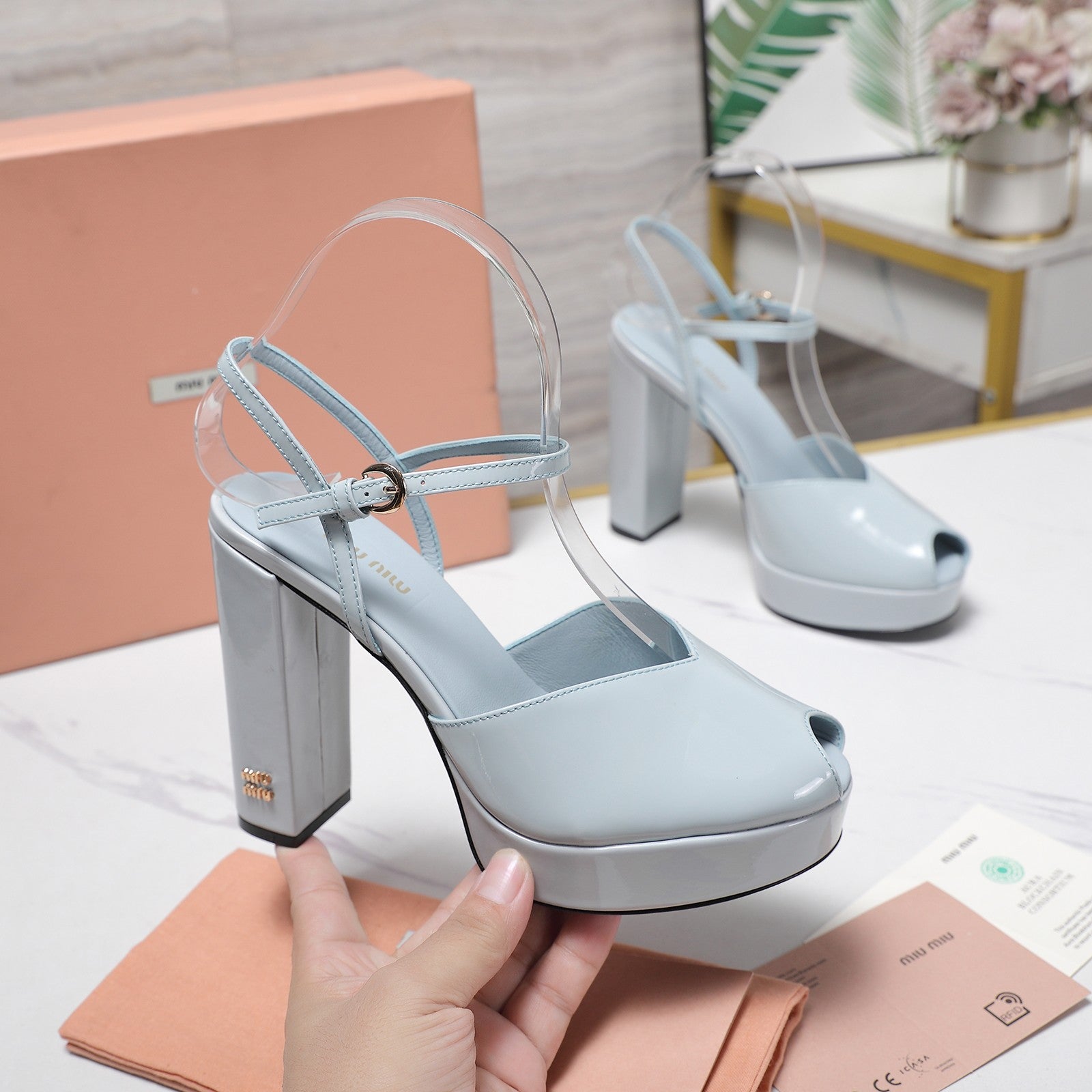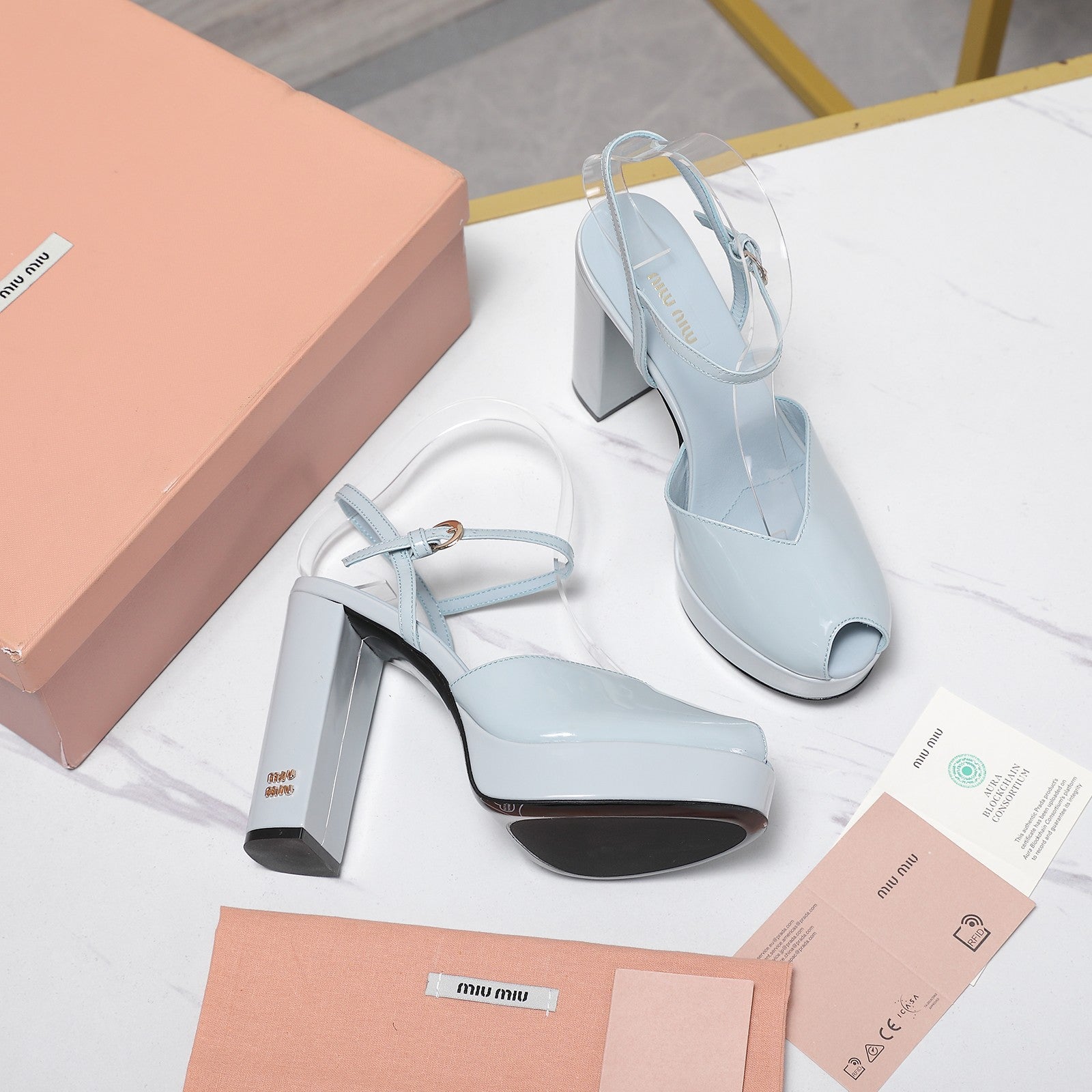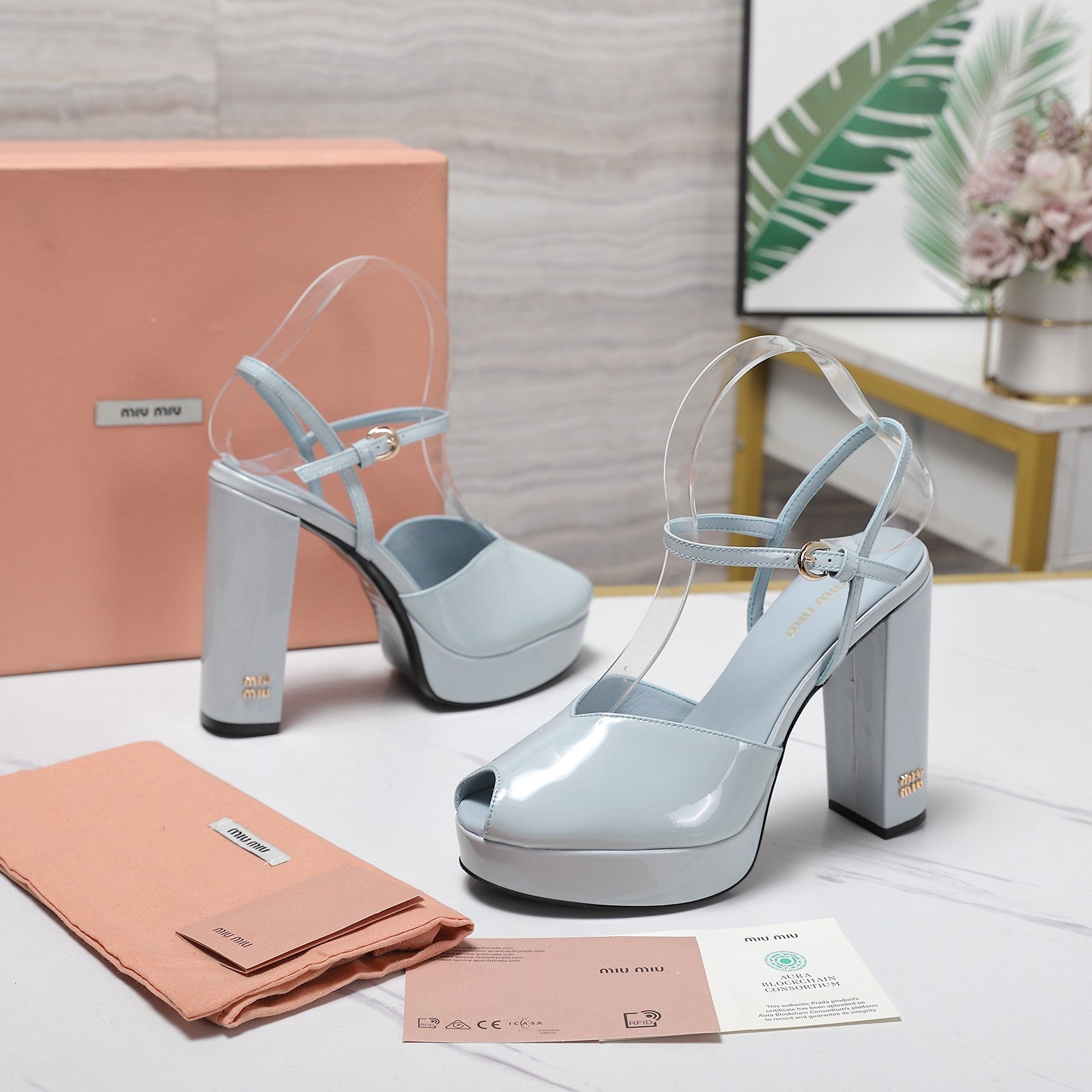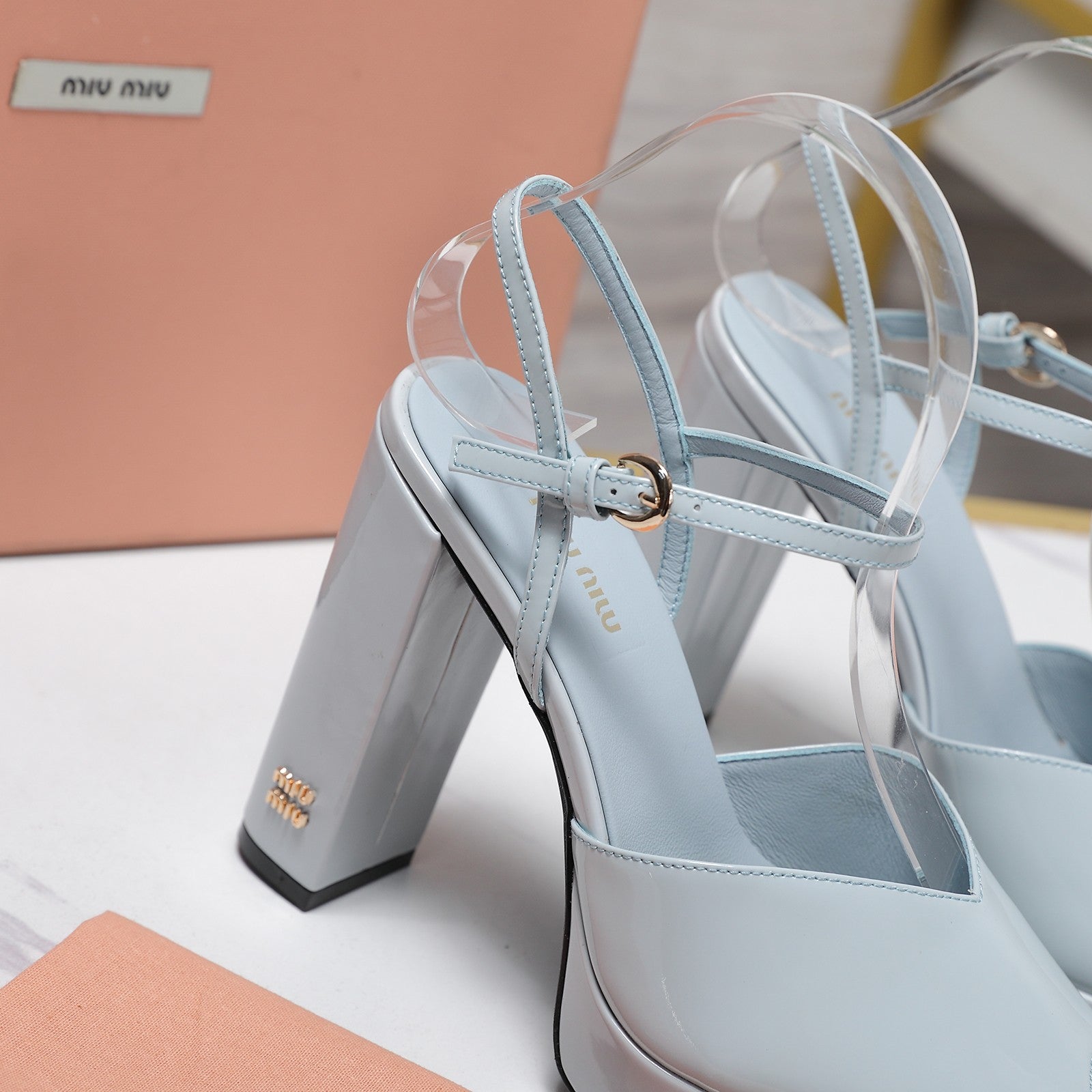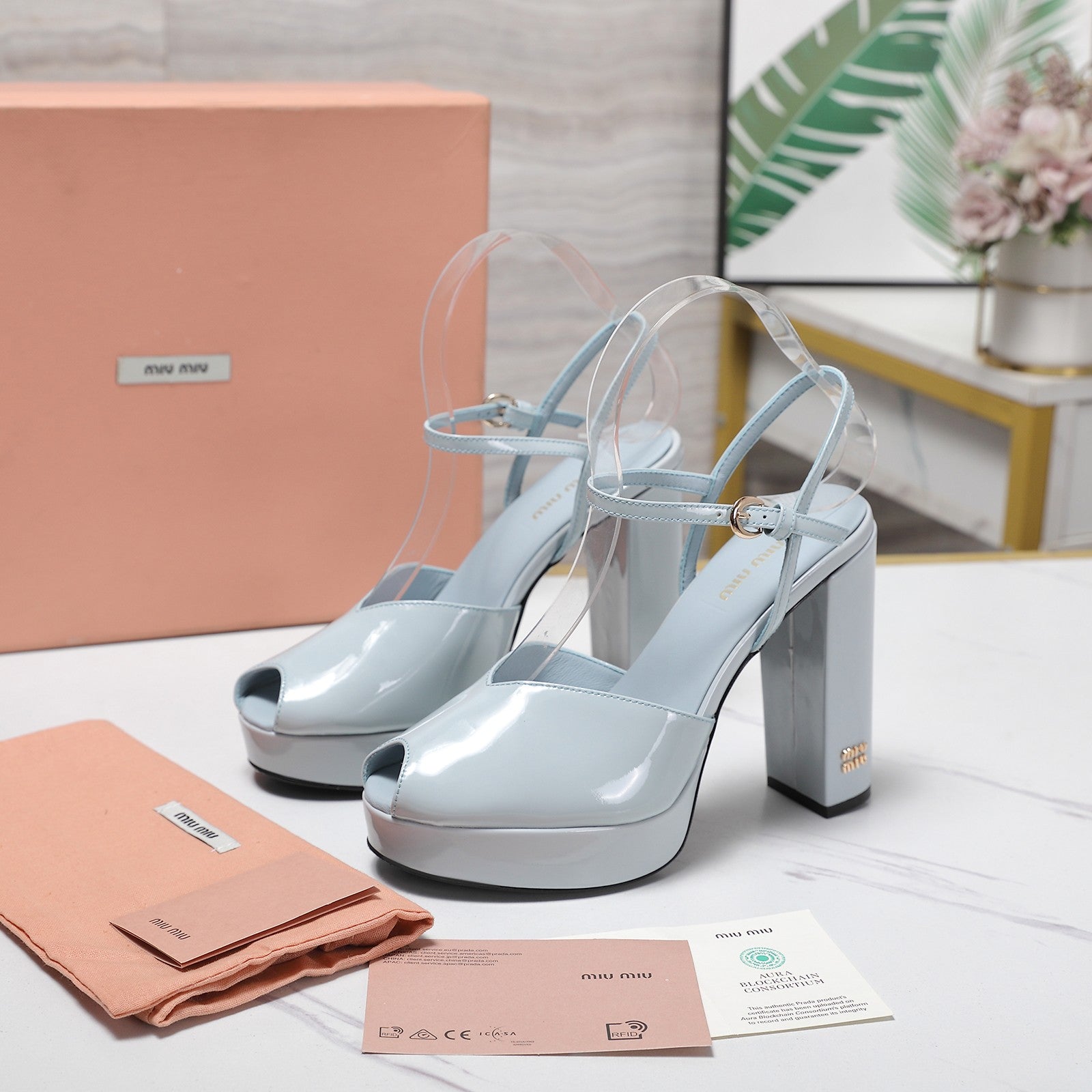 Miu Block-Heel Platform Sandals 125mm Light Steel Blue Patent Leather 504176