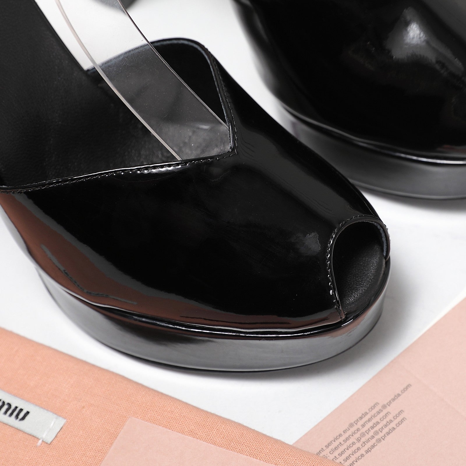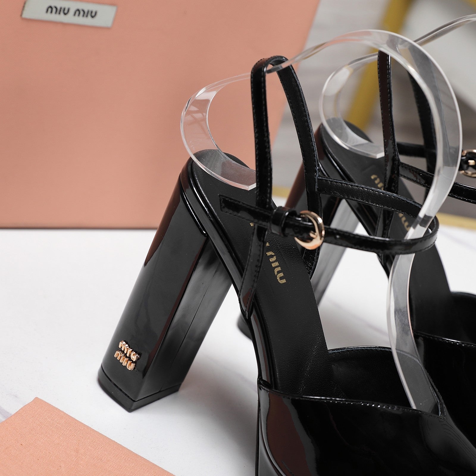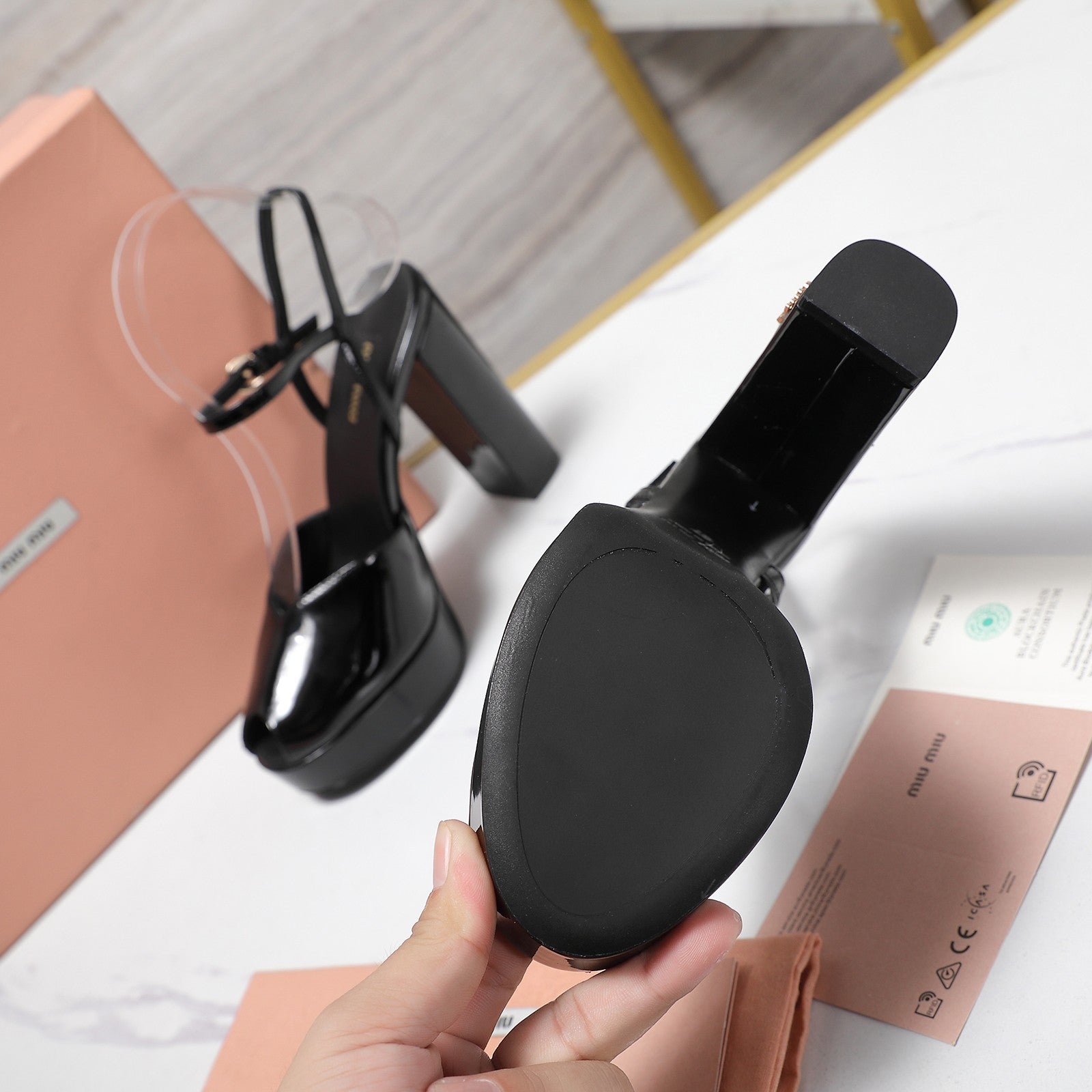 Miu Block-Heel Platform Sandals 125mm Black Patent Leather 504179
