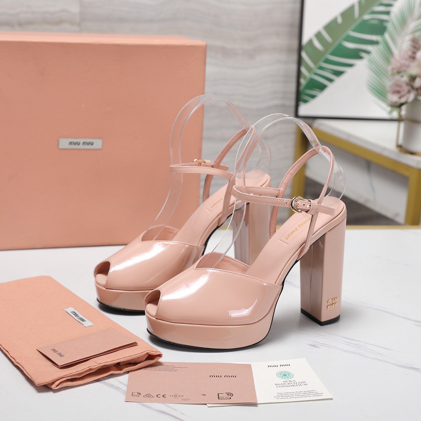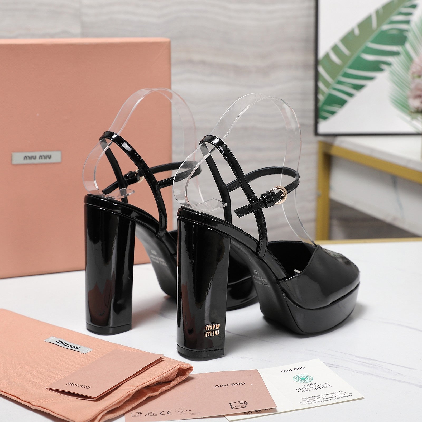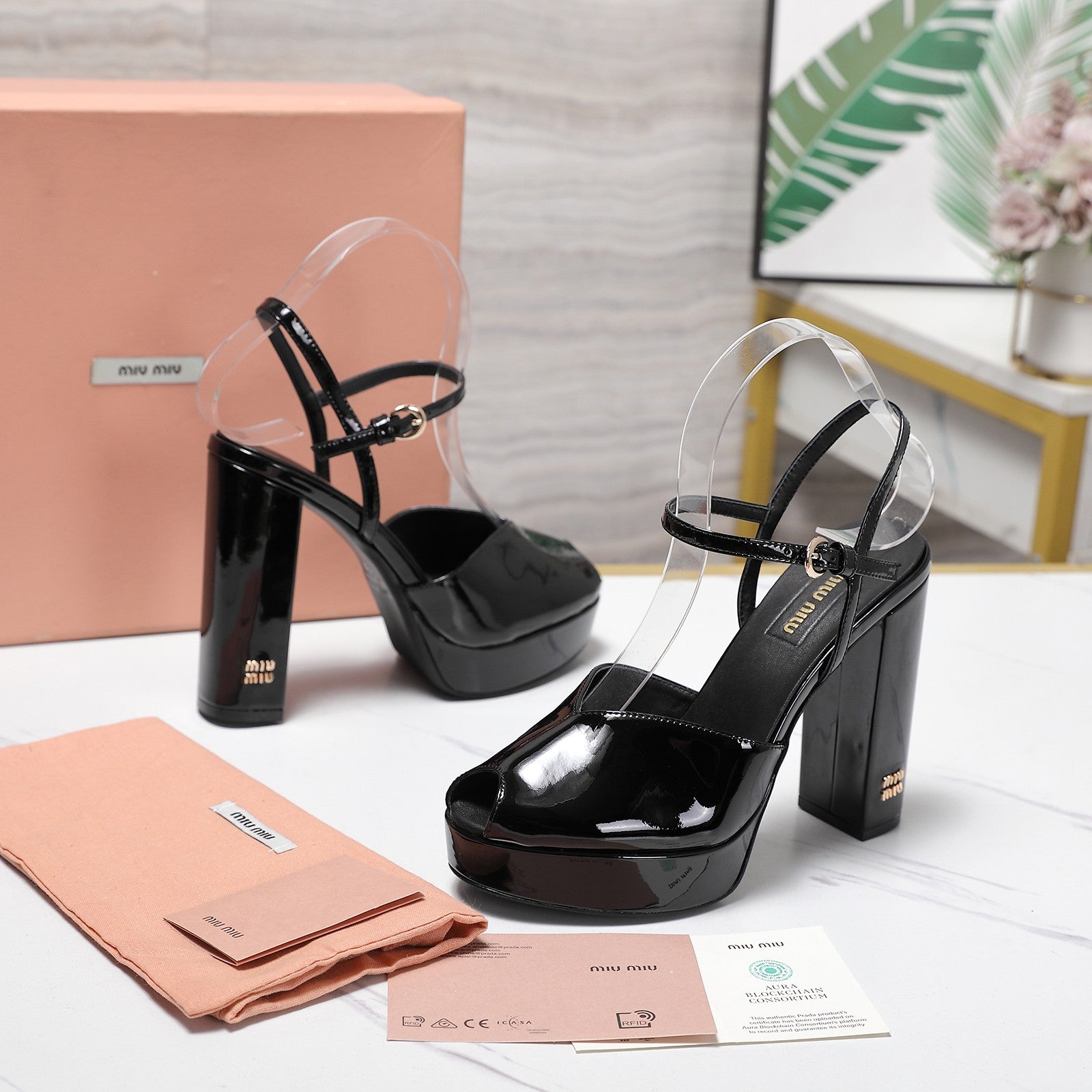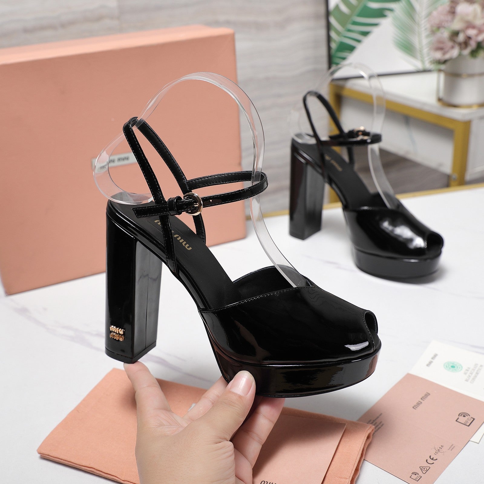 Miu Block-Heel Platform Sandals 125mm Black Patent Leather 504179