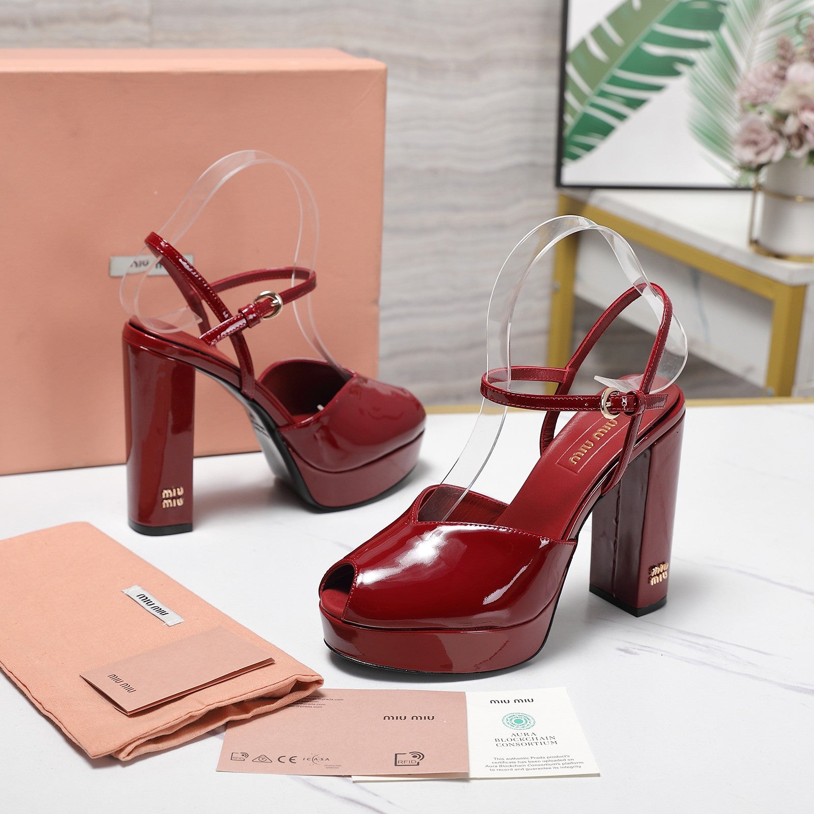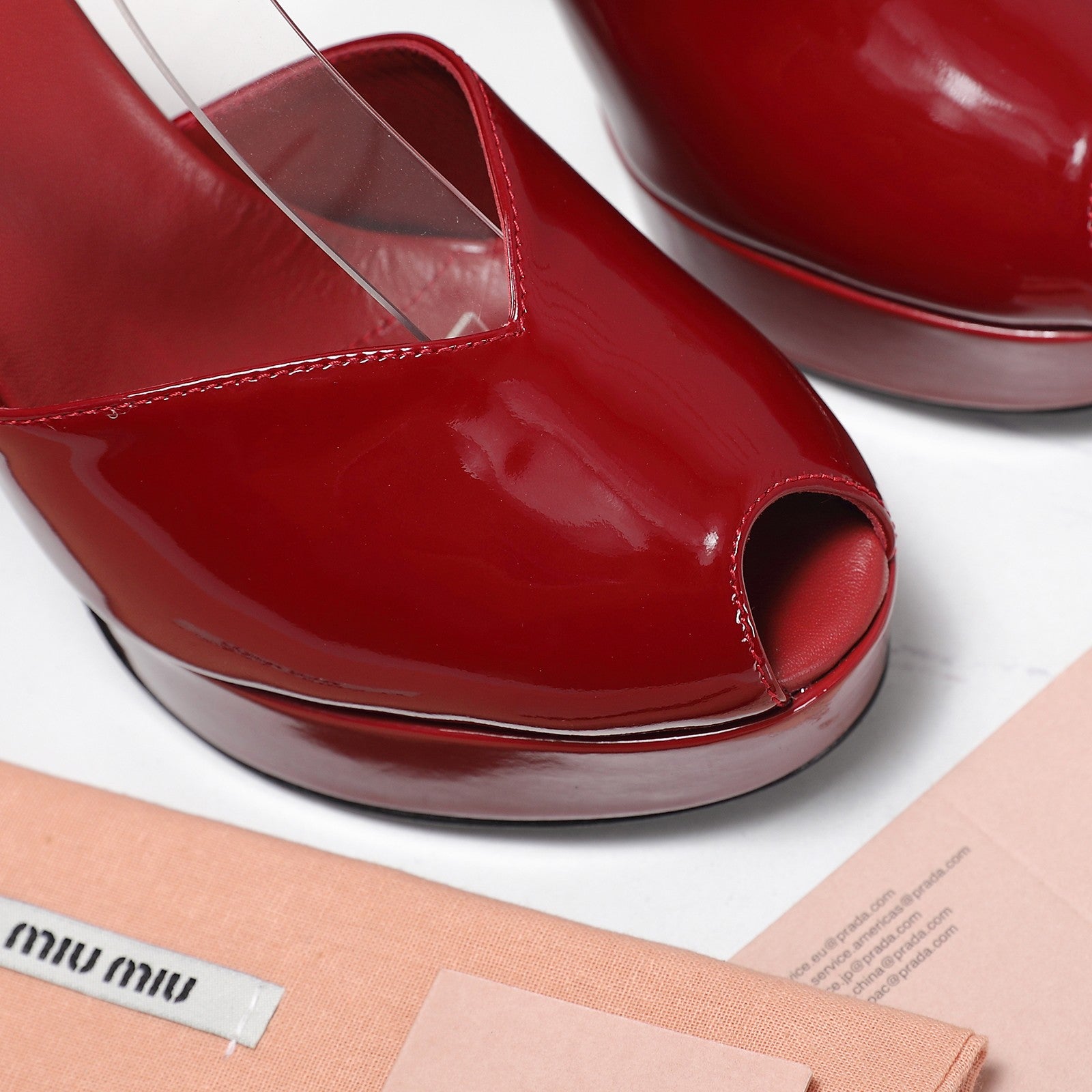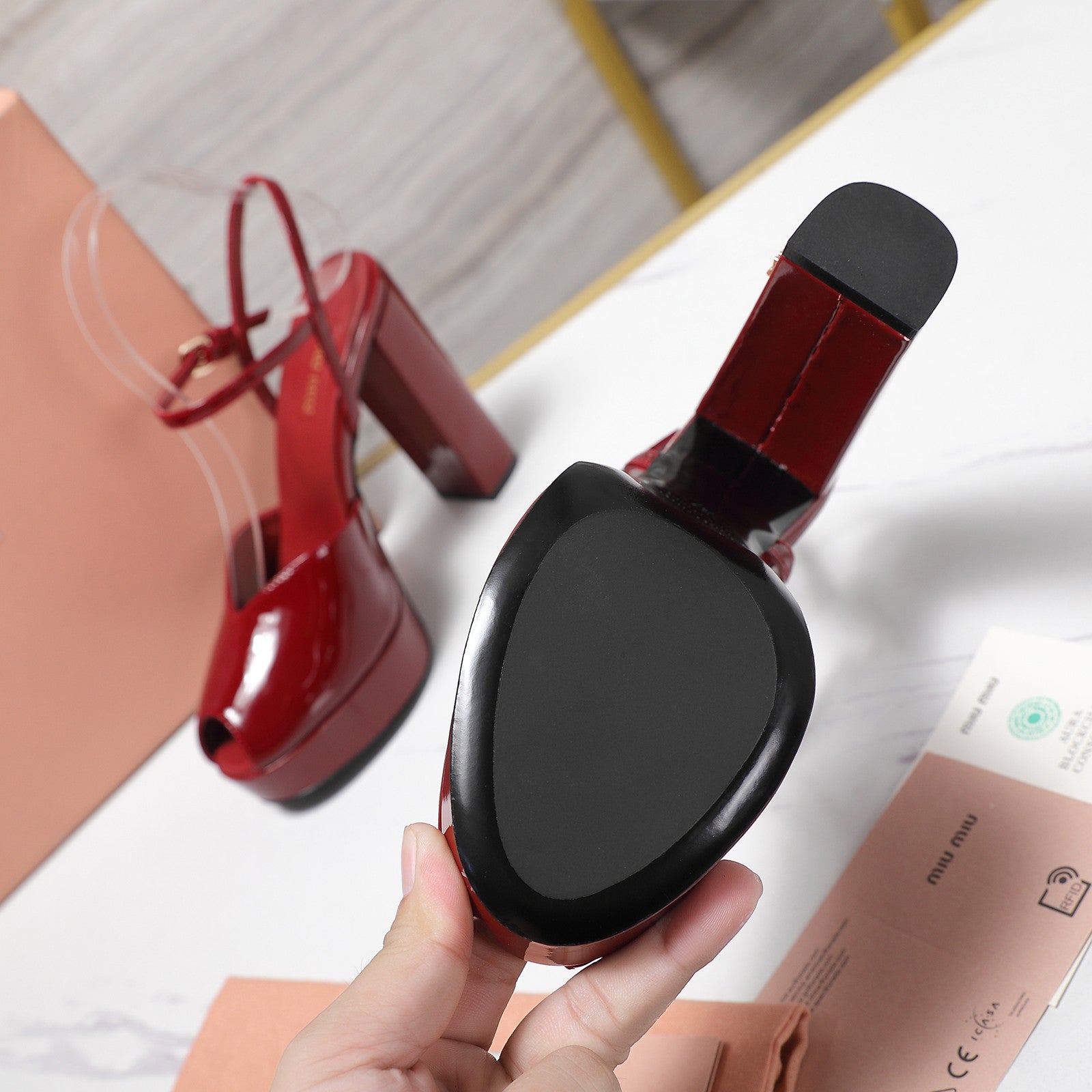 Miu Block-Heel Platform Sandals 125mm Red Patent Leather 504178