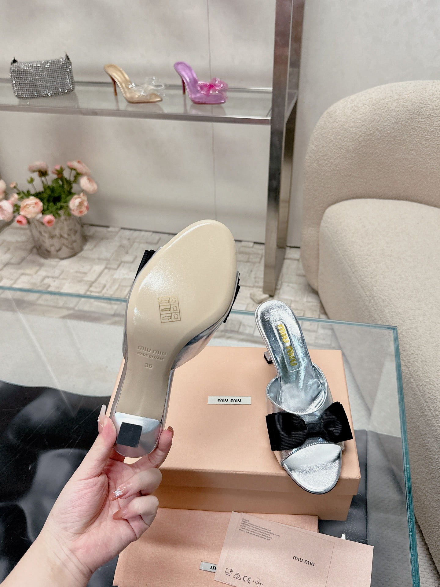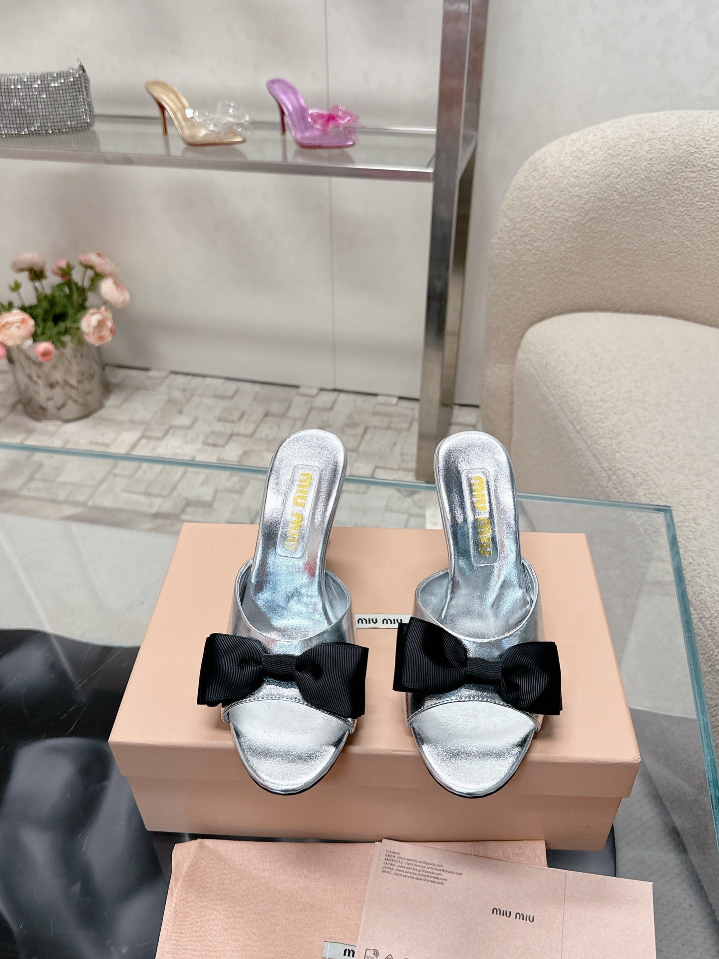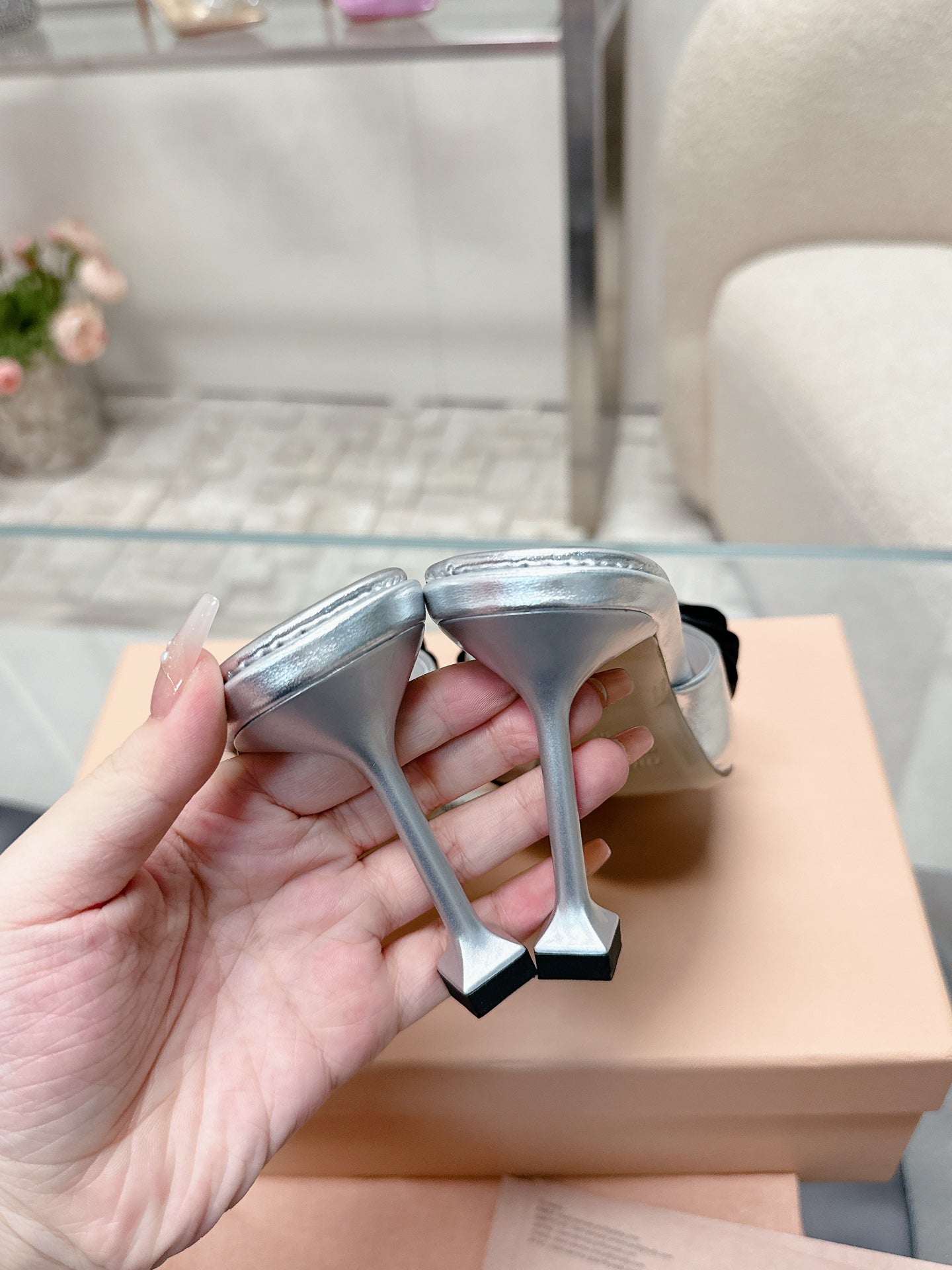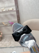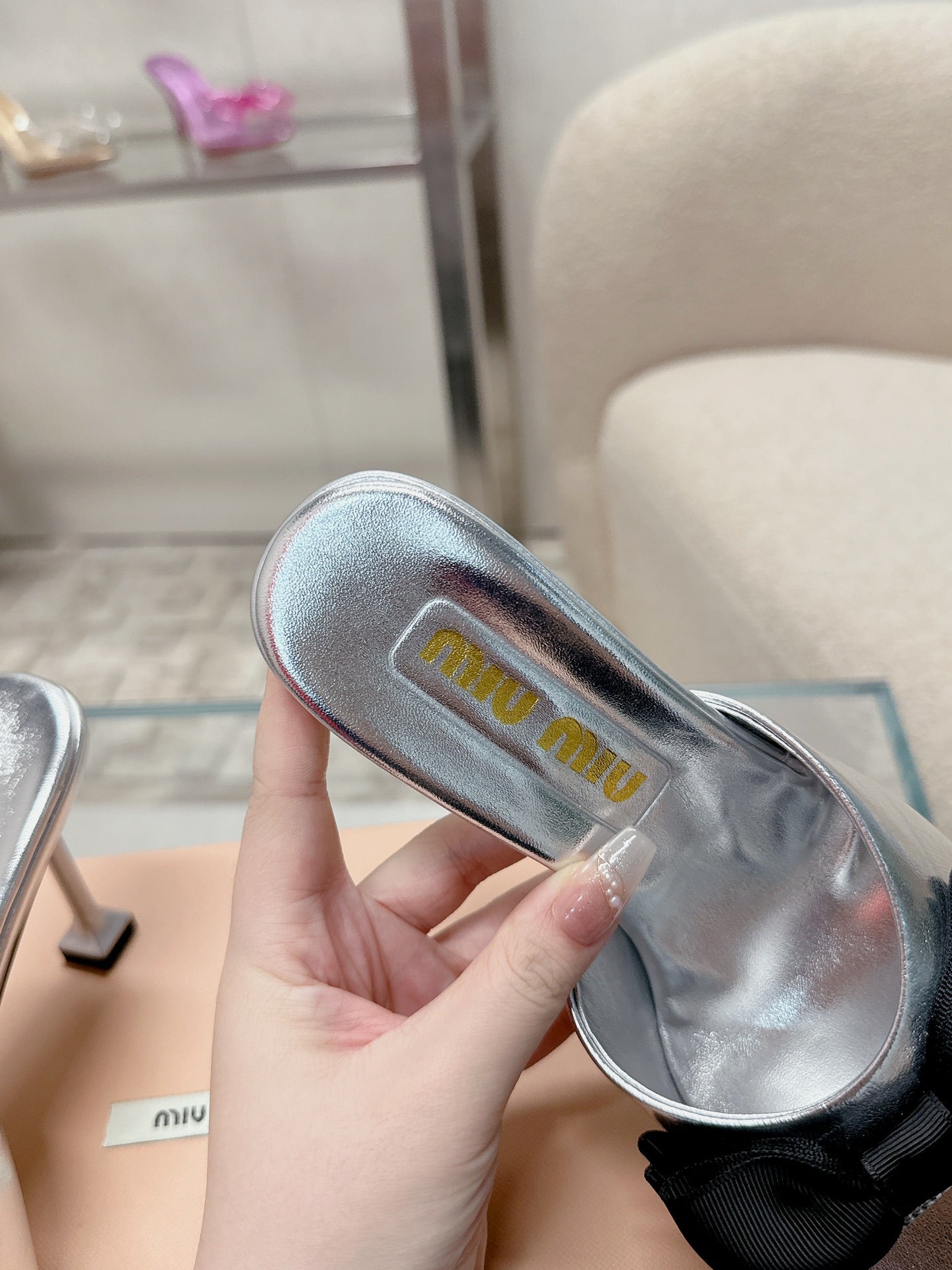 Miu Mordoré Black Bows Mules 70mm Sliver Cowhide 445513