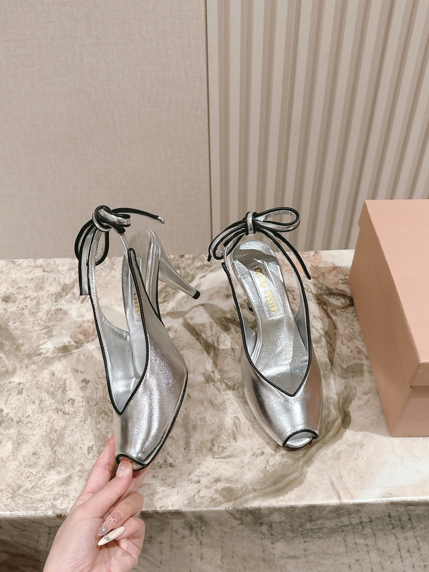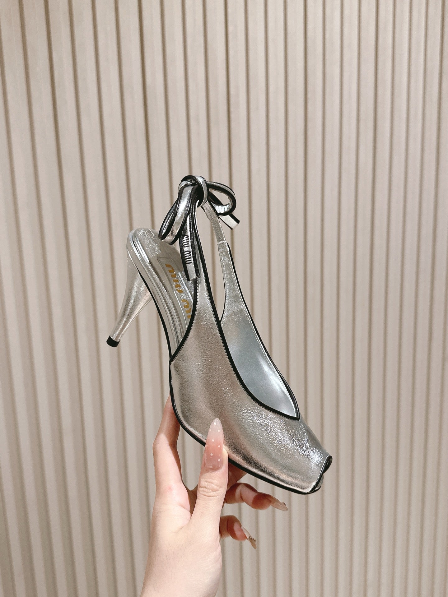 Miu Mordoré Slingback Pumps 85mm Sliver Cowhide Sheepskin 445795