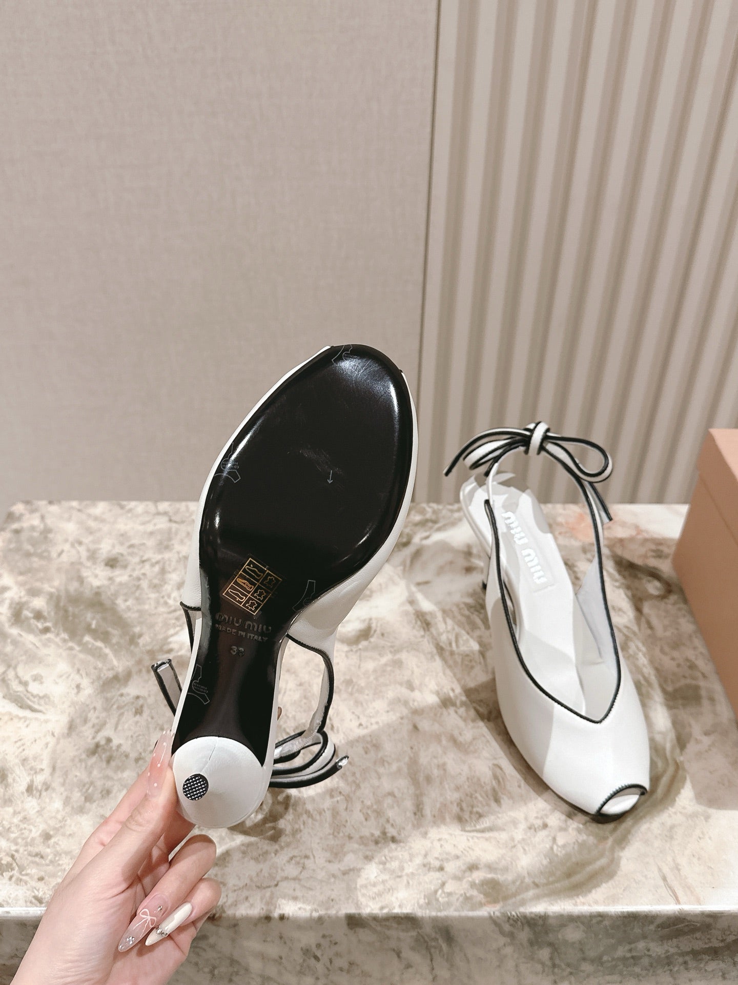 Miu Mordoré Slingback Pumps 85mm White Cowhide Sheepskin 445791