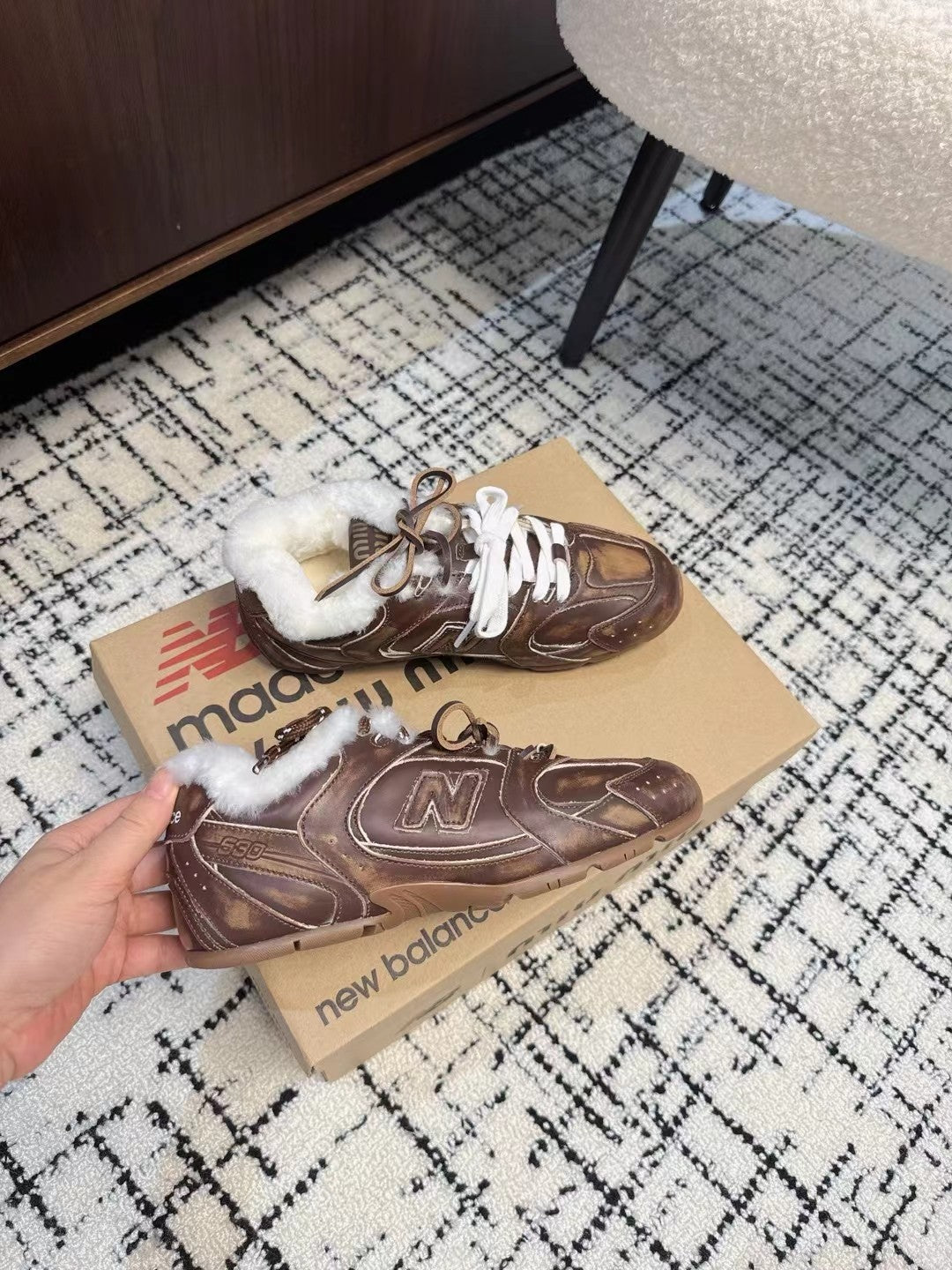 Miu Balance 530 SL Sneakers fleece lining Wood Brown Suede