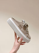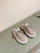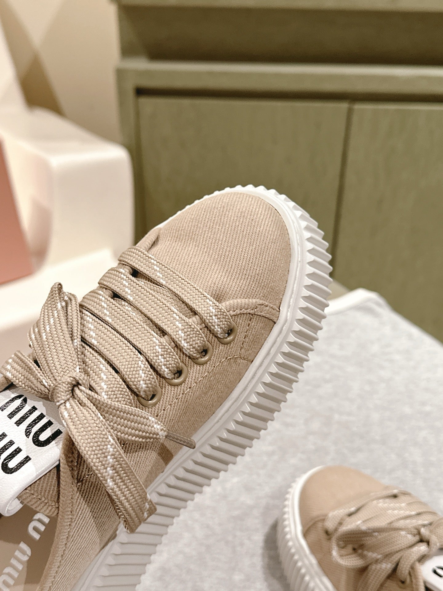 Miu Miu Biscuit Shoes Platform Mules Beige Denim Canvas 532873