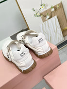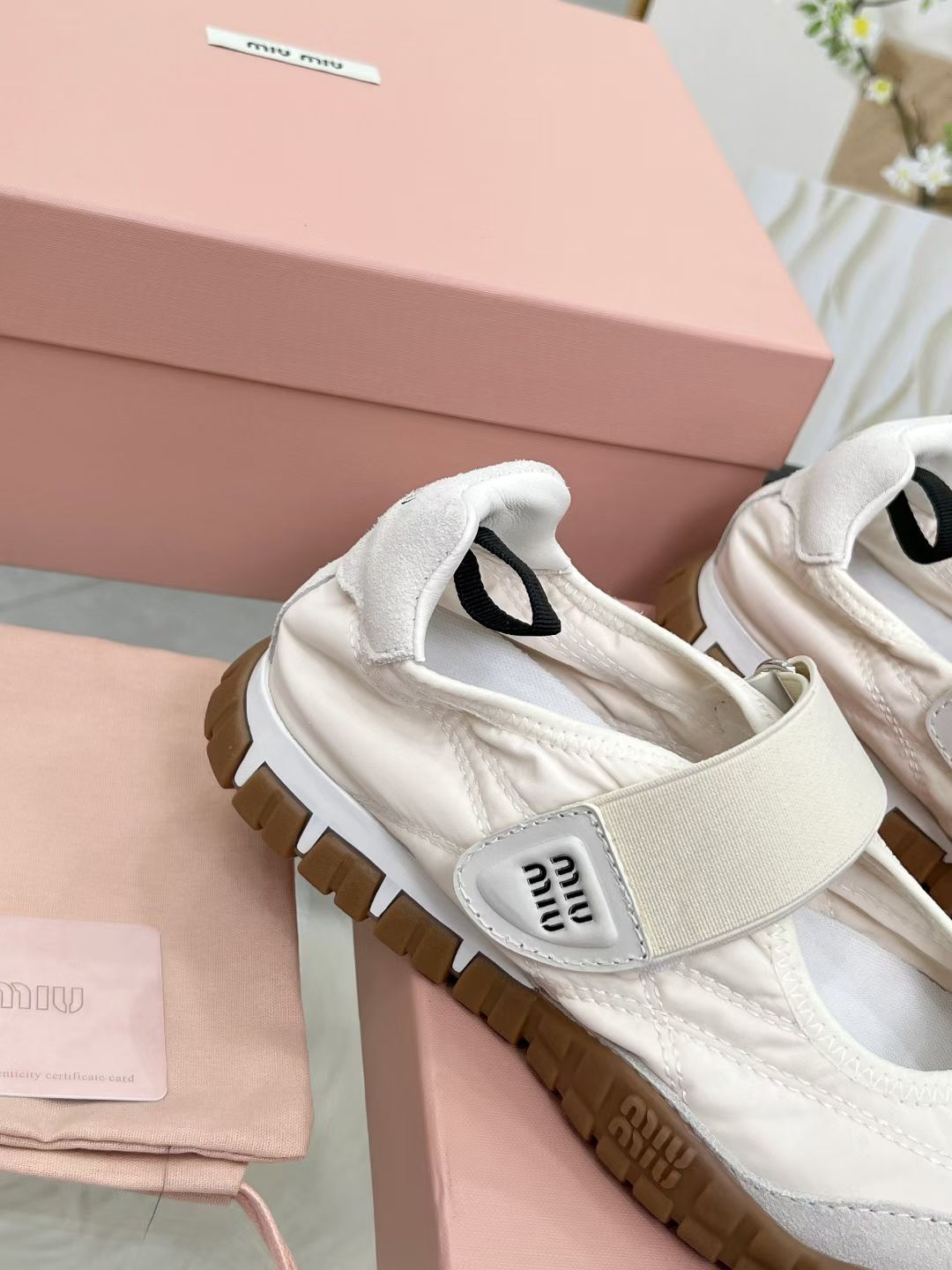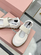 Miu Tyre Ballerina Shoes White Suede Fabric 456343