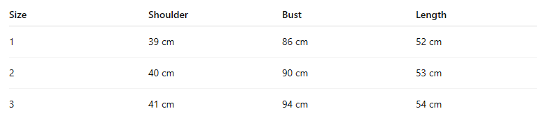 - For more information, please see the size guide below