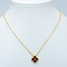 CLOVER NECKLACE GOLD DIAMOND CARNELIAN