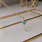 KEY PEDANT TURQUOISE HEART GOLD NECKLACE