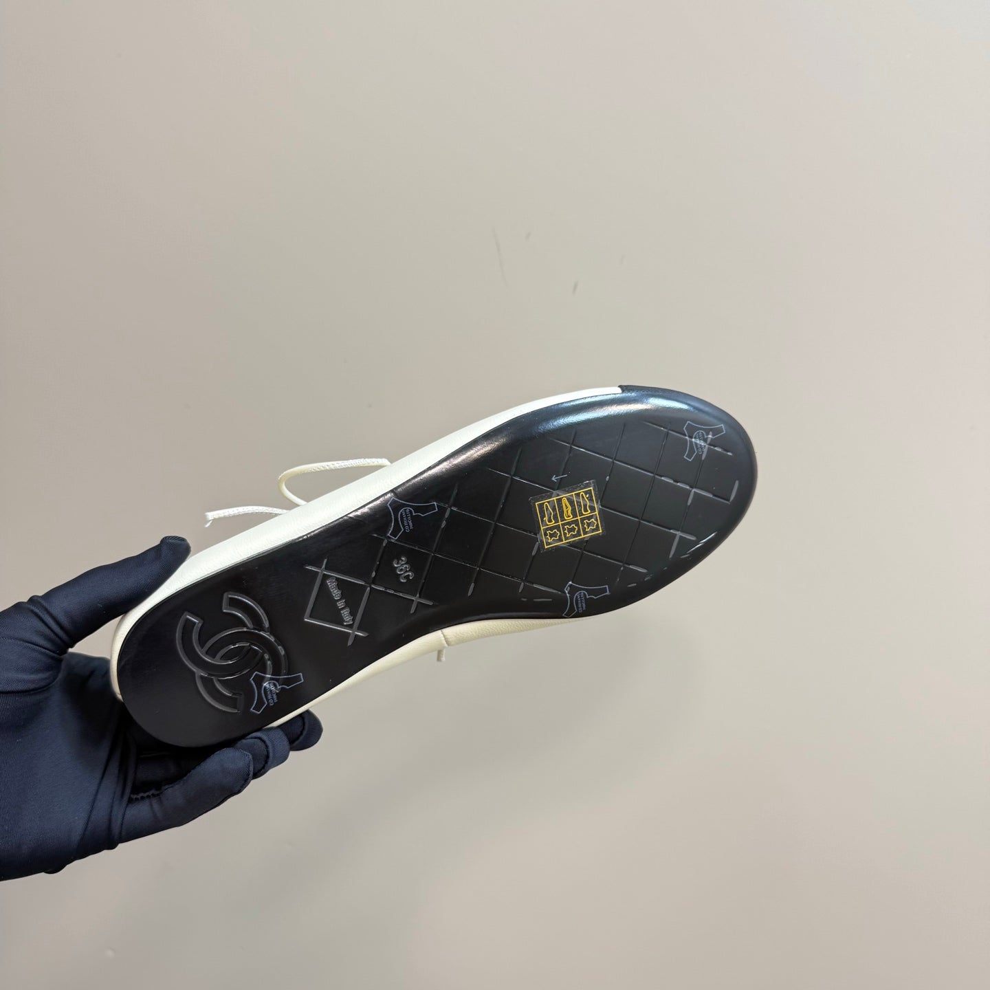 CC 25 Mary Jane Flat Beige Cream Leather with Fabric 239407