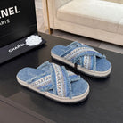 CC 25C Thick-Soled Slipper In Black Denim Steel Blue Fabric 213232