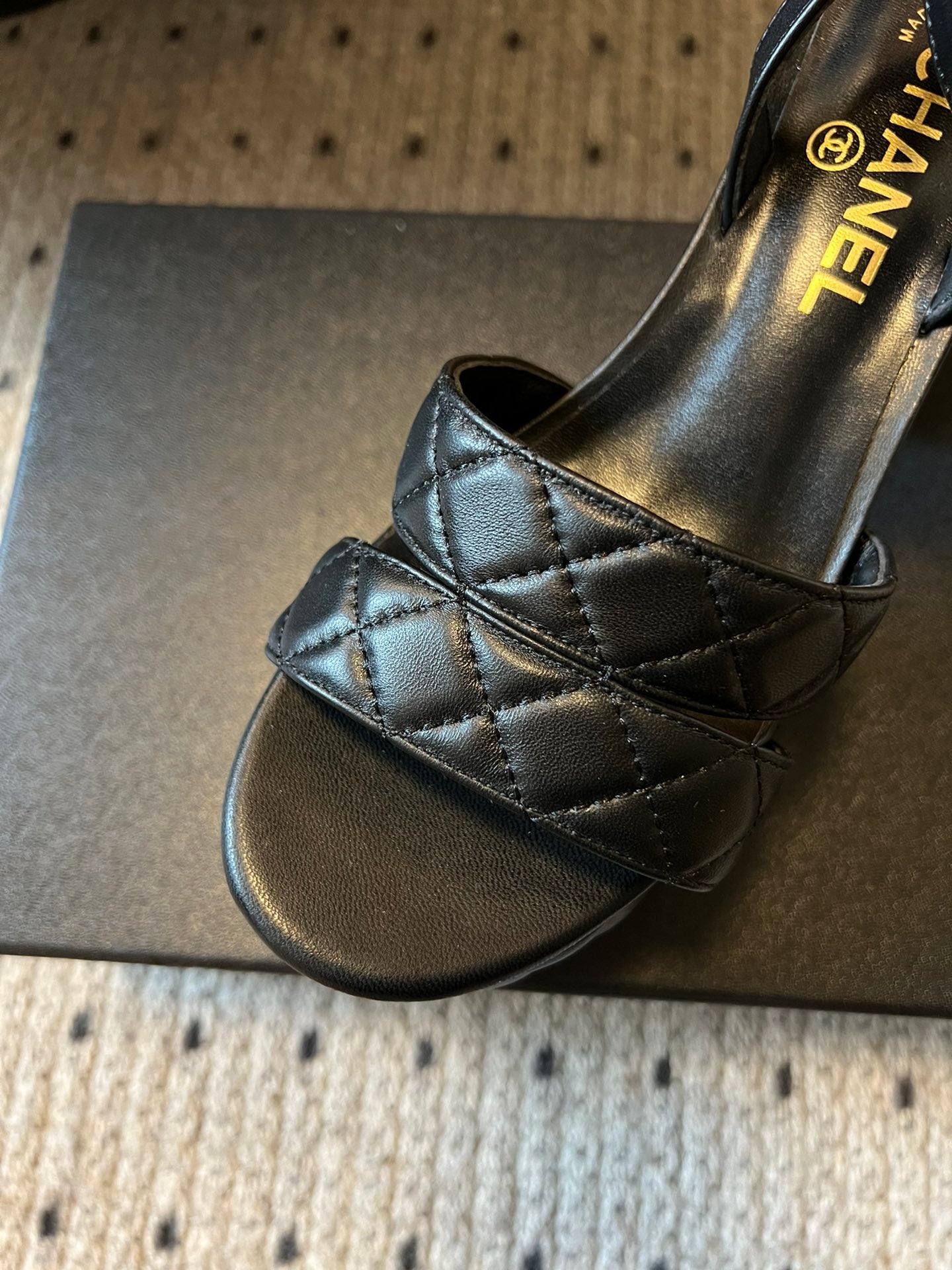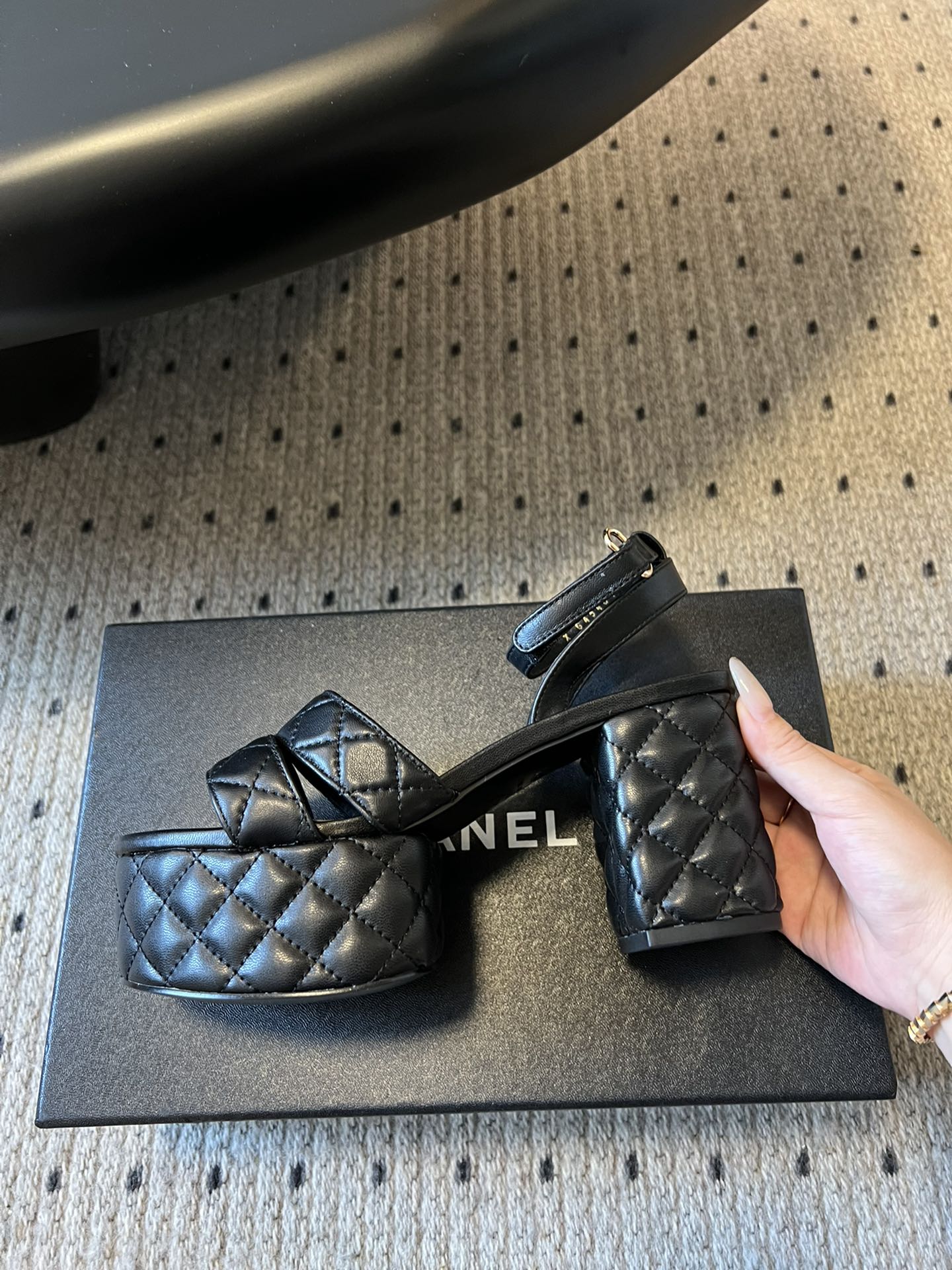 CC 25SS Platform Sandals 5.5cm Black Sheepskin 319628
