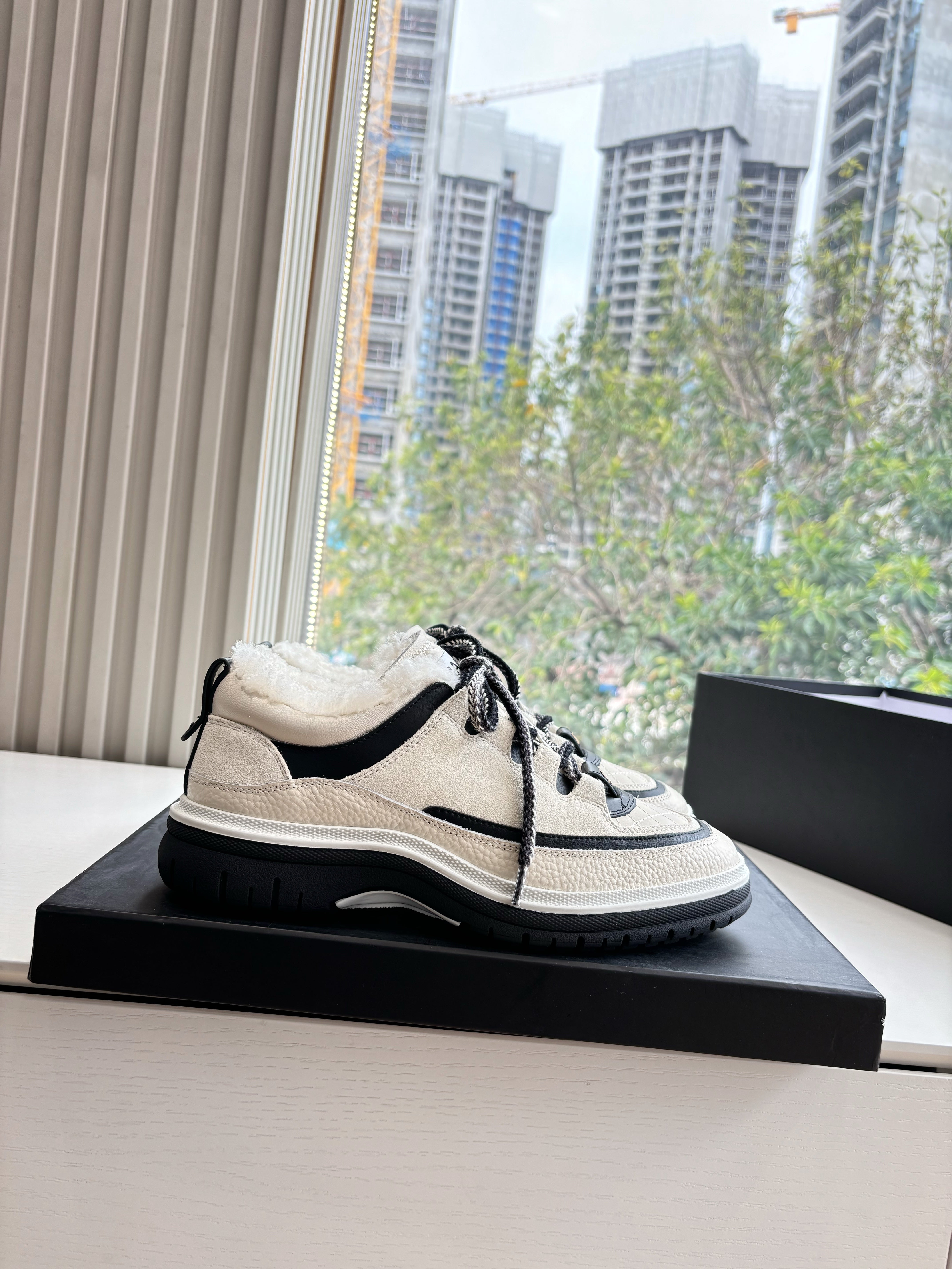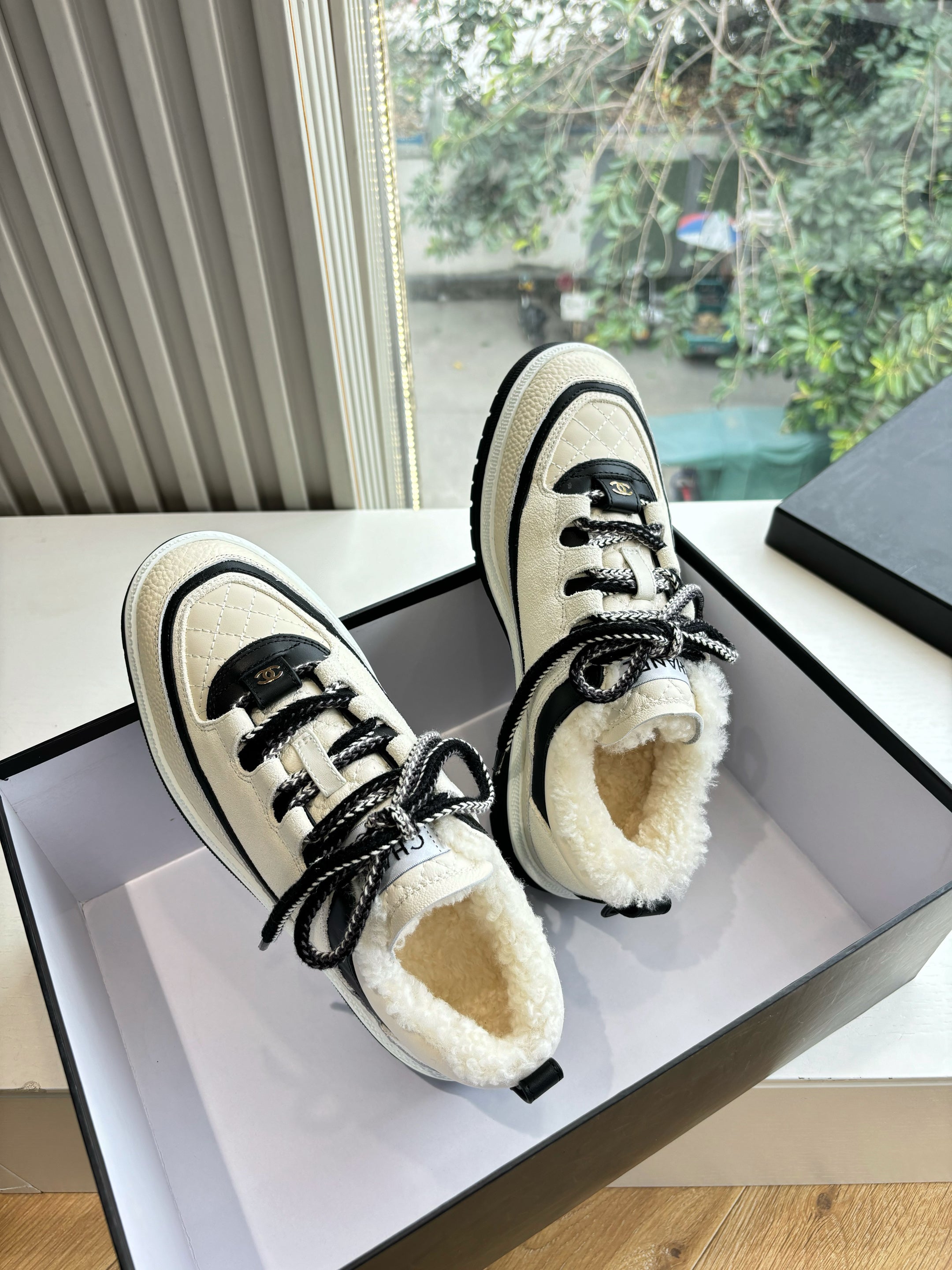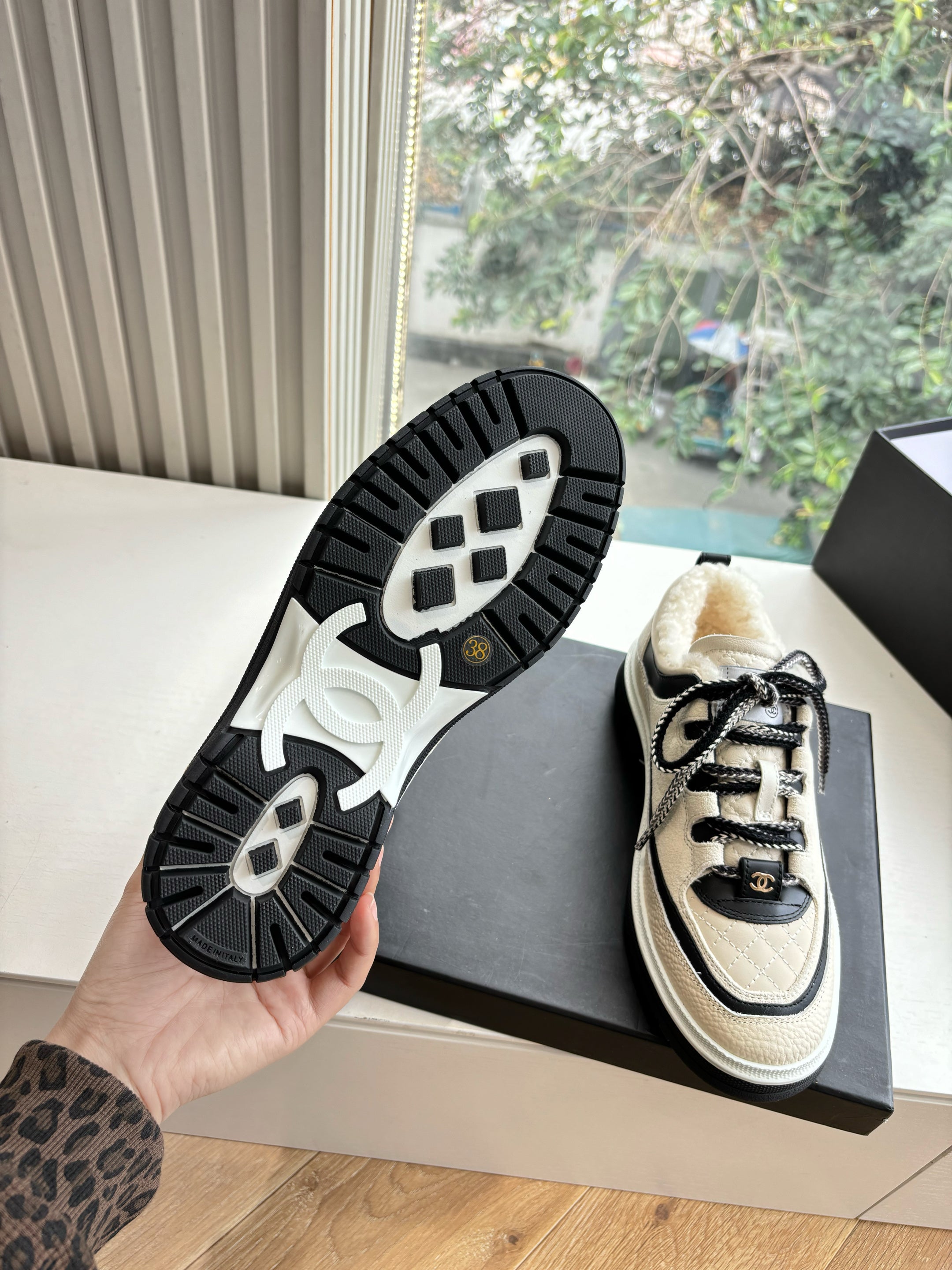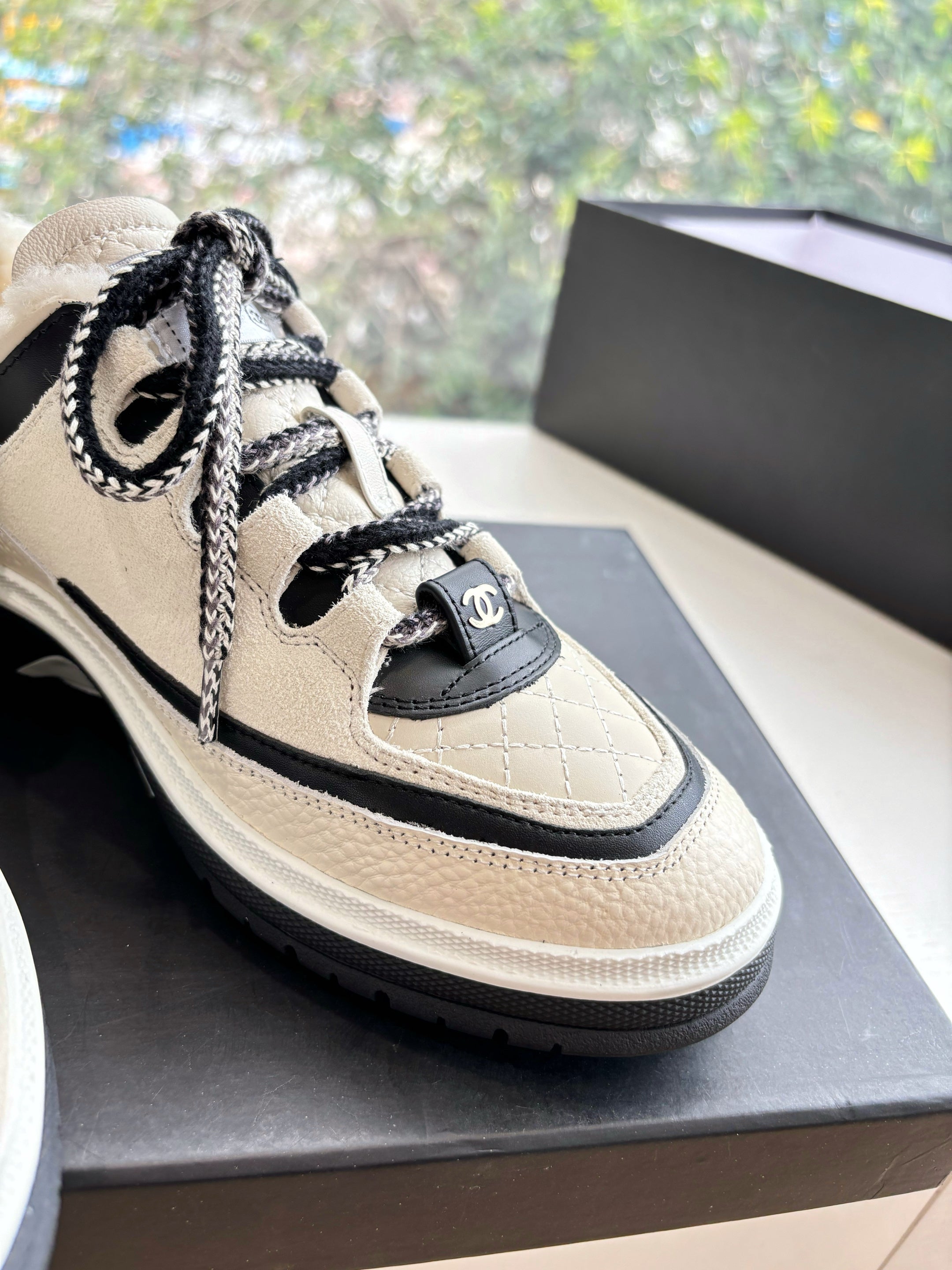 CC Casual Shoes Women's Low Top Black Beige Suede Cowhide Fur 548854