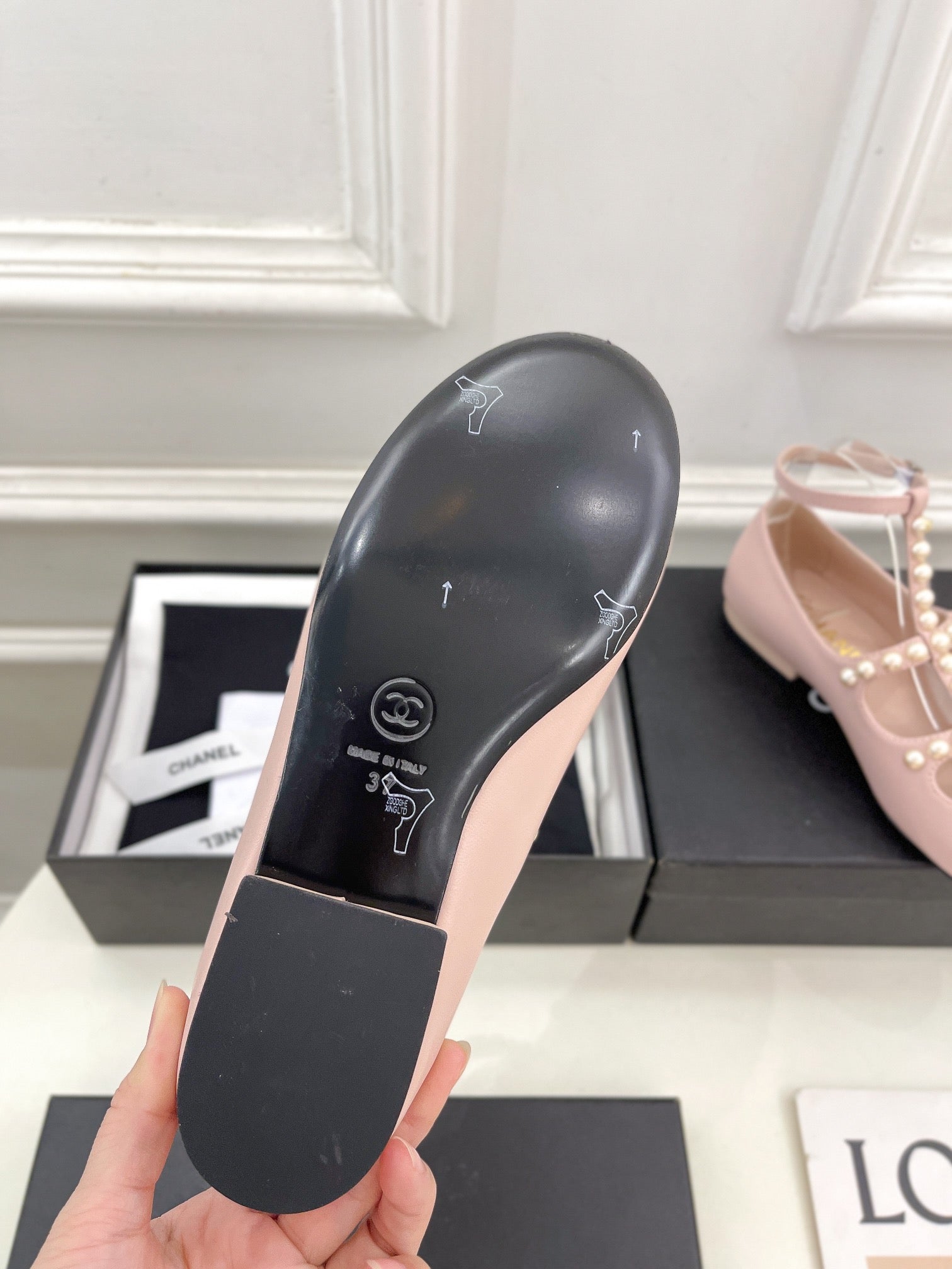 CC Mary Jane 10mm In Light Pink With Small Pearls Lambskin 948760
