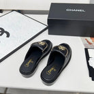 CHANEL 25S MULES WITH CHAIN DETAIL IN BLACK CALFSKIN GOLD HARDWRE