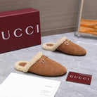 GG Horsebit Mules with Brown Insole Suede Shearing 547328