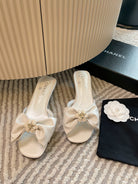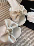 mule sandal bow flower white calfskin