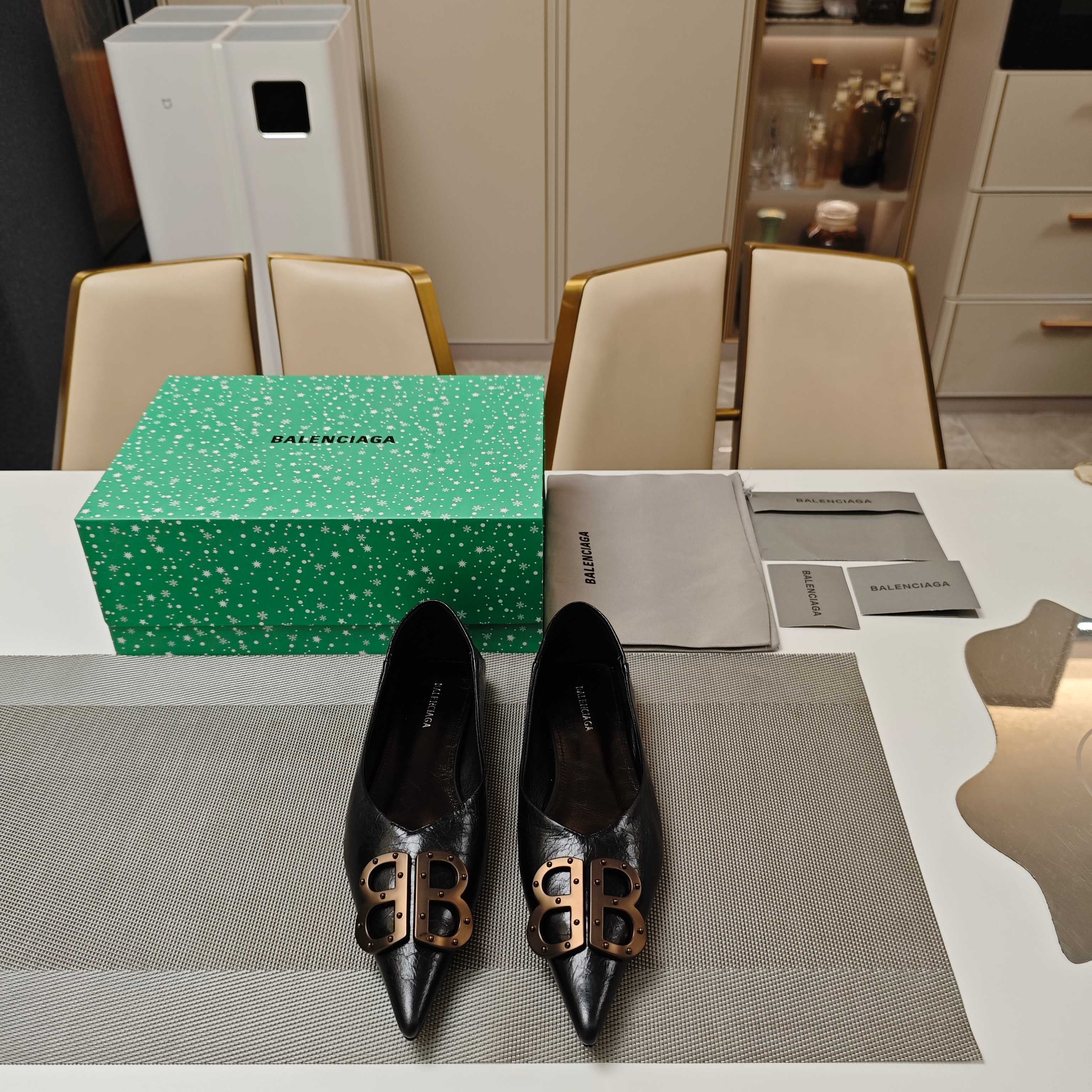 POINTED BALLET FLATS IN BLACK SHINY CRACKED SHEEPSKIN