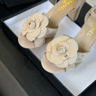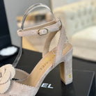 sandal flower high heel 80 beige suede