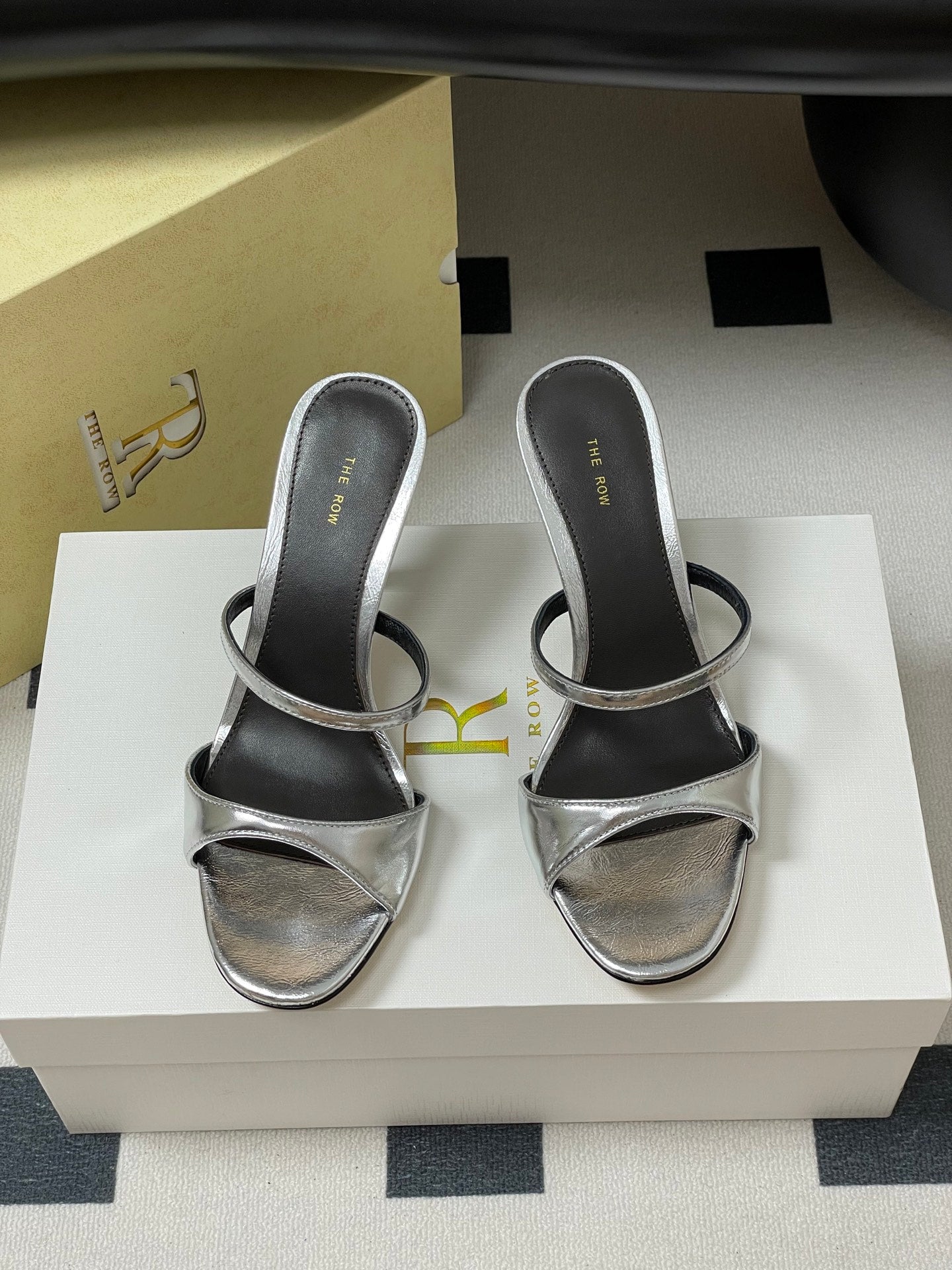 The Row 25S Strap High Heel Mule Sandals 85mm Black Mix Silver Metallic Cowhide 286209