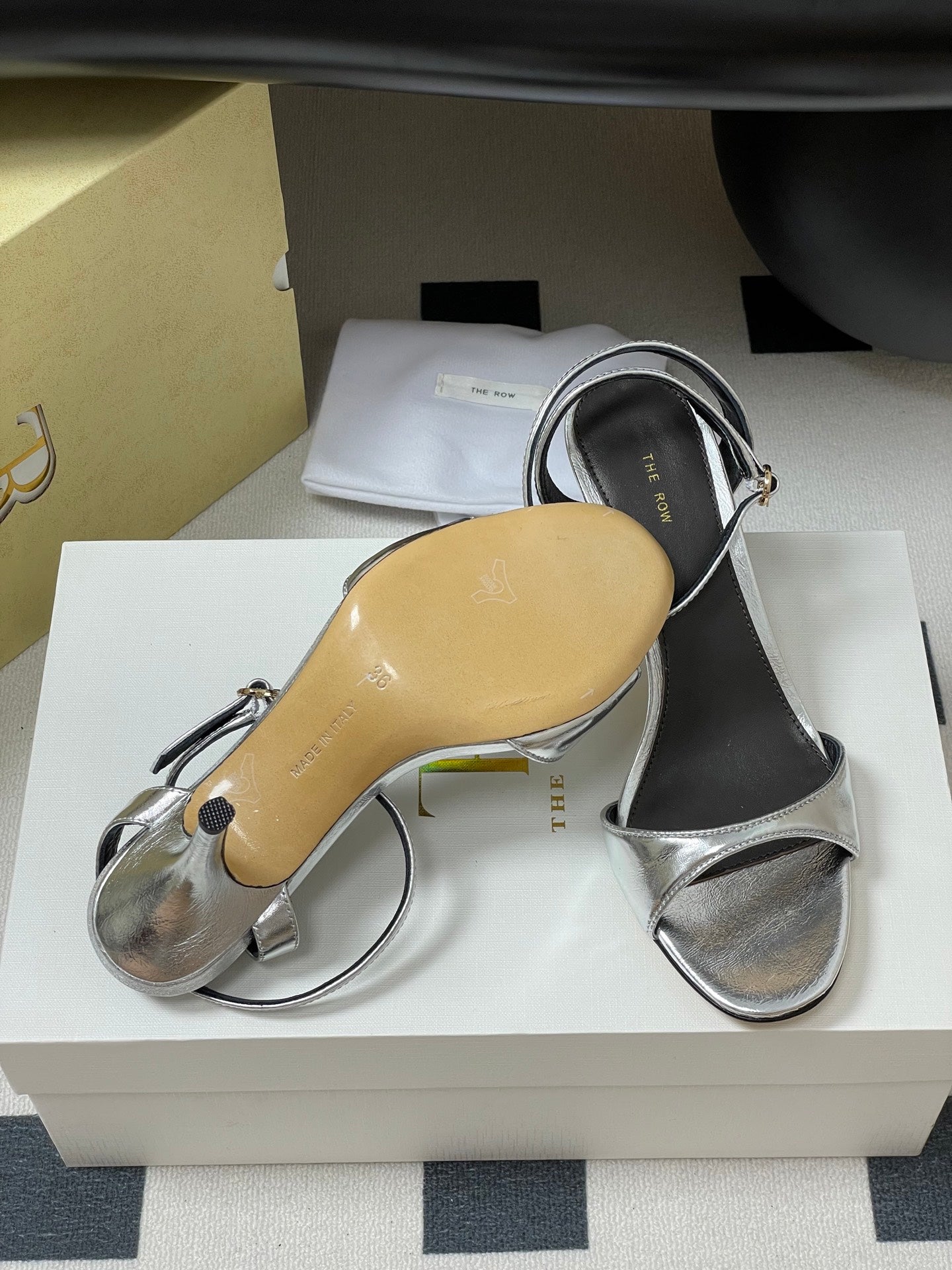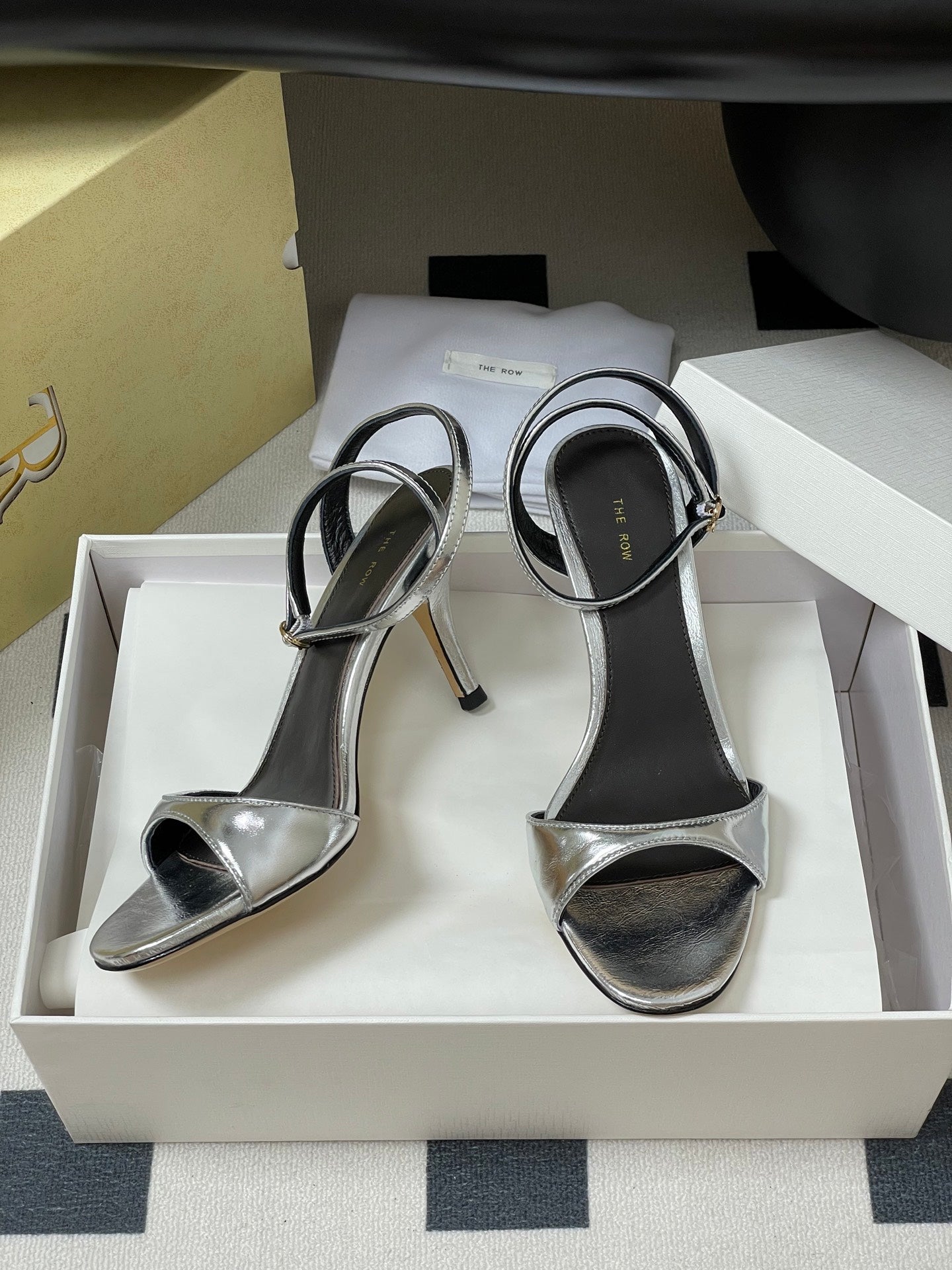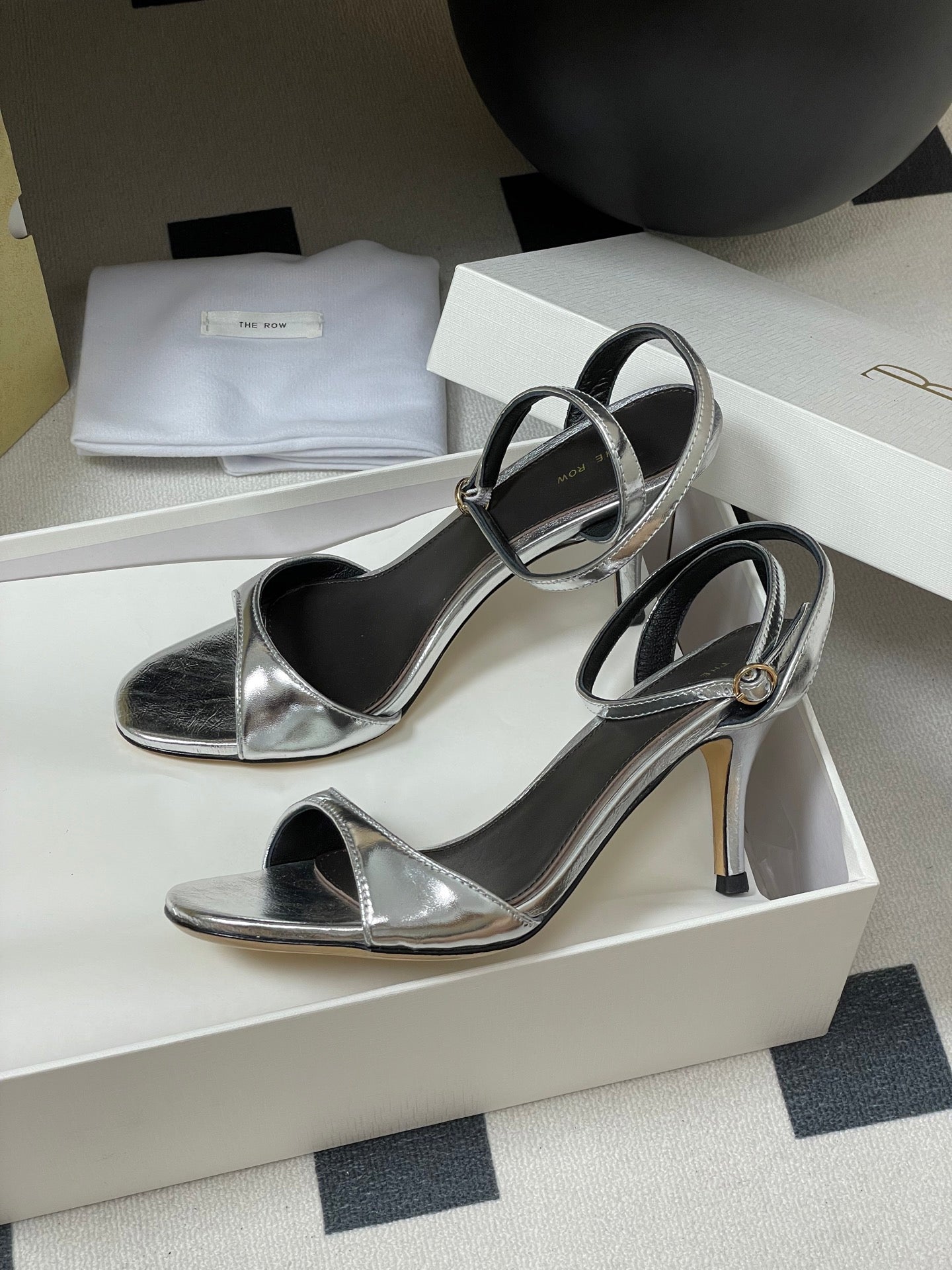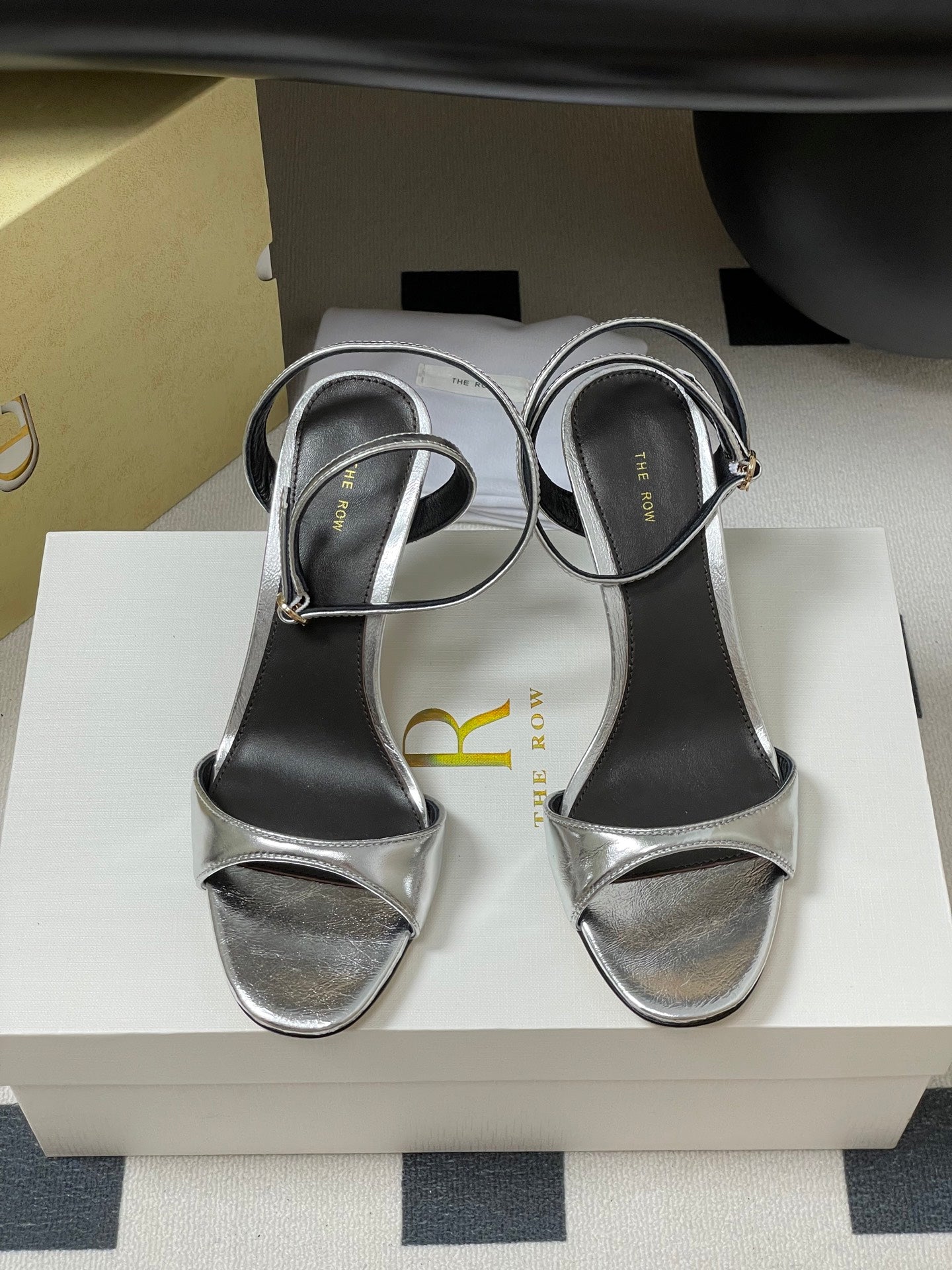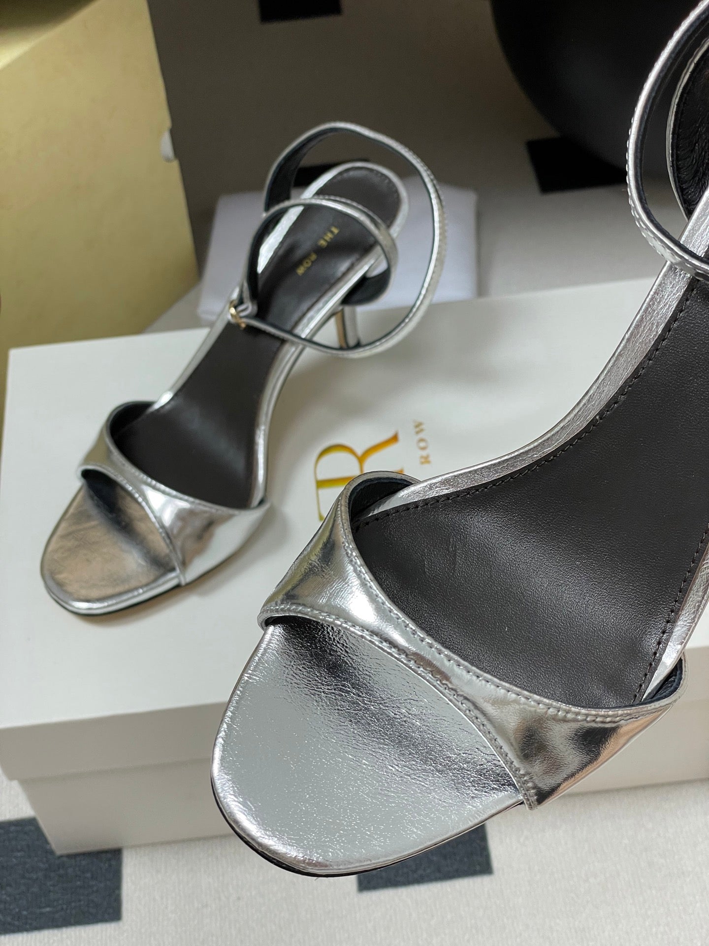The Row 25S Strap High Heel Sandals 85mm Black Mix Gold Metallic Cowhide 286193