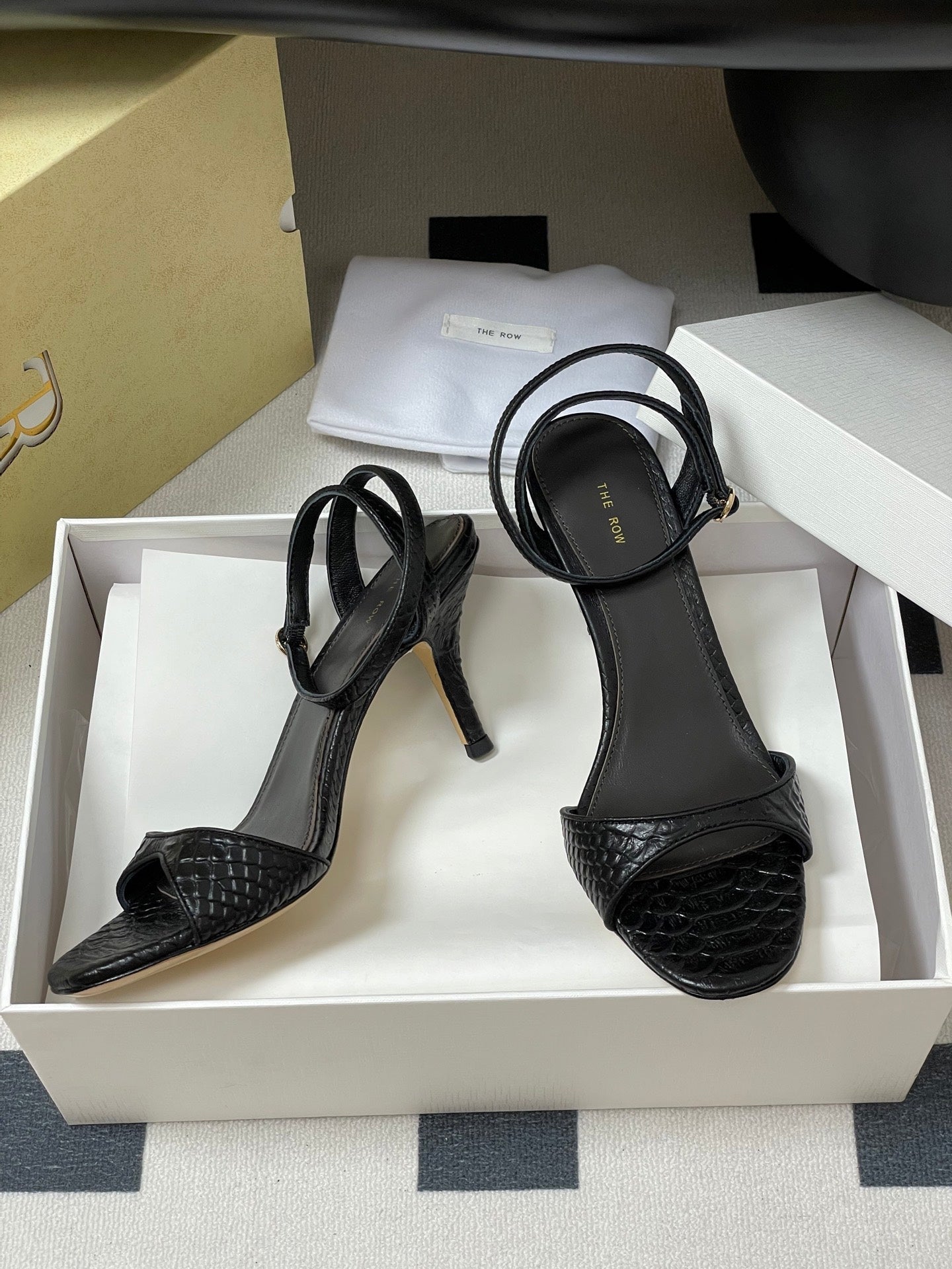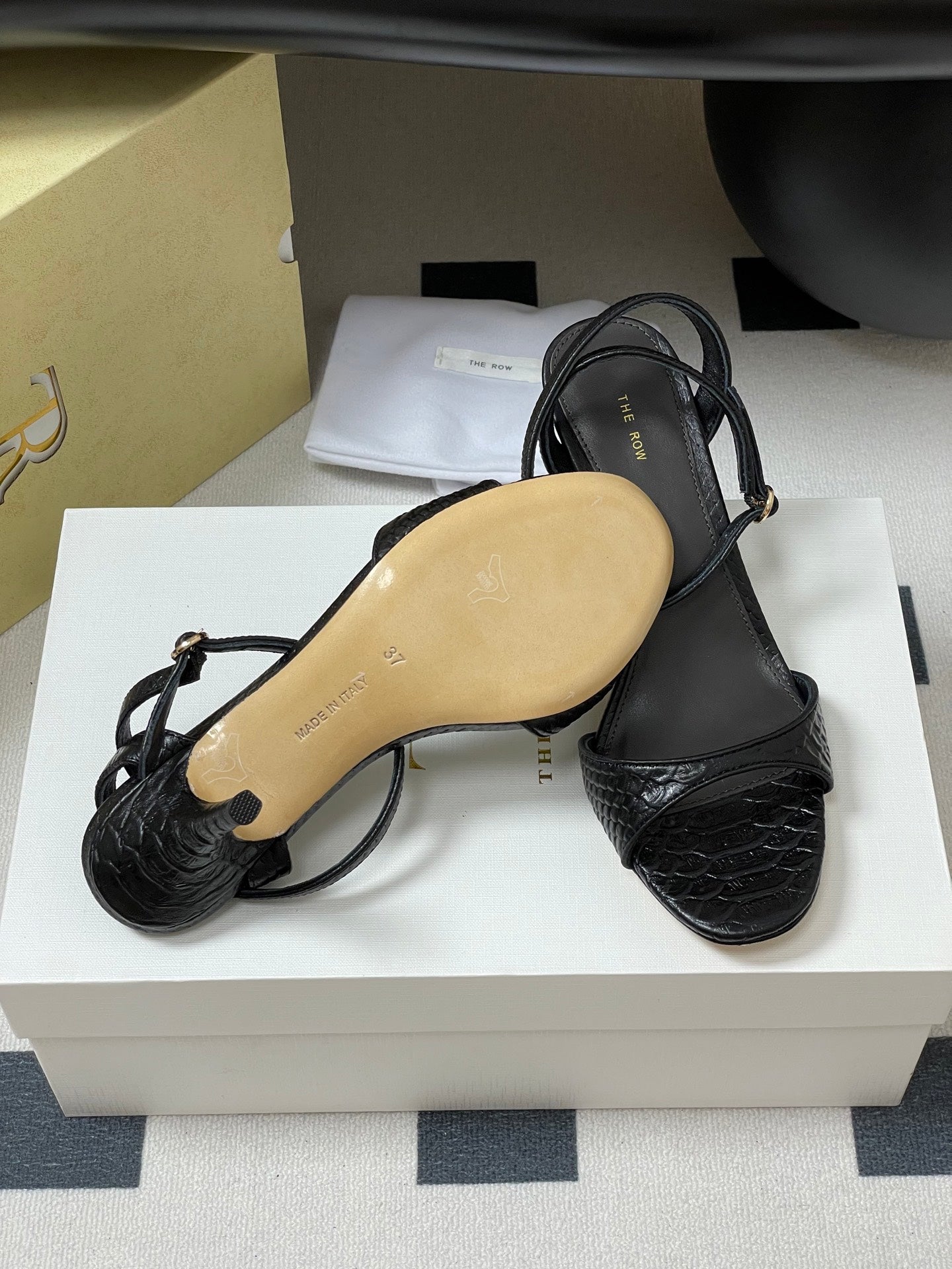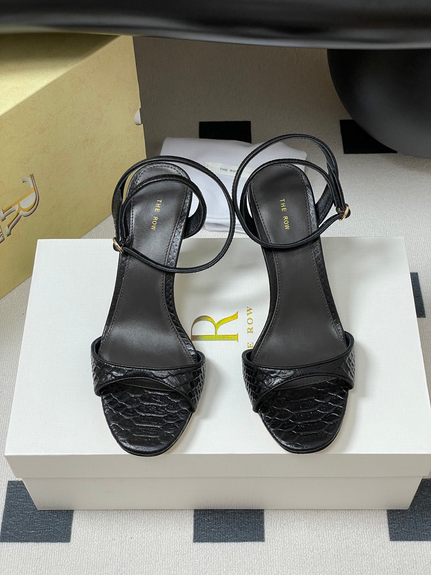 The Row 25S Strap High Heel Sandals 85mm Black Snake Pattern Cowhide 286189