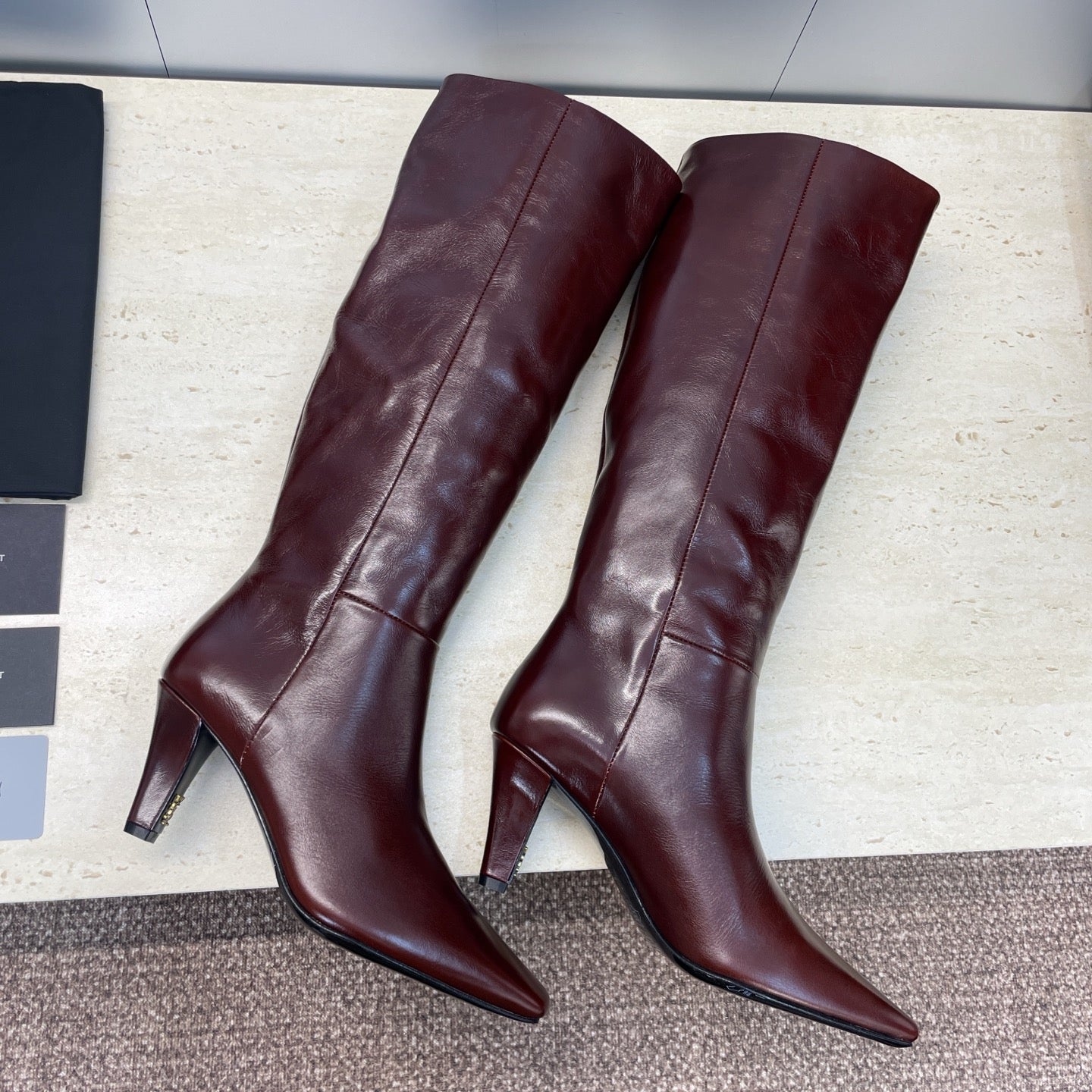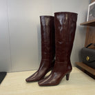 YSL Jill Boots 75mm Burgundy Smooth Cafskin 551933