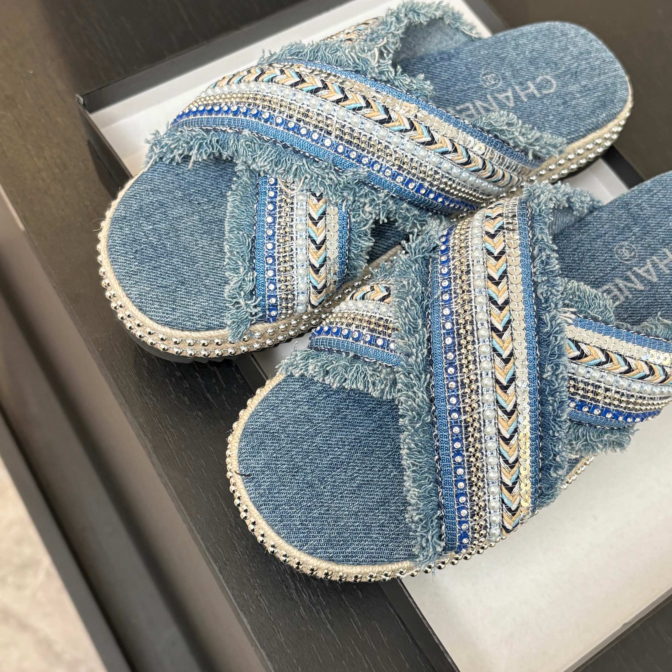 CC 25C Thick-Soled Slipper In Black Denim Space blue Fabric 213231