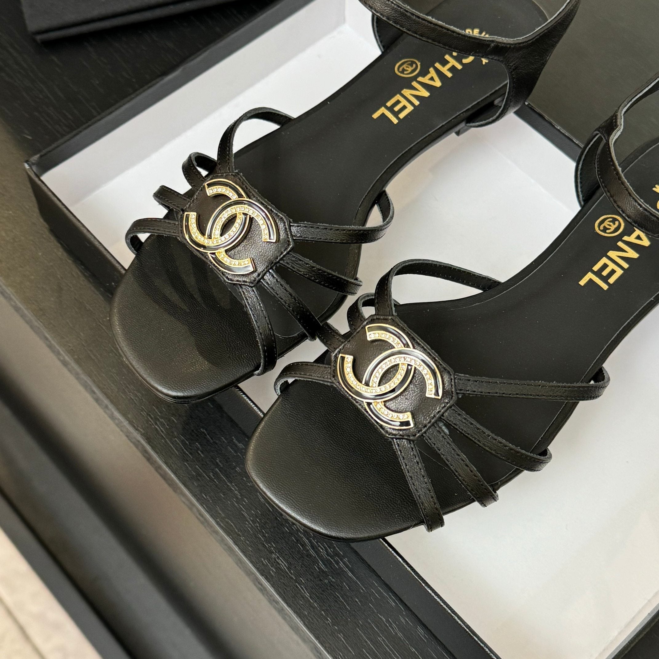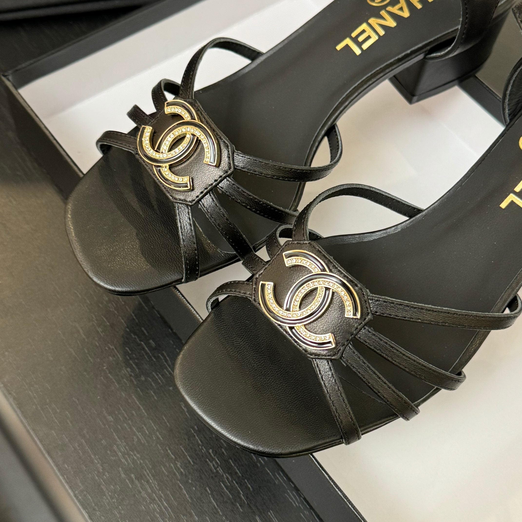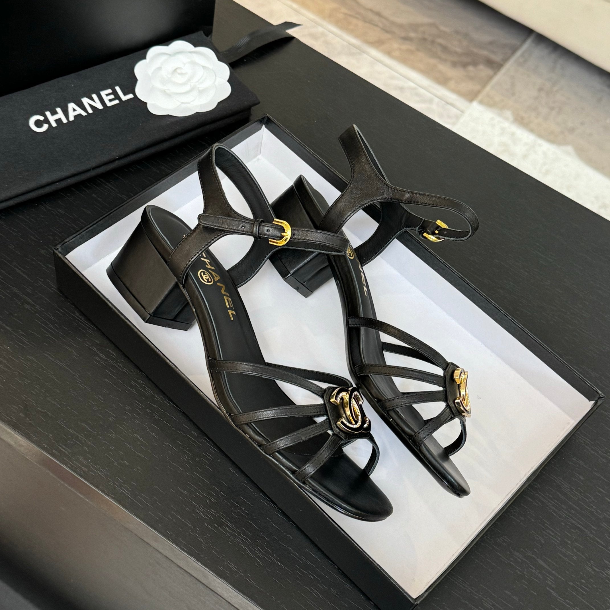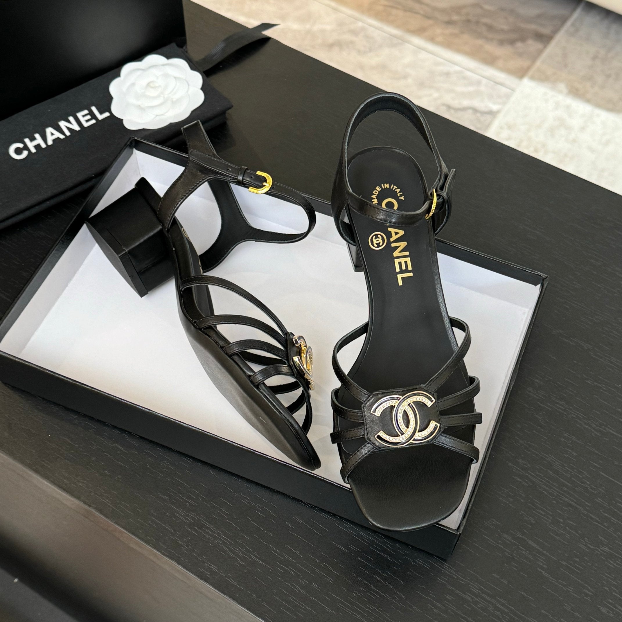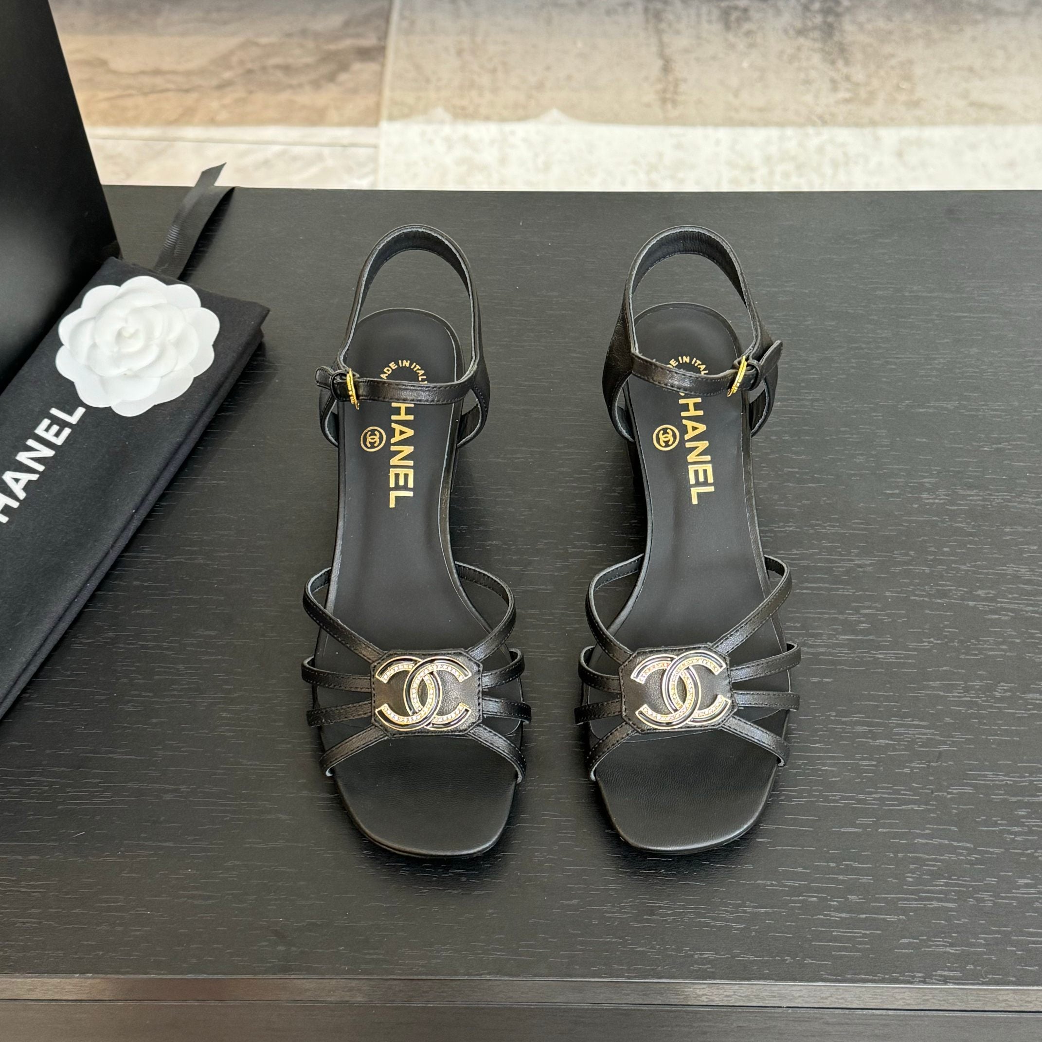 CC 25C 5CM Mid Heed Sandals Black Italian Leather 213315