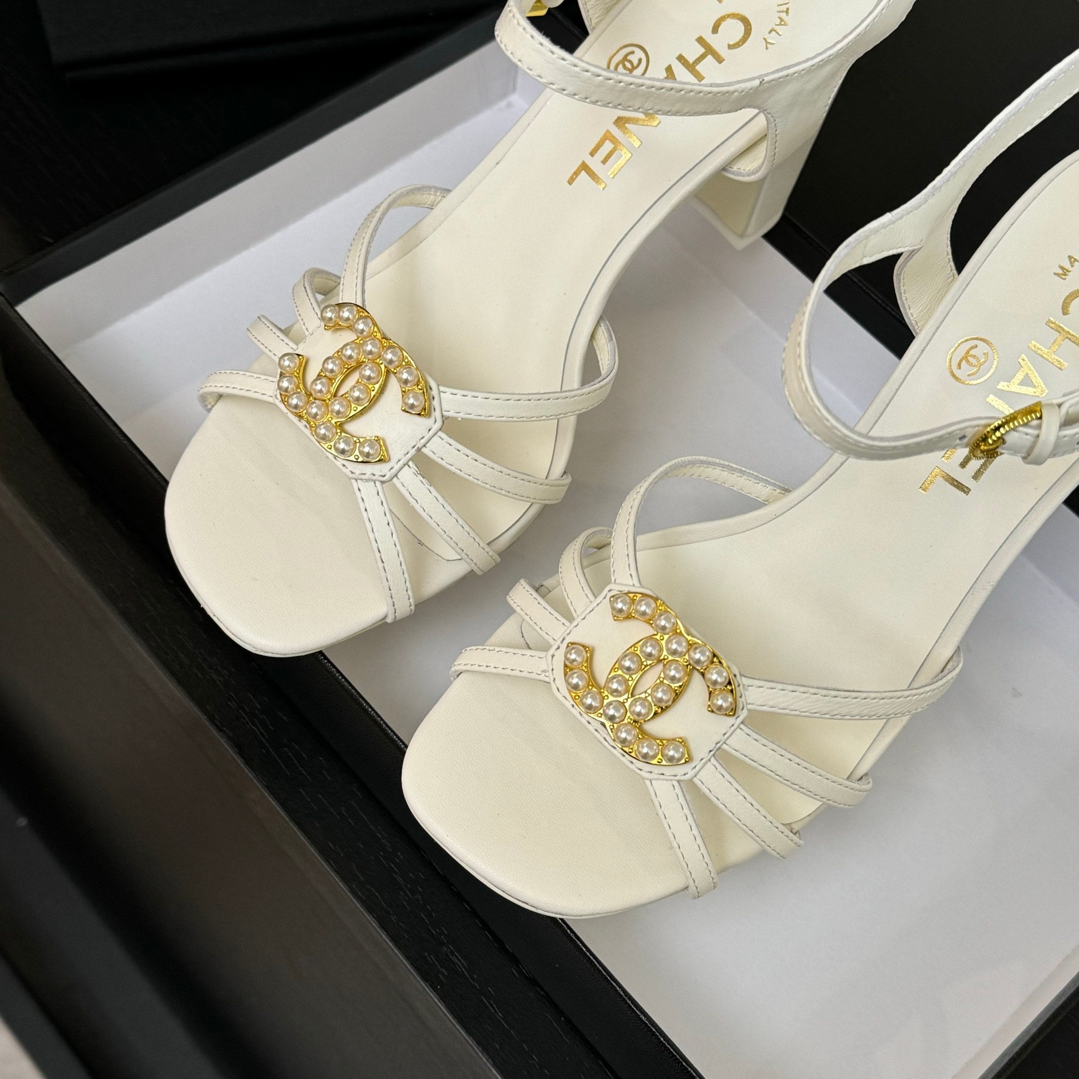 CC 25C 5CM Mid Heed Sandals White Italian Leather 213316