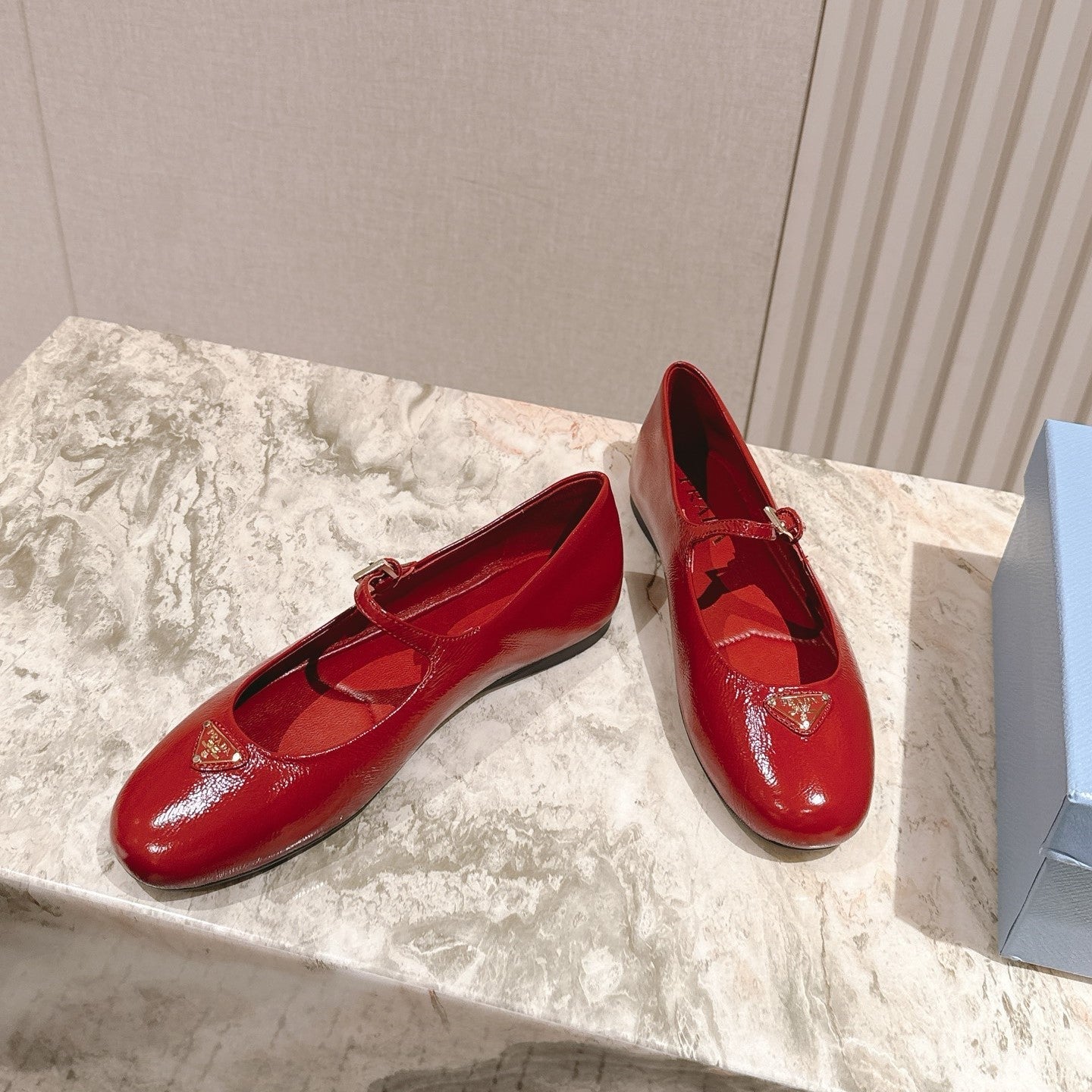 PRA 25s Ballet Flats with Small Buckle Red Shiny Cowhide 449712