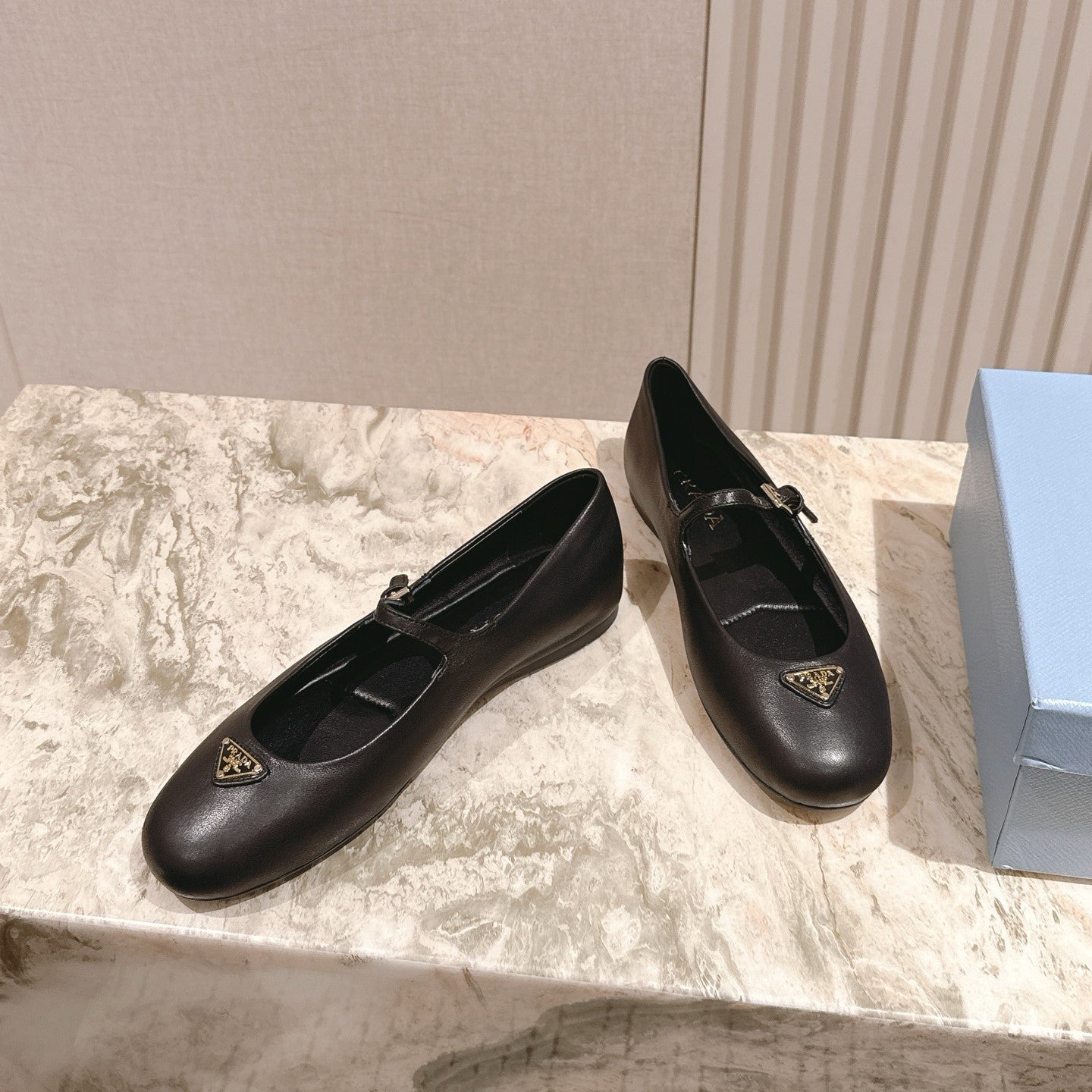 PRA 25s Ballet Flats with Small Buckle Black Cowhide 449714