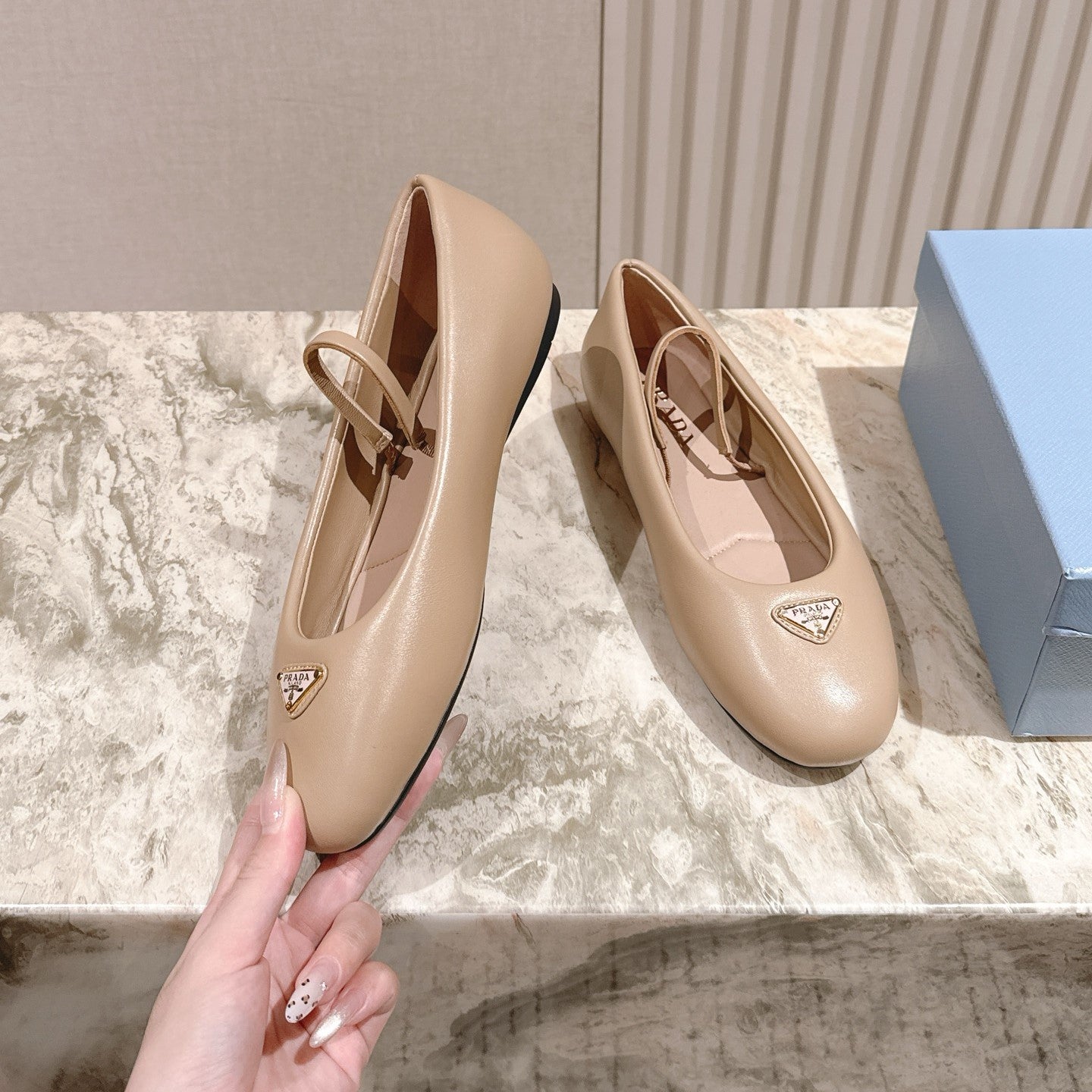 PRA 25s Ballet Flats with Small Buckle Beige Cowhide 449713