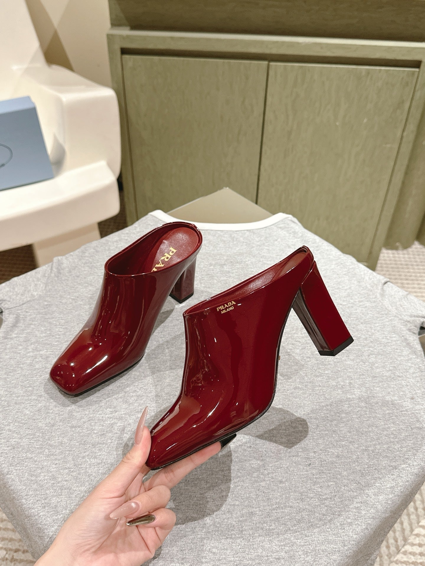 Prada Mules 85mm Burgundy Patent Leather 449618