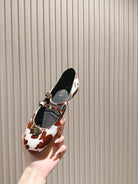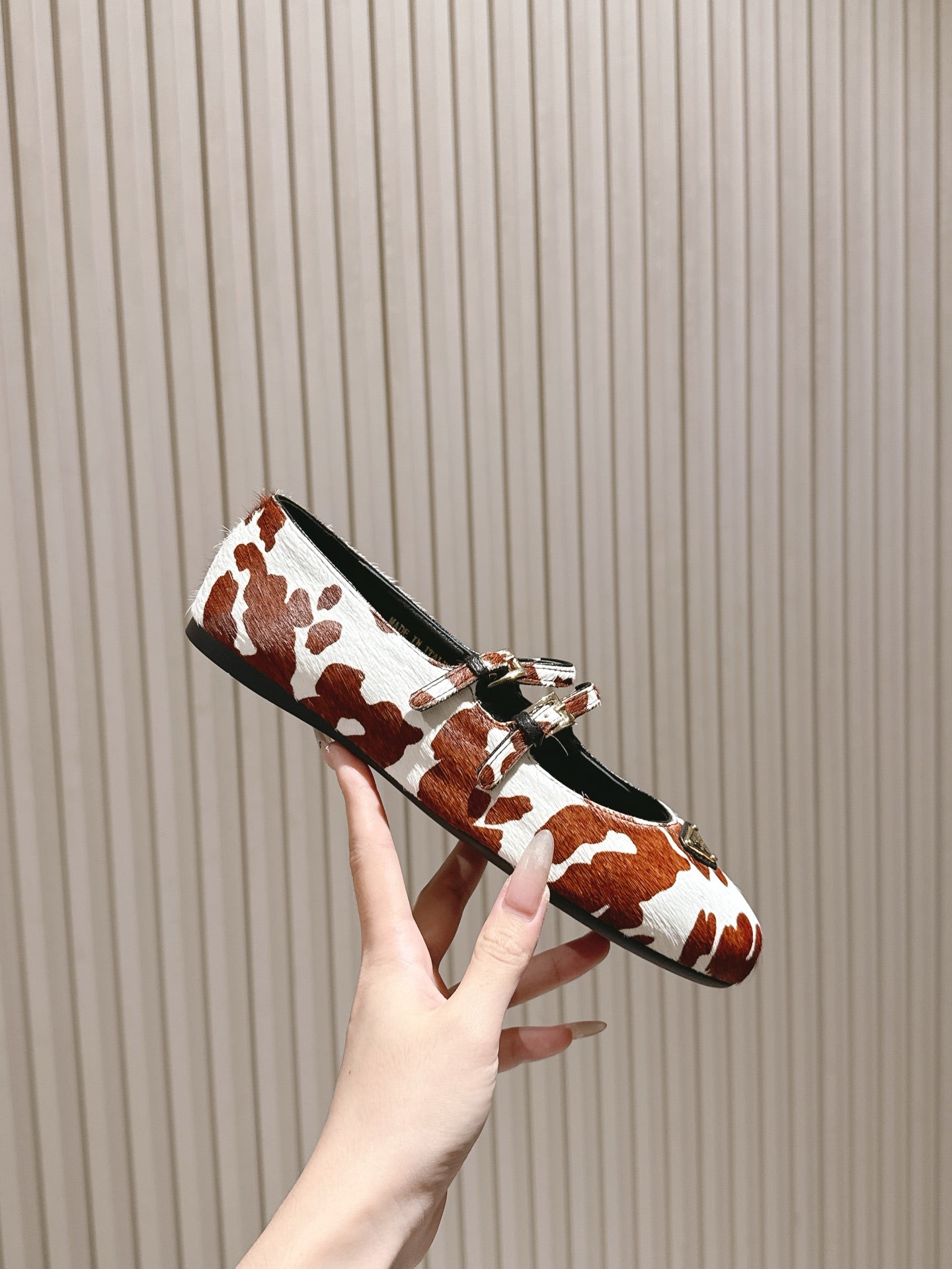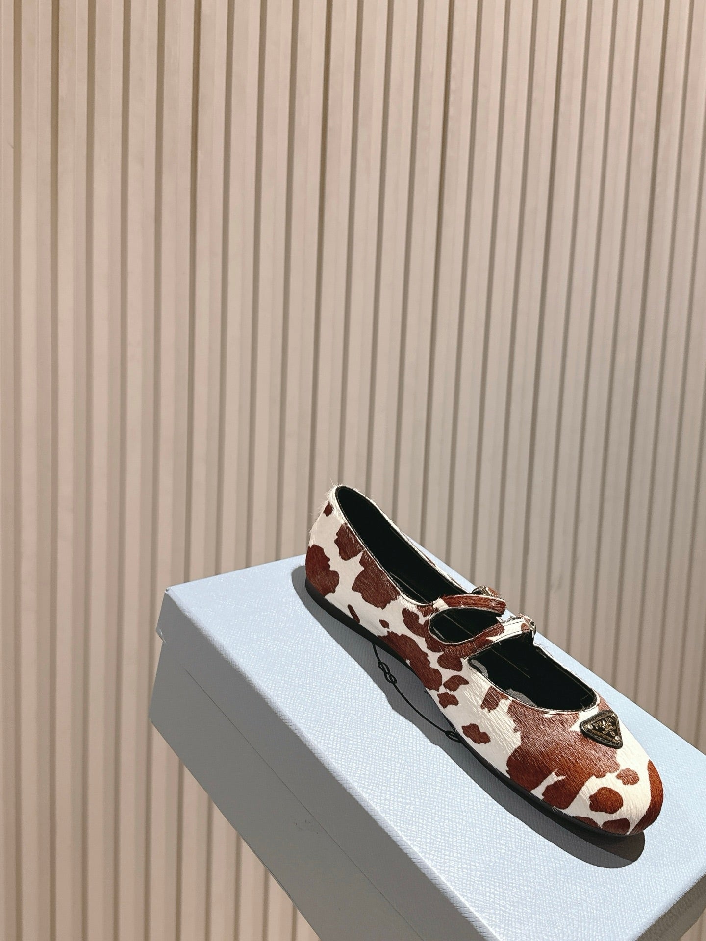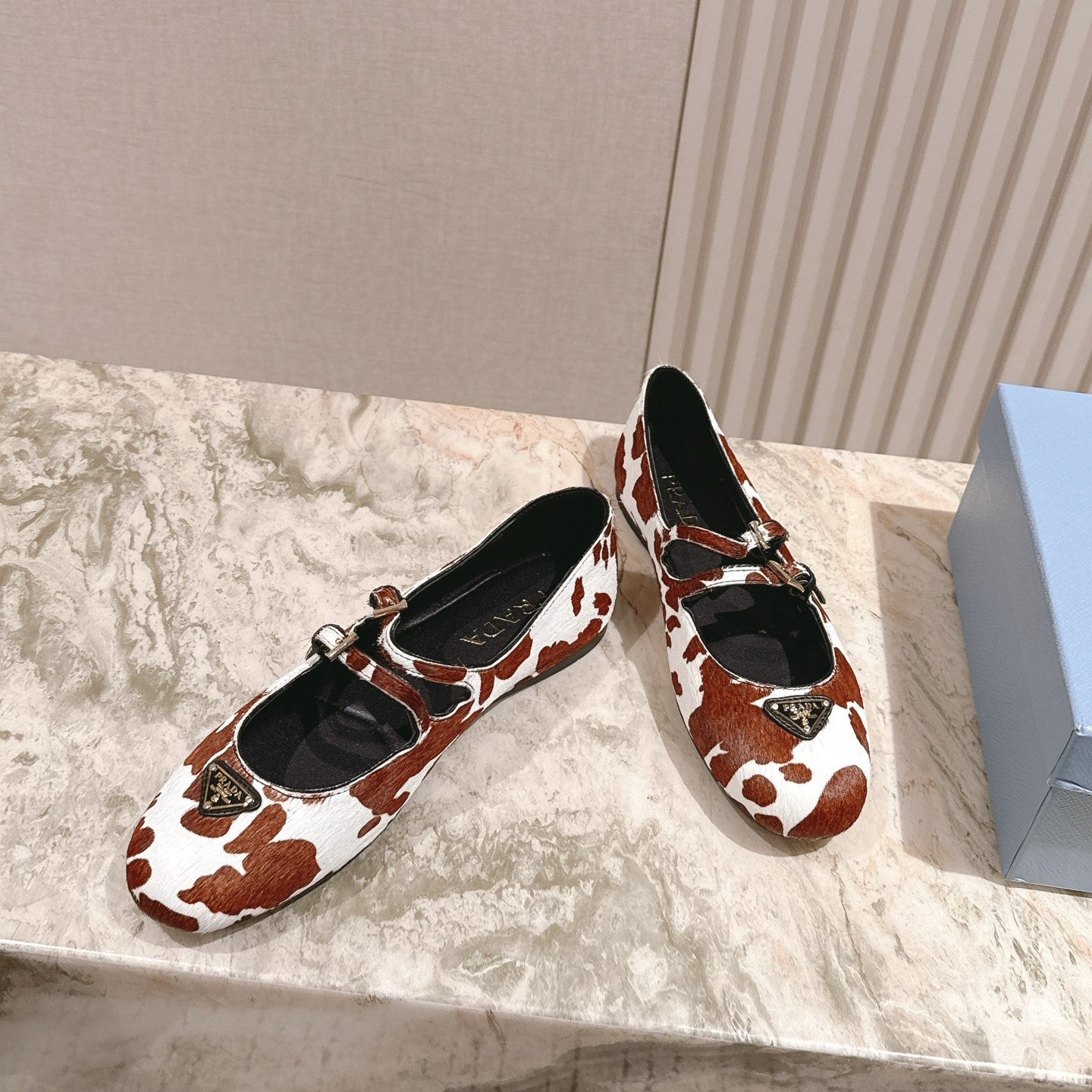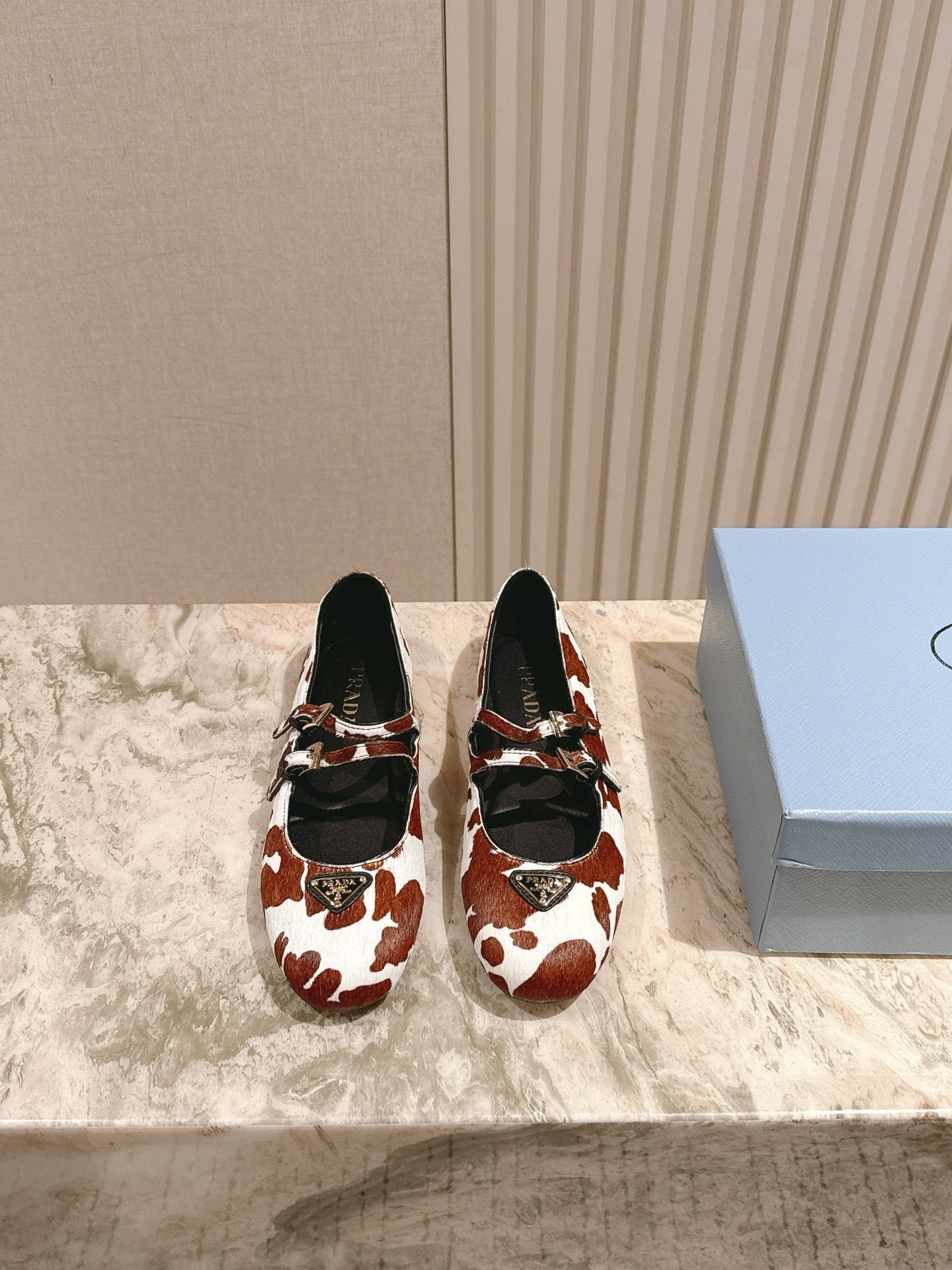 PRA 25s Ballet Flats with Small Buckle Brown White Cow Printed Calf-hair 449702