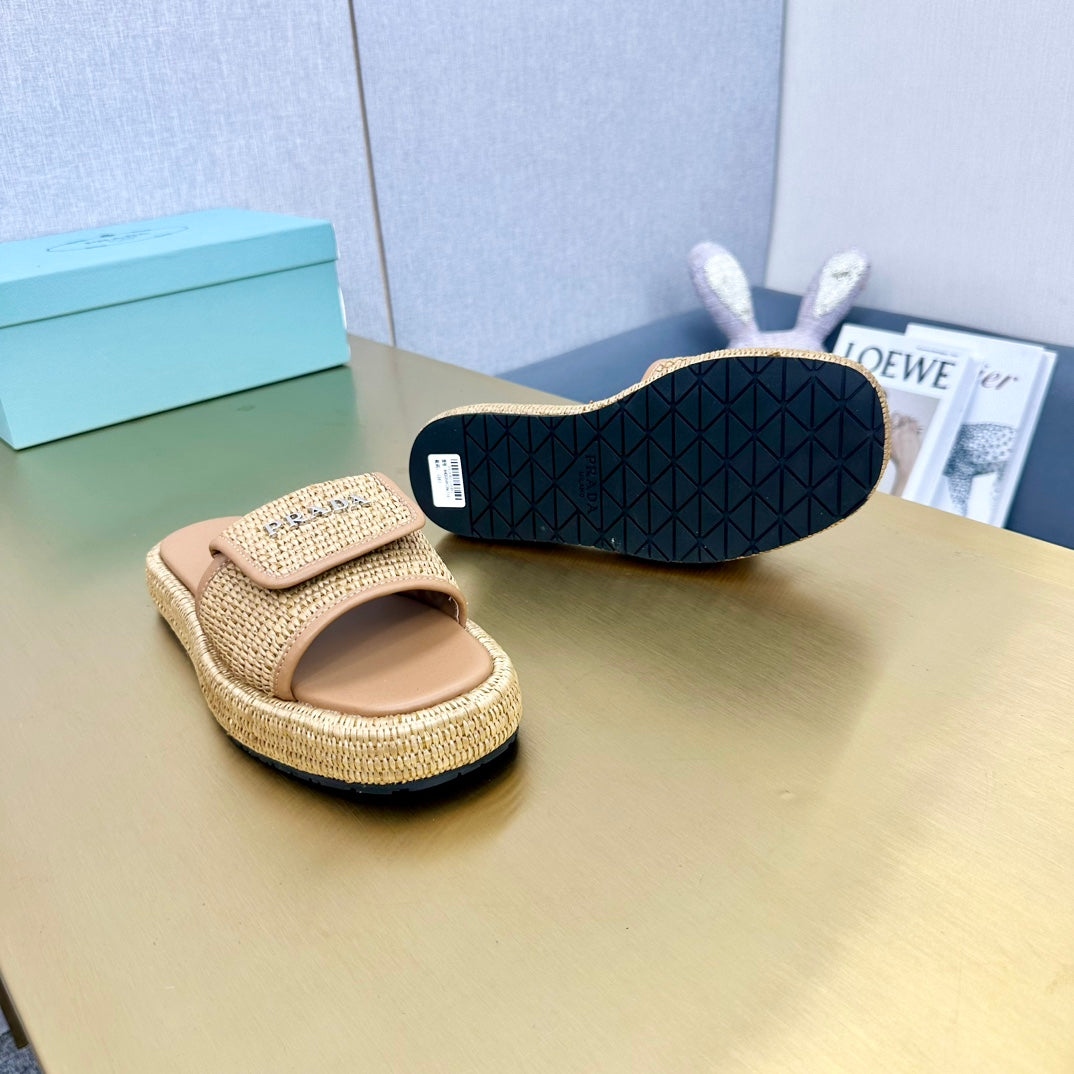 PRA CROCHET SLIDES SLIPPERS BEIGE RAFFIA