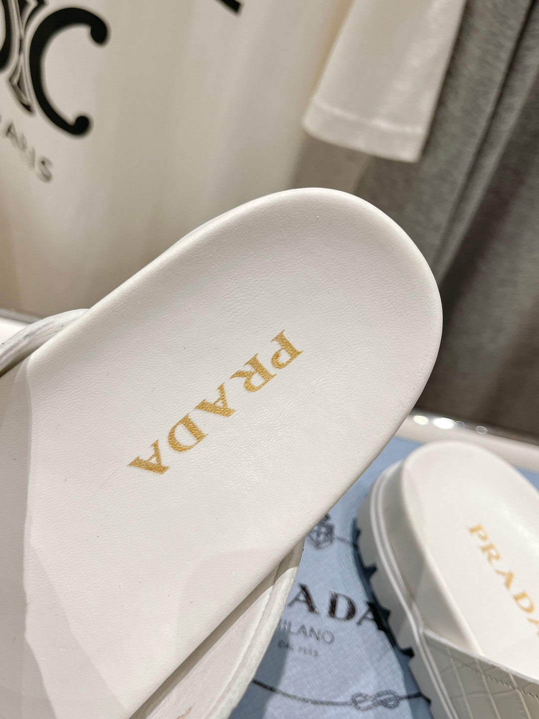 PRA CROCODILE MOTIF STRAP SLIDES SANDALS WHITE CALFSKIN