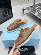 PRA OSTRICH PATTERN MULES CARAMEL CALFSKIN