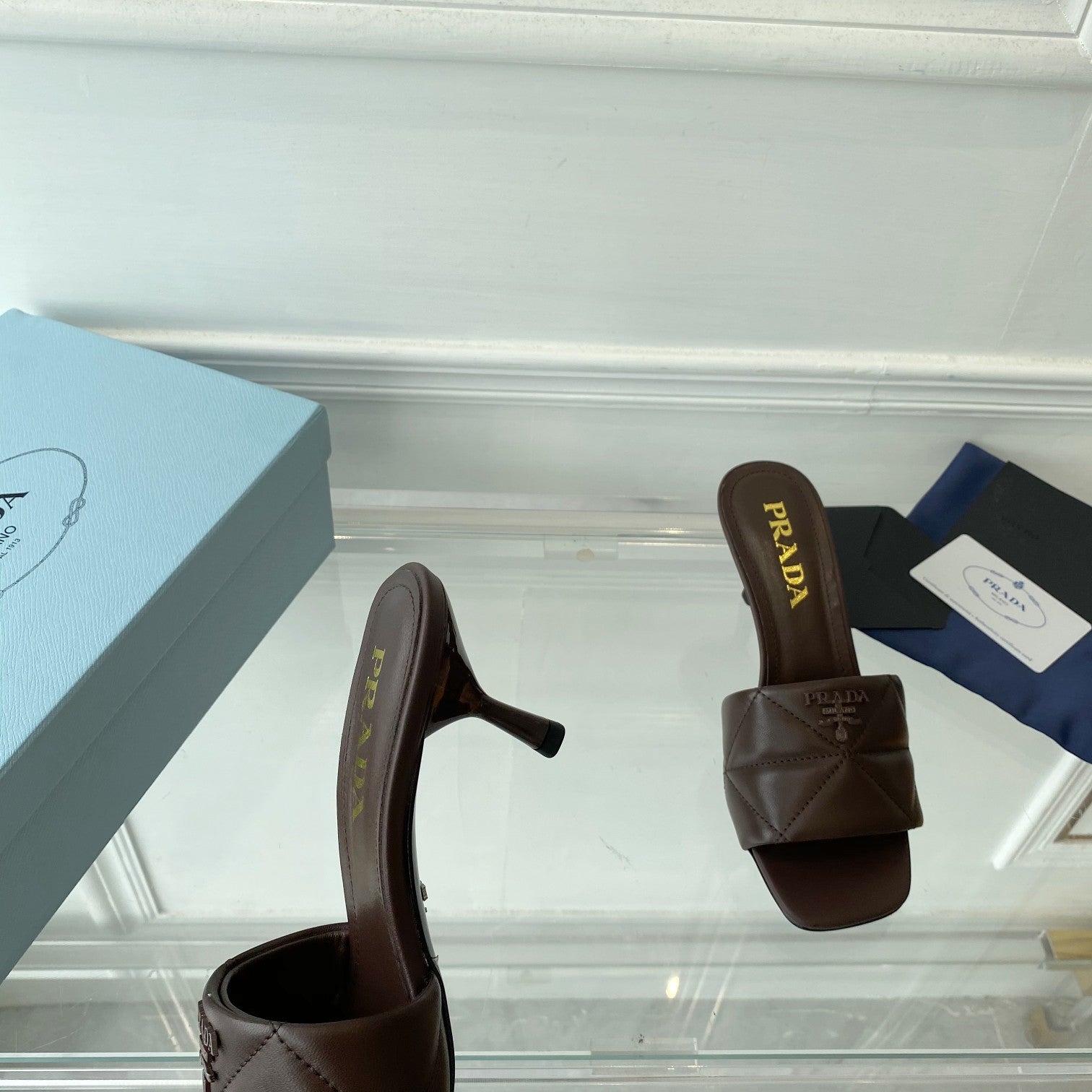 PRA QUILTED HIGH HEELS SANDALS 65 CHOCOLATE LAMBSKIN