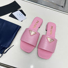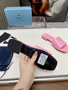PRA SAFFIANO PATENT SLIDES OSTRICH MOTIF PINK CALFSKIN