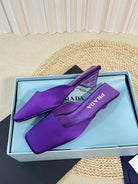 PRA SQUARE TOE MULES VIOLET SATIN