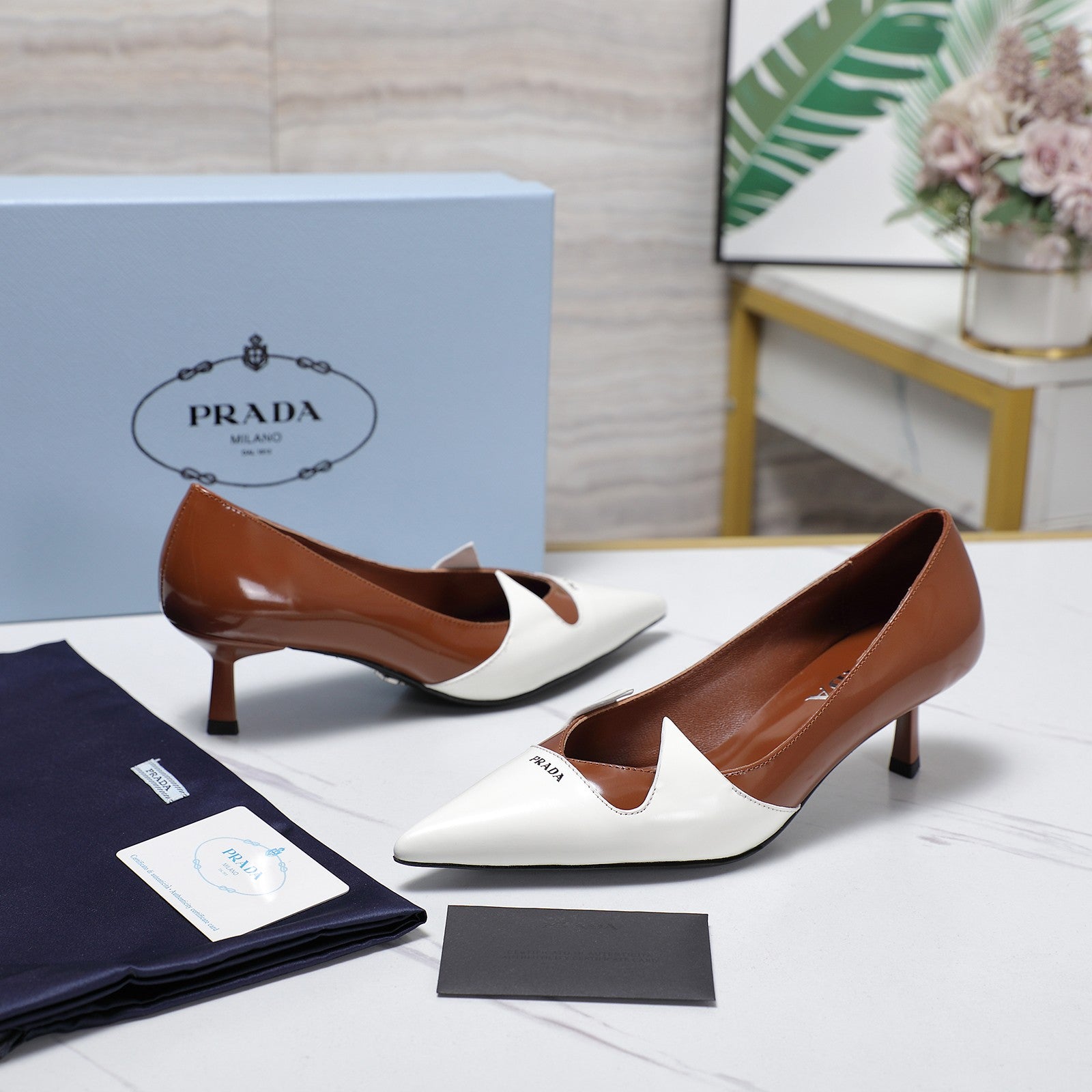 Prada Two-Tone Brushed Pumps 55mm Chocolate White Cowhide 456263