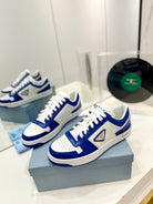 PRA DOWNTOWN PERFORATED SNEAKERS WHITE AND COBALT CALFSKIN